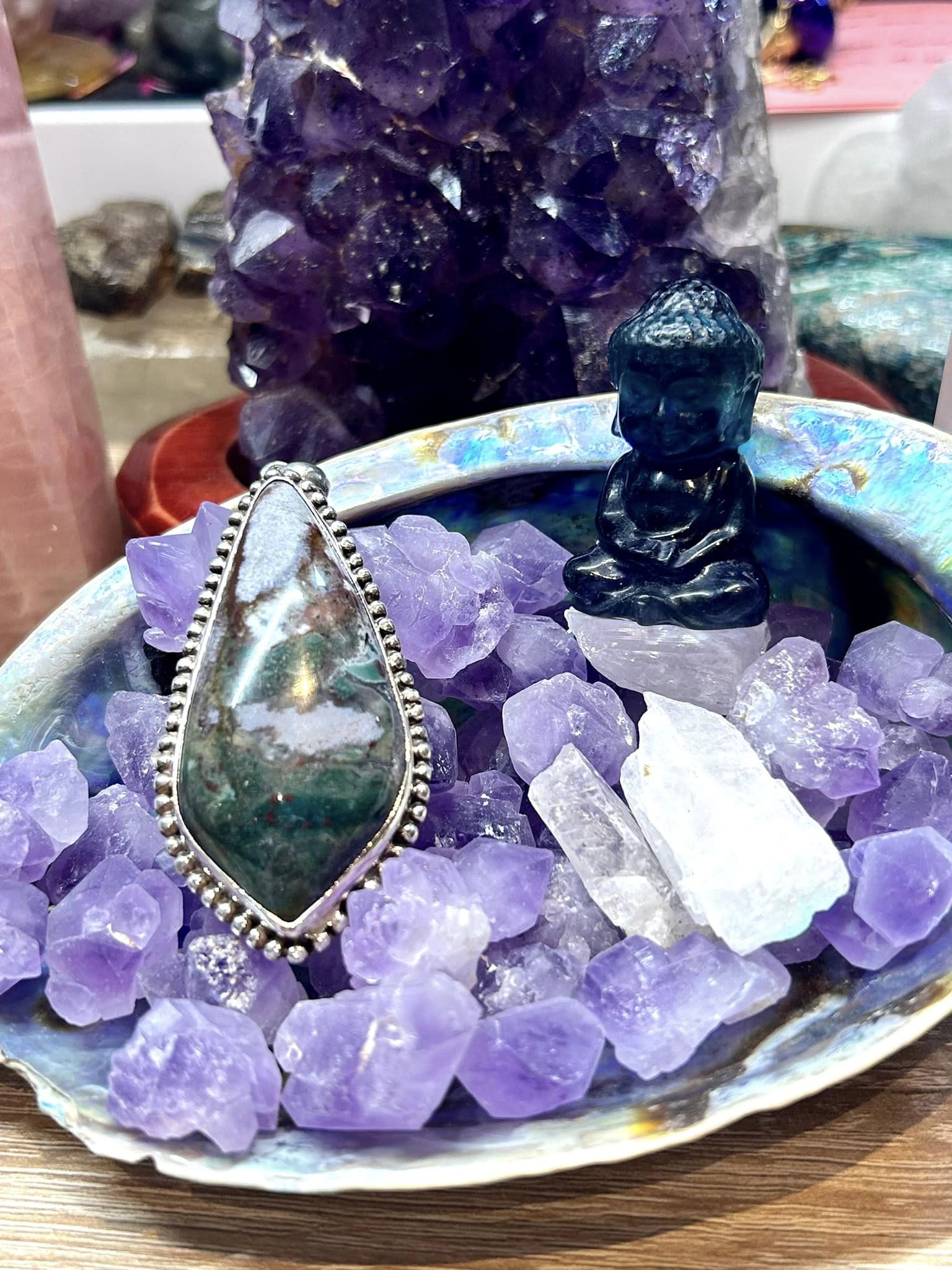 Plan spirituel : L’agate mousse est une pierre naturelle qui nous aide à développer notre 6ème sens, elle apporte calme et détente, renforce notre amour de la nature et développe la communication avec notre Terre-Mère. Elle nous permet de nous reconnecter en ses forces, mais aussi aux arbres, à l’eau.