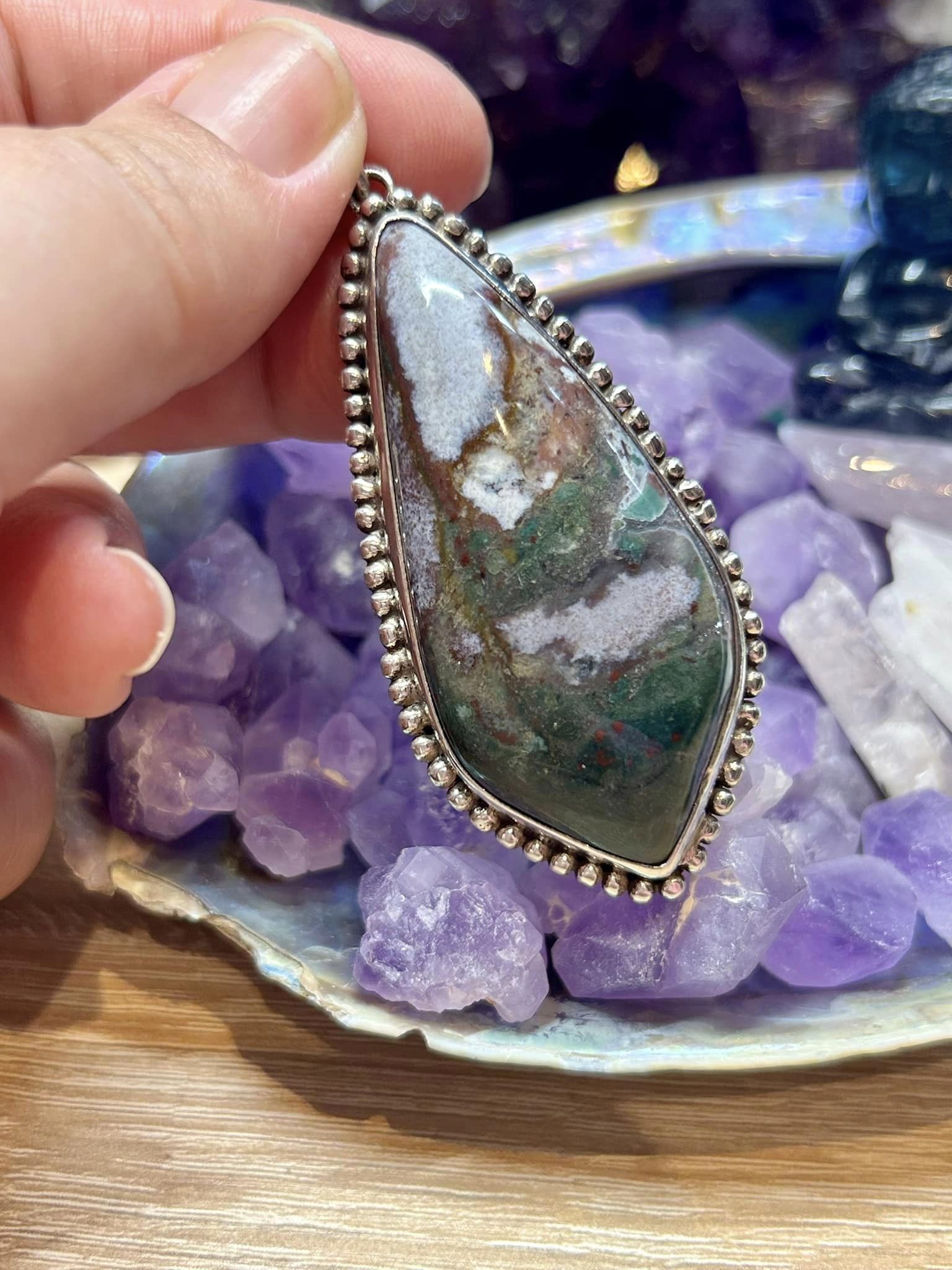 Pendentif d’agate mousse - argent 925