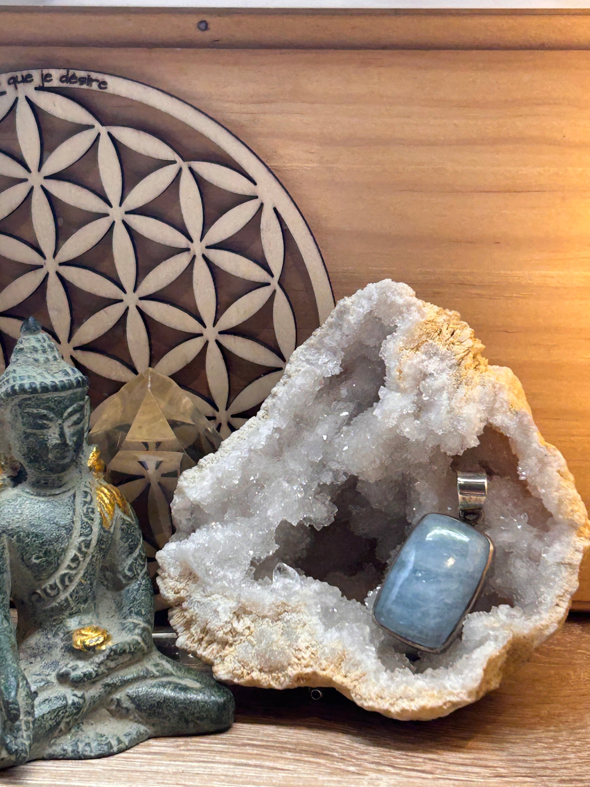 Plan physique : L’aigue marine est peut-être la pierre la plus efficace pour dégager et activer le chakras de la gorge, nous aidant à exprimer notre vérité la plus profonde, celle qui est au plus près de notre cœur. Cette pierre peut être utilisée pour soulager l’arthrose au niveau de la nuque et pour réguler la glande thyroïde, de ce fait elle peut être intéressent si votre thyroïde est déficiente ou tout simplement si vous n’en avez plus. Elle apaise l’eczéma, l’urticaire, l’acné et le psoriasis.