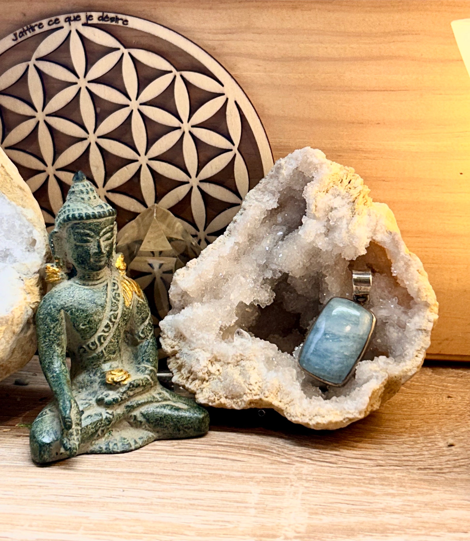 Elle peut aider à surmonter notre peur de nous exprimer, et peut nous aider à parler clairement et sans colère dans des situations difficiles. Particulièrement adaptée aux fortes personnalités, aux ambitieux et à ceux qui ont des postes à hautes responsabilités. Cette pierre aide à lutter contre la peur de ne pas être à la hauteur.(syndrome de l’imposteur)