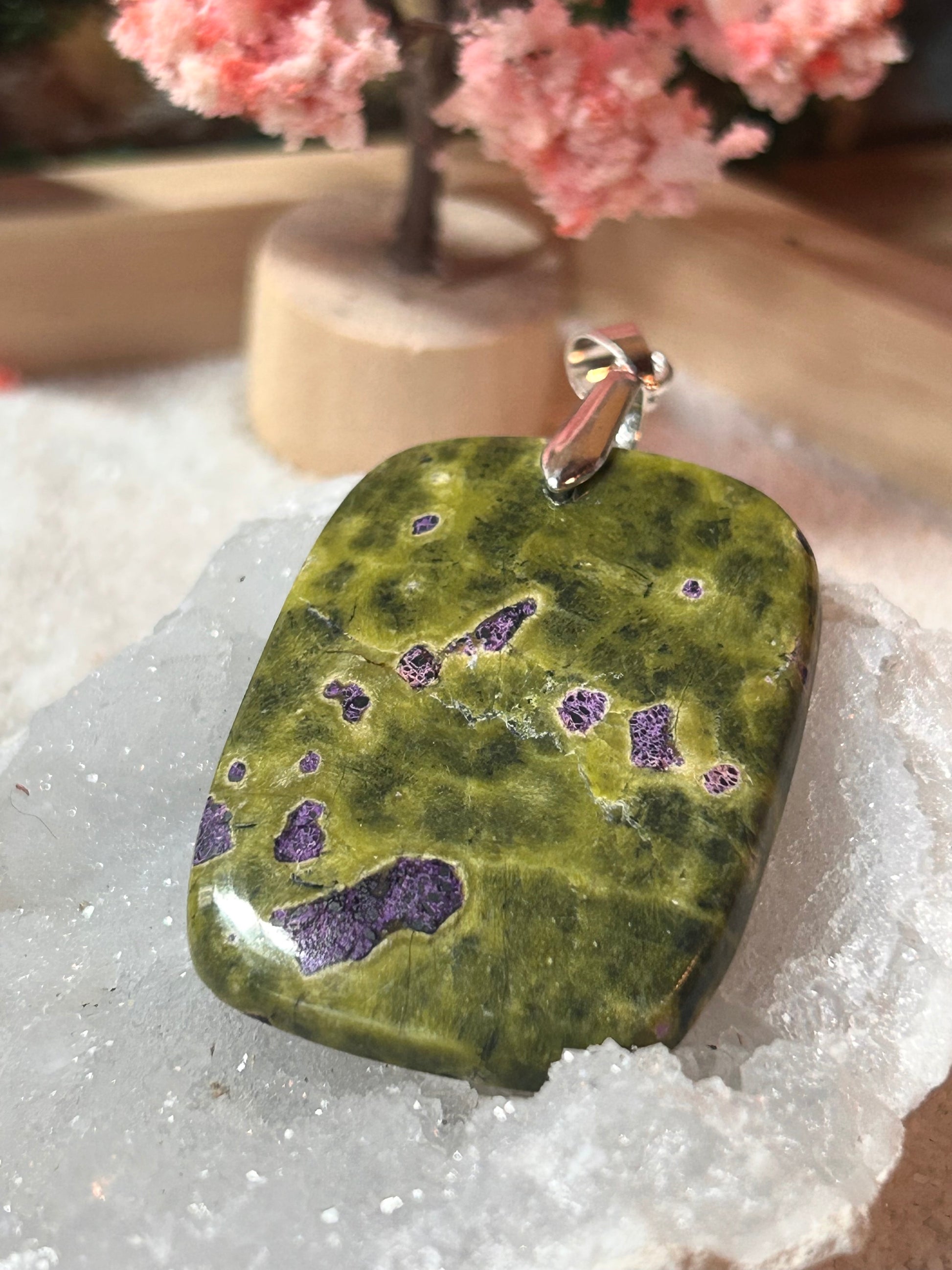 L’Atlantisite est le nom donné à cette belle combinaison de serpentine verte avec des inclusions de stichtite rose à violet, en tant que tel, il se mêle ainsi aux propriétés de ces deux minéraux, mais a tout de même ses propriétés bien à elle.