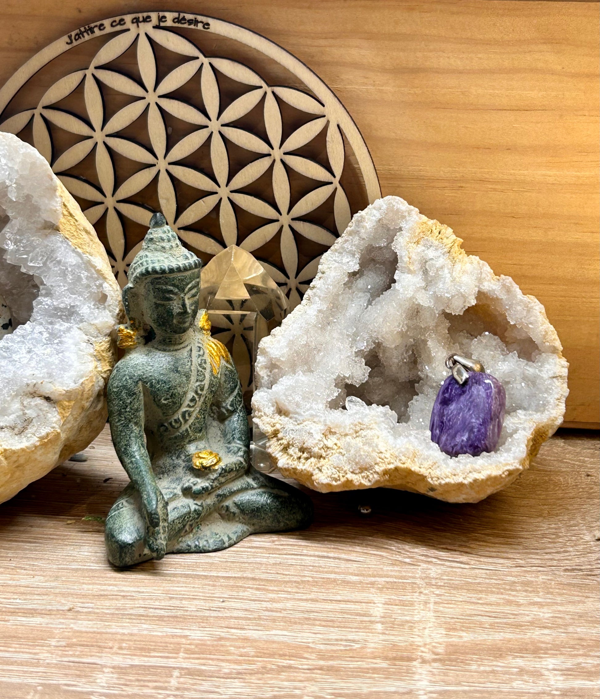 Plan spirituel : La Charoïte stimule les visions intérieures. C’est la pierre du Moi spirituel, elle nous rend vivant et fort. Elle recharge le corps en énergie positive. Elle favorise la réalisation des aspirations de l’âme et facilite son chemin de vie. C’est une pierre de grande sagesse détentrice du savoir intuitif.