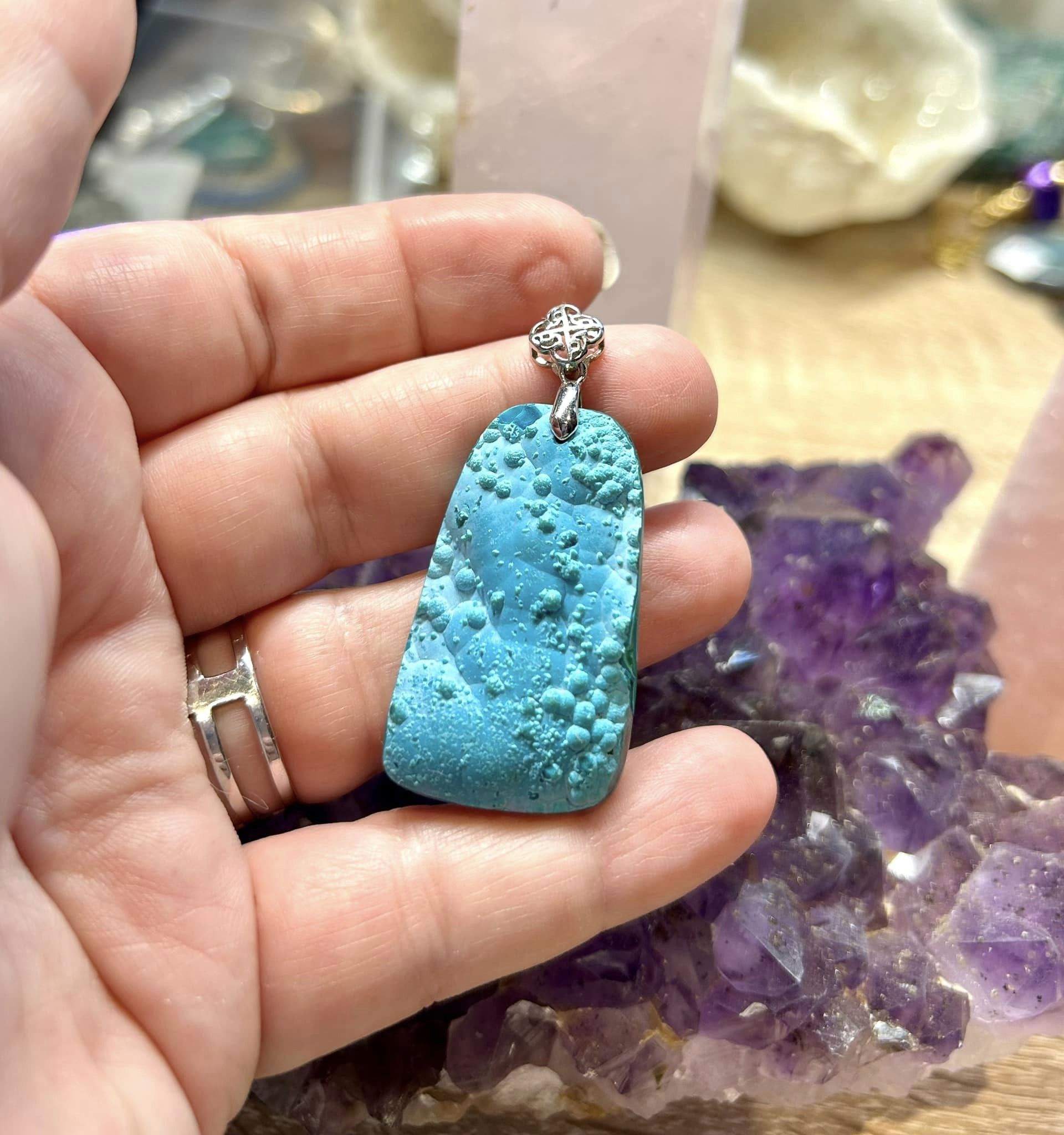 Pendentif de chrysocolle - bélière argent 925