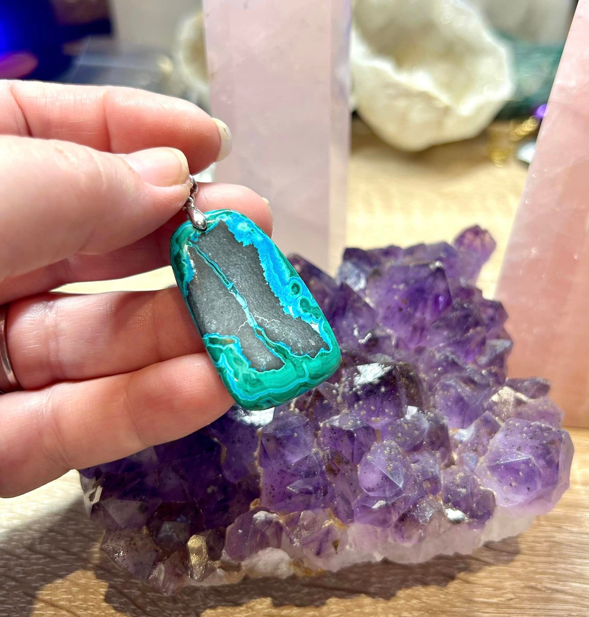 Plan spirituel : La chrysocolle est la pierre idéale à utiliser si vous souhaitez méditer, elle facile la paix et l’équilibre intérieur. Elle chasse les énergies négatives, pensées néfastes et redonne confiance en soi.