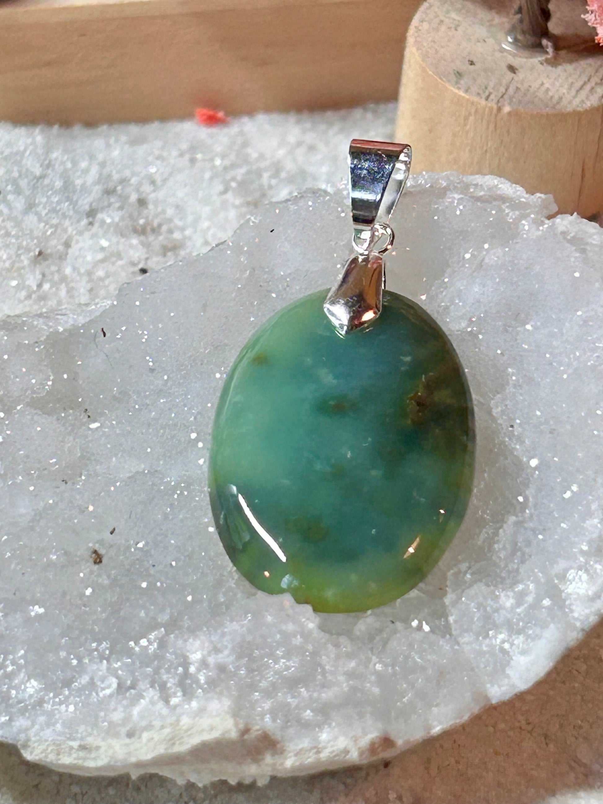 Plan spirituel : Pierre très utile pour le pardon et la compassion. Elle facilite l’intériorisation et l’introspection afin de résoudre les problèmes personnels d’une manière calme et positive. La Chrysoprase vous transmet avec légèreté et douceur sa force de connexion multidimensionnelle et d’accueil. La perméabilité qu’elle crée entre vous et l’univers qui vous entoure vous permet d’accéder à de nouveaux modes de perception d’informations à de multiples niveaux. Pour ceux qui « canalisent » déjà, elle affinera vos connexions déjà « actives ».