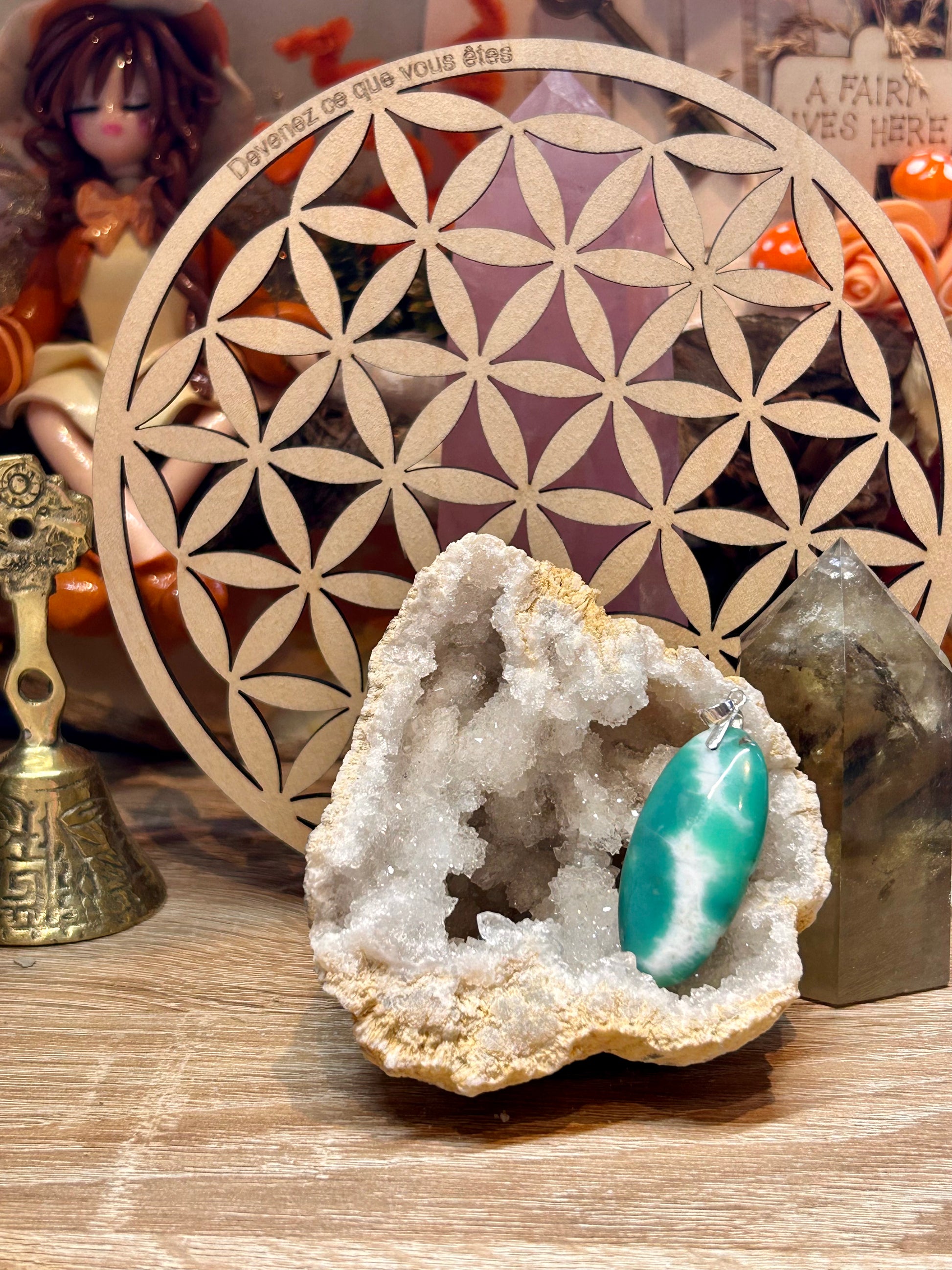Plan spirituel : Pierre très utile pour le pardon et la compassion. Elle facilite l’intériorisation et l’introspection afin de résoudre les problèmes personnels d’une manière calme et positive. La Chrysoprase vous transmet avec légèreté et douceur sa force de connexion multidimensionnelle et d’accueil. La perméabilité qu’elle crée entre vous et l’univers qui vous entoure vous permet d’accéder à de nouveaux modes de perception d’informations à de multiples niveaux. Pour ceux qui « canalisent » déjà, elle affinera vos connexions déjà « actives ».