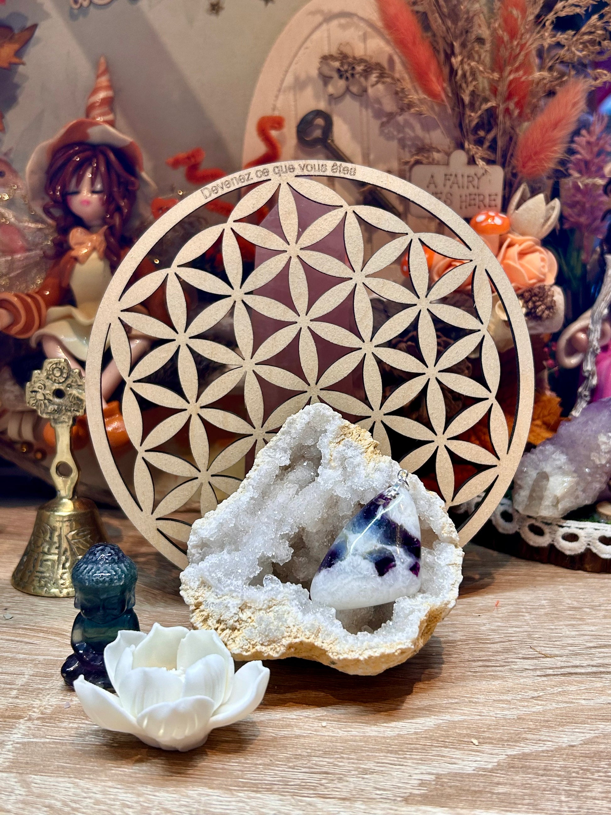 Fluorine bleue : La Fluorine Bleue est une très grande protection pour le psychique. Elle procure de la clarté intellectuelle et de la facilité de concentration. Cette pierre est reliée au chakra couronne (septième chakra) au chakra du 3ème oeil (sixième chakra) et au chakra du coeur (quatrième chakra).