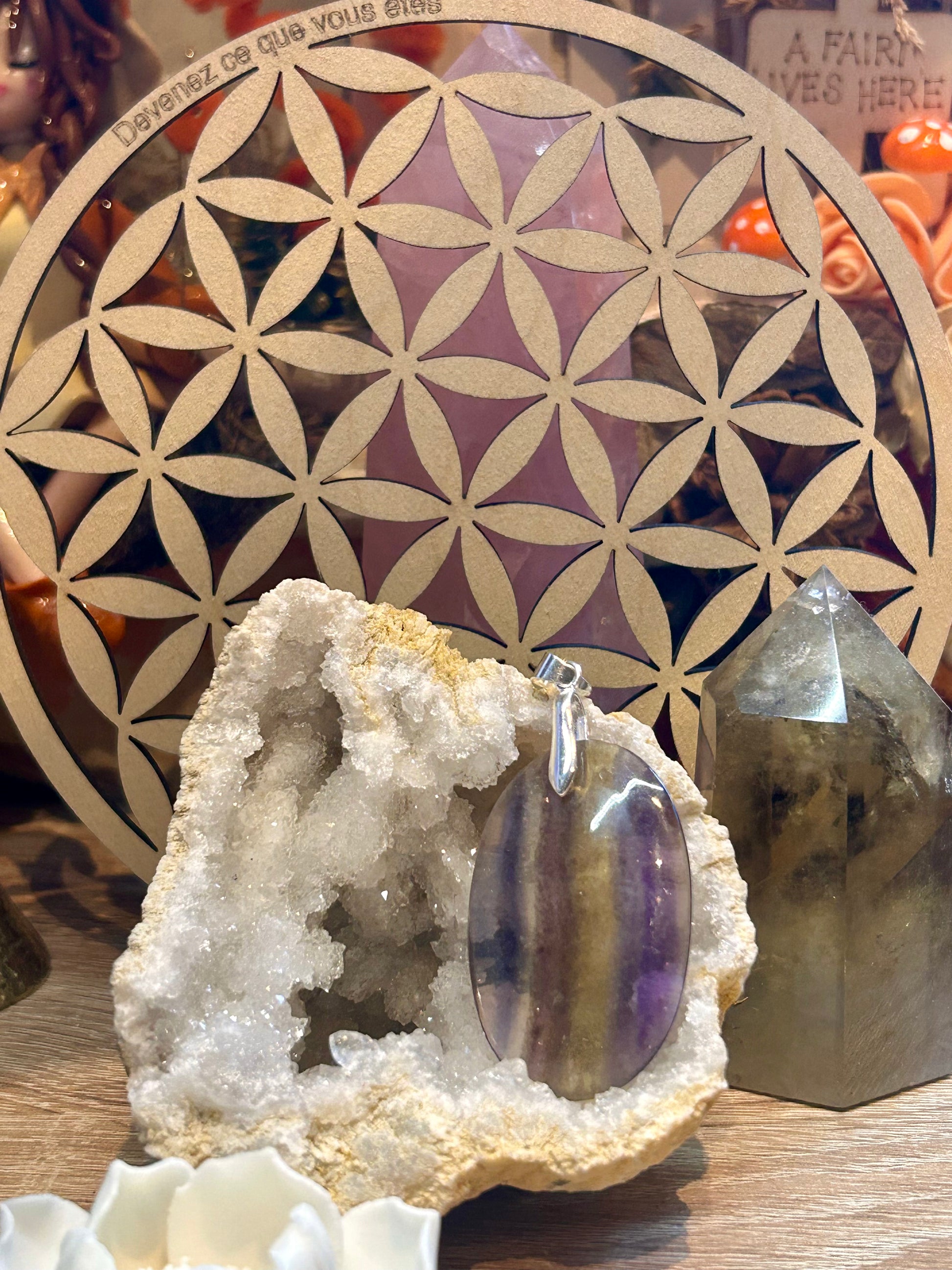 Fluorine ou fluorite favorise l’équilibre et la coordination. Elle allége l’arthrite, soulage la douleur, plus particulièrement celle des affections liées aux nerfs.