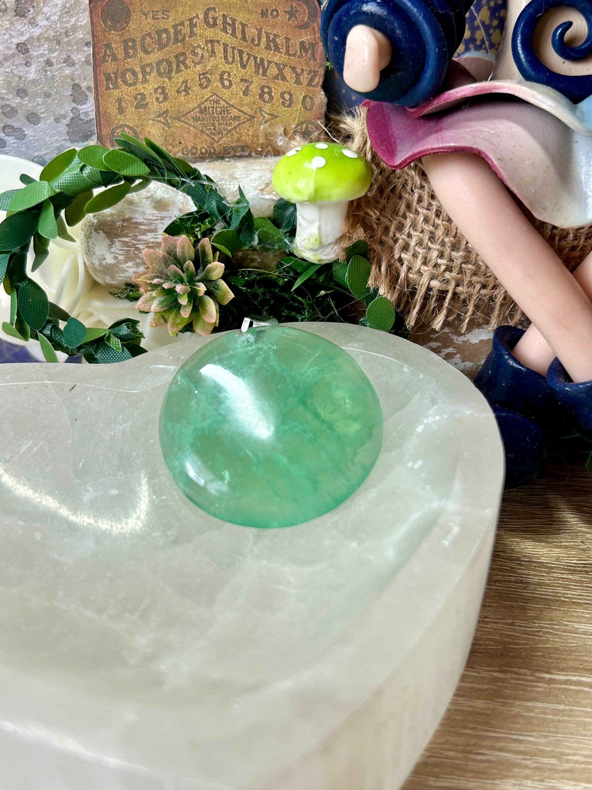 Pendentif de fluorine - bélière en métal argenté