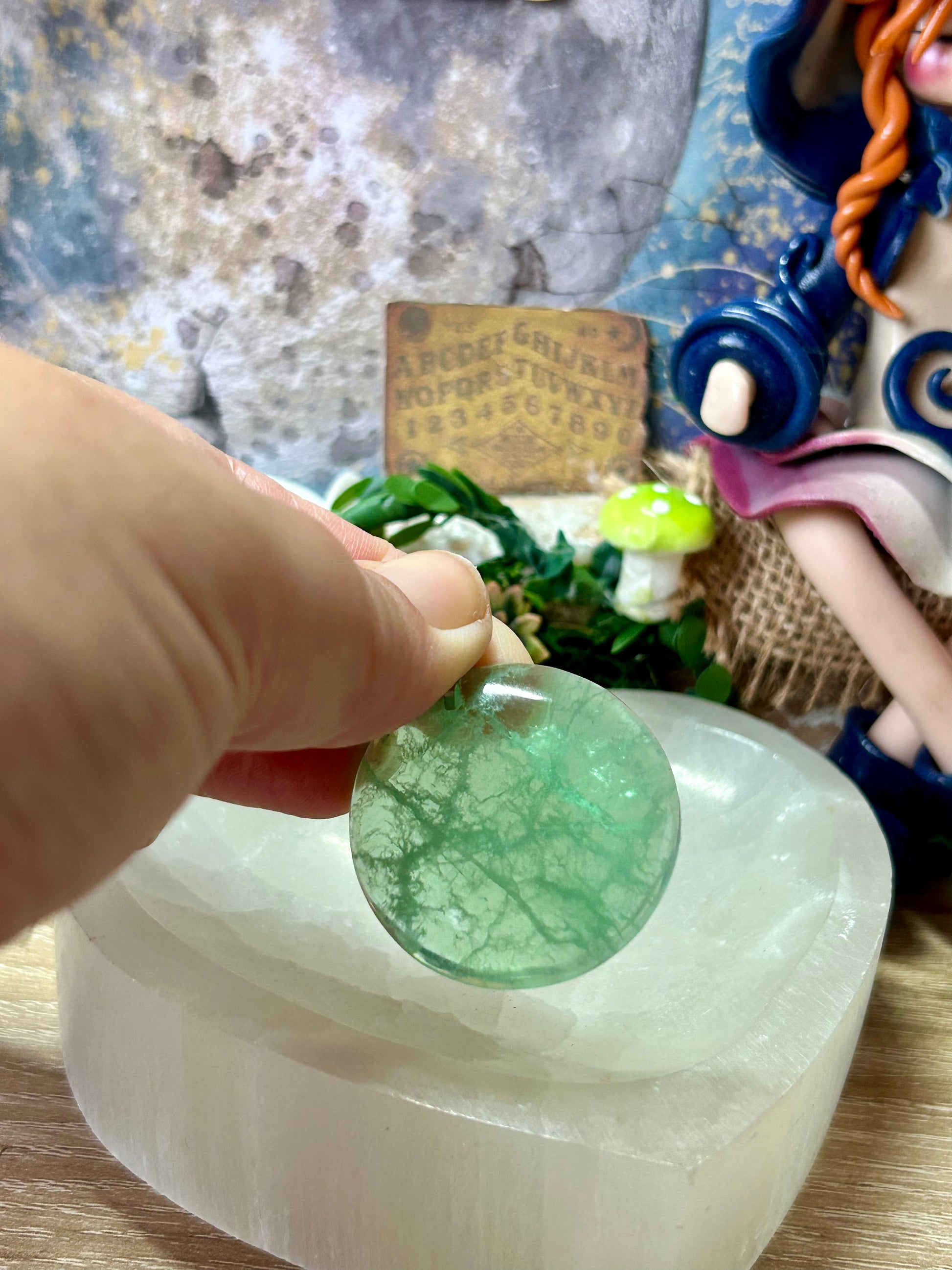 Fluorine verte : Reliée au chakra du cœur la fluorine verte contribue à relancer la circulation énergétique dans le corps. Elle facilite la libération des émotions et des pensées qui demeurent bloquées, elle dissipe les traumatismes émotionnels.