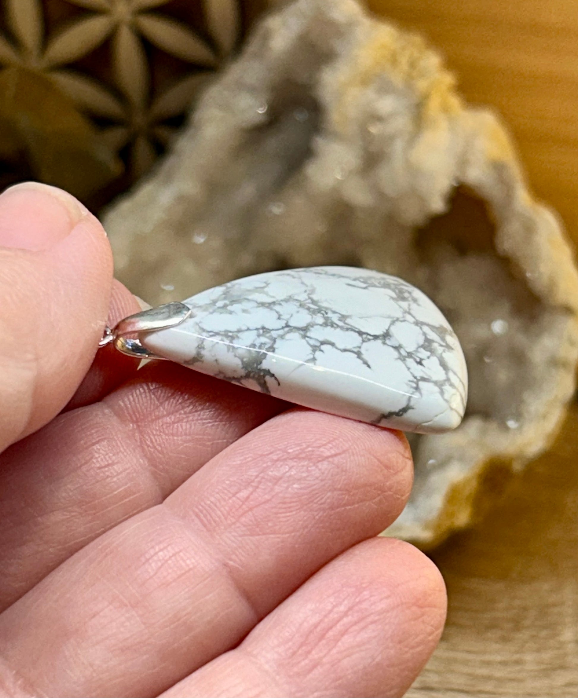 Plan spirituel : La howlite est très utile pour la relaxation et la méditation. La howlite a également un taux vibratoire utile au nettoyage spirituel. Elle vous fournit une meilleure compréhension des sources de stress émotionnels qui vous entoure et que vous portez et vous permet de vous en décharger plus facilement.