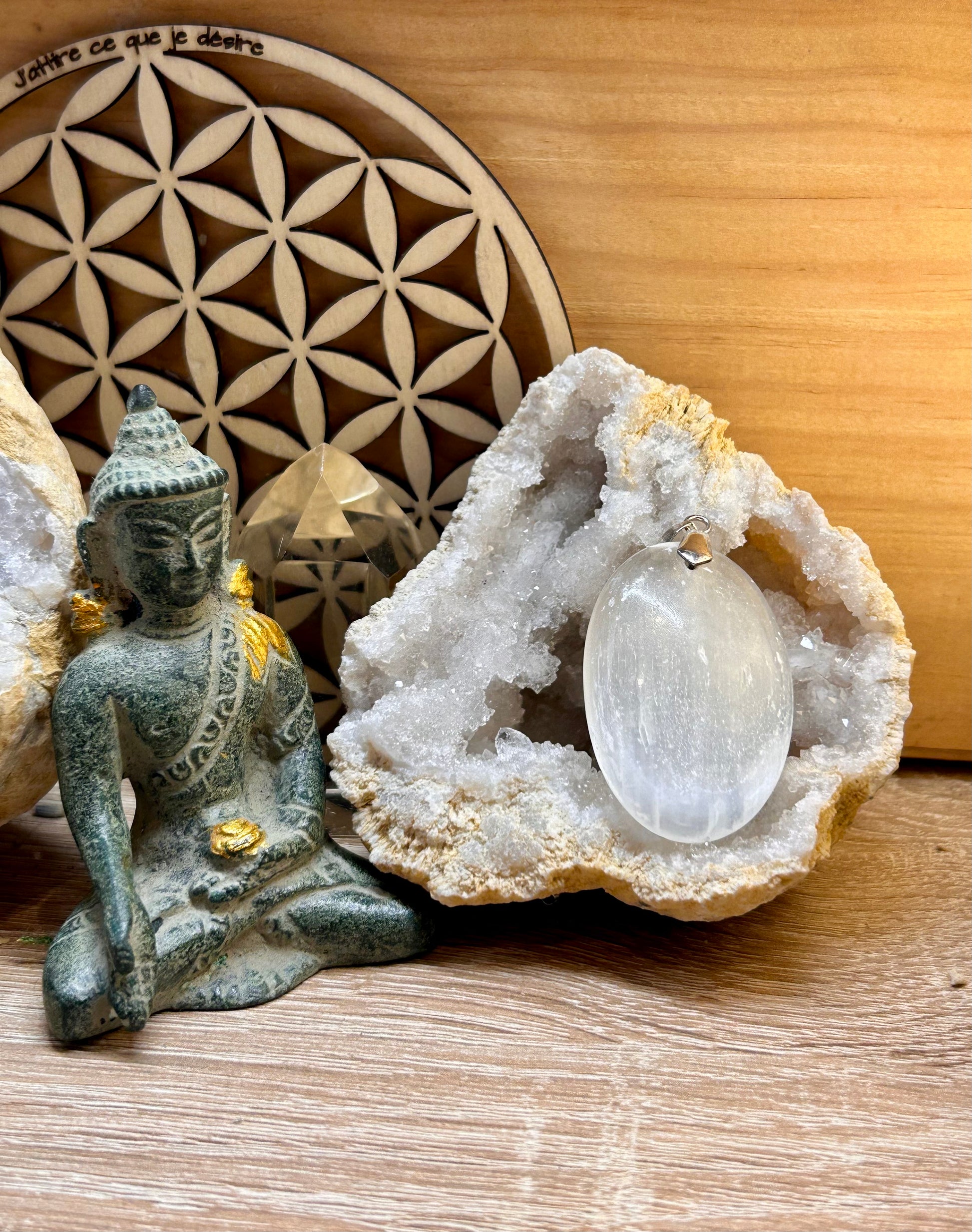 Plan spirituel : Une sélénite installée dans une maison apporte une ambiance sereine. Nettoie l’agitation et la colère dans un lieu. Placée à proximité d’un écran de télévision ou d’ordinateur elle absorbe la négativité. Elle aide à instaurer une sérénité intérieure propice à l’élévation de l’esprit et à la méditation.