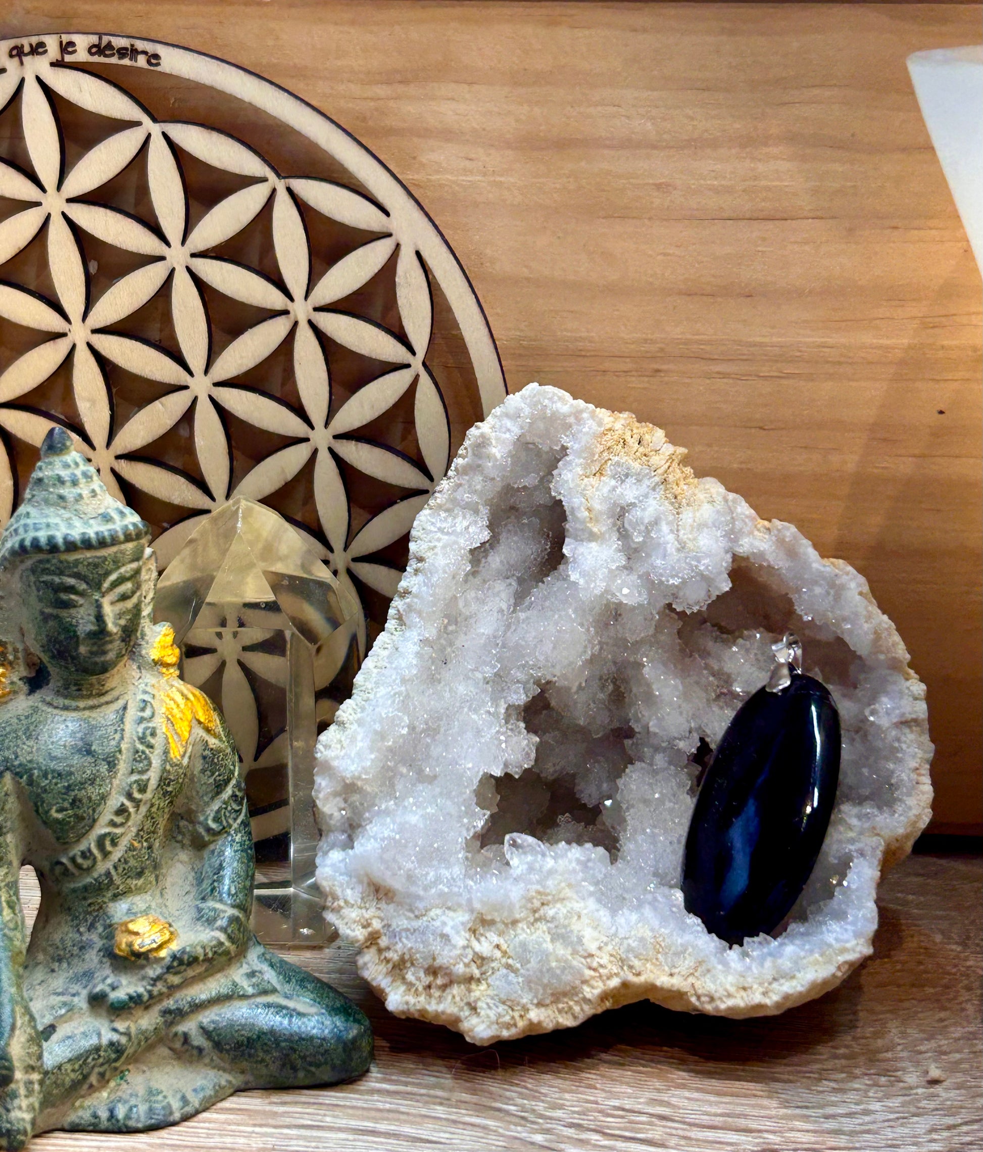 Pierre de protection puissante, elle renvoie les énergies négatives et malveillantes dans les ténèbres. Notamment sur la magie noire, les manipulations diverses, les tentatives d’intrusions psychiques “dures”, répétitives et mal intentionnées.