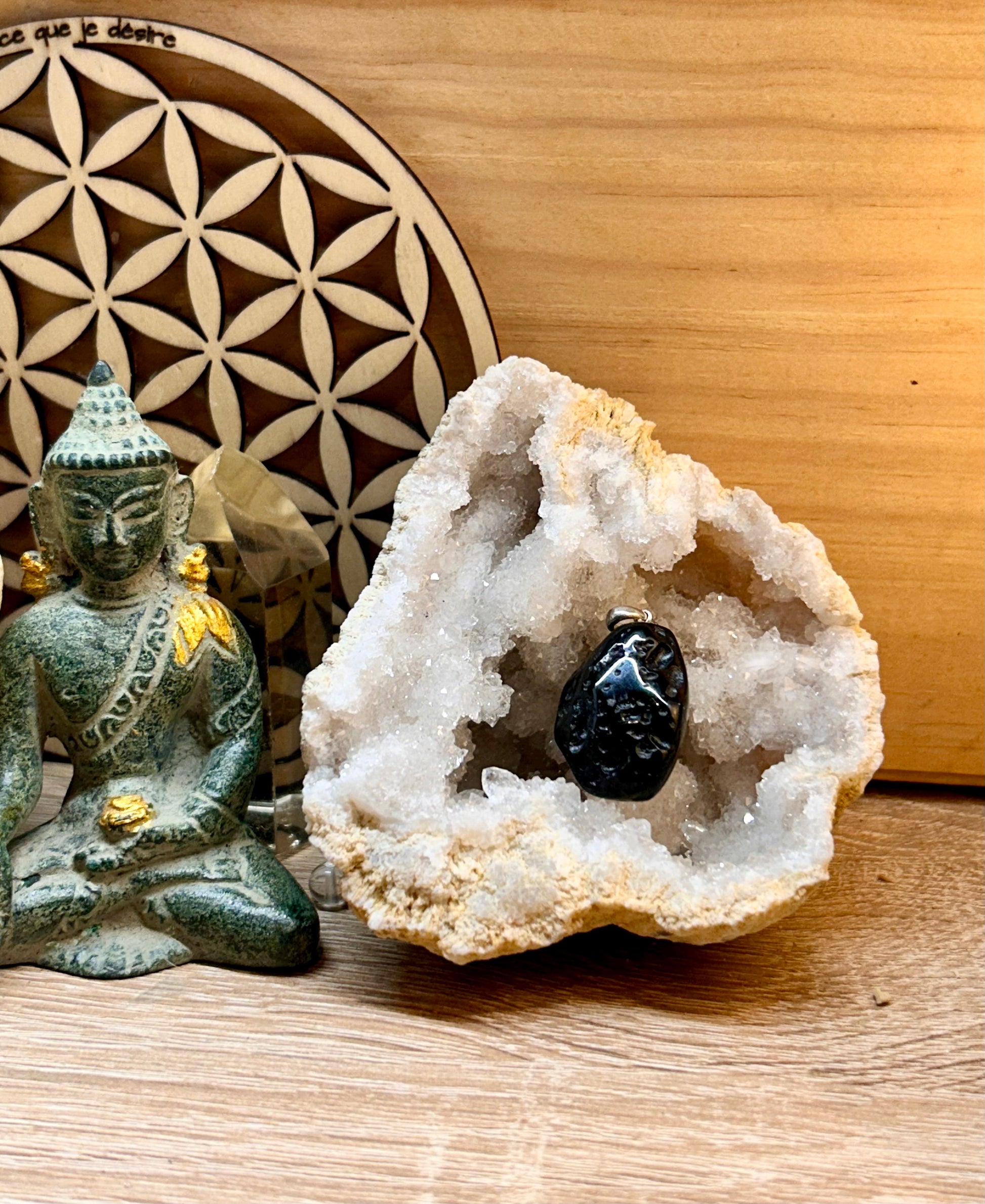 Pierre noire, la tectite possède une pulsation énergétique très élevée et un grand pouvoir de protection, repoussant le négatif au lieu de l’attirer.