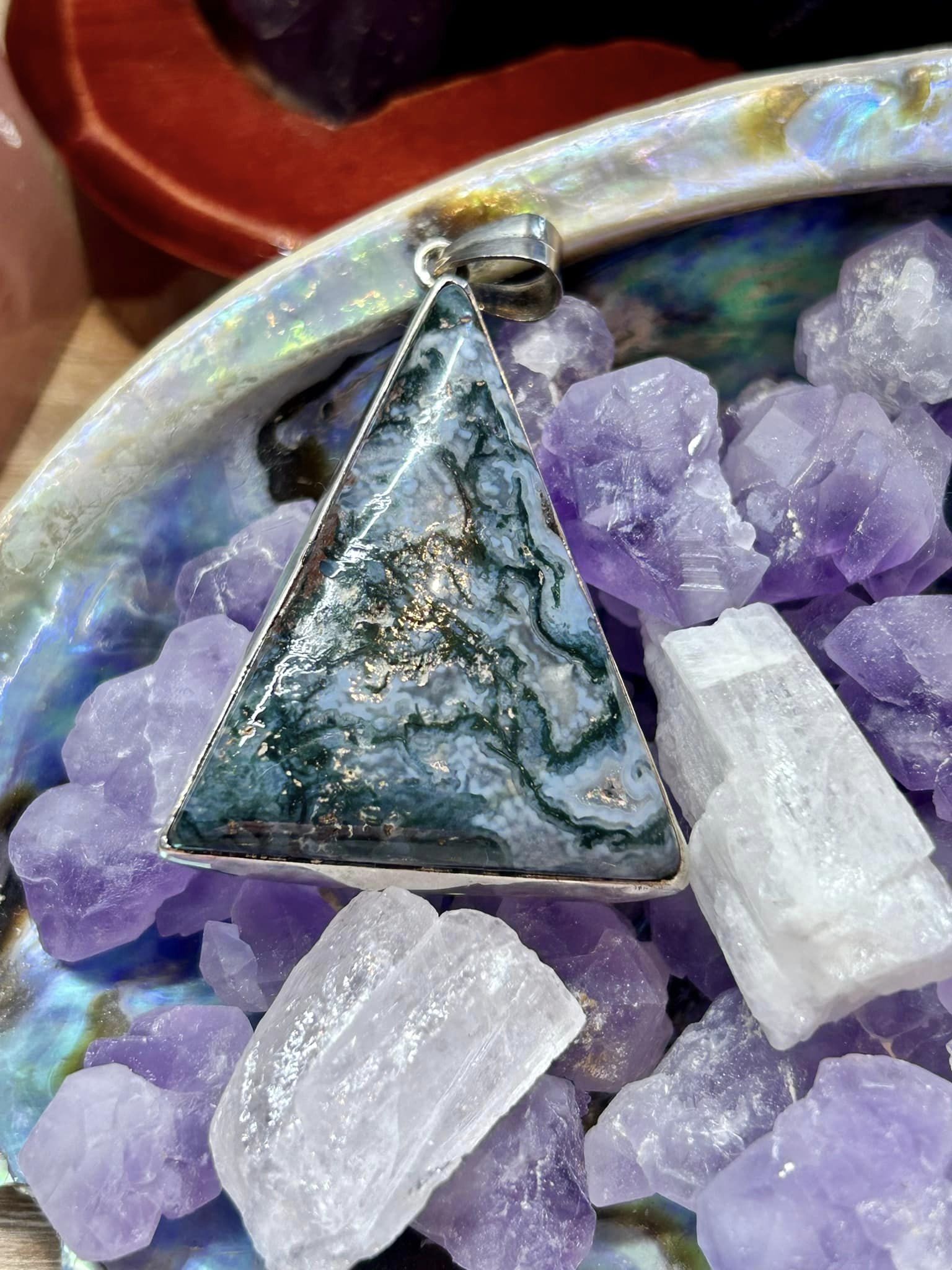 Plan spirituel : L’agate mousse est une pierre naturelle qui nous aide à développer notre 6ème sens, elle apporte calme et détente, renforce notre amour de la nature et développe la communication avec notre Terre-Mère. Elle nous permet de nous reconnecter en ses forces, mais aussi aux arbres, à l’eau.
