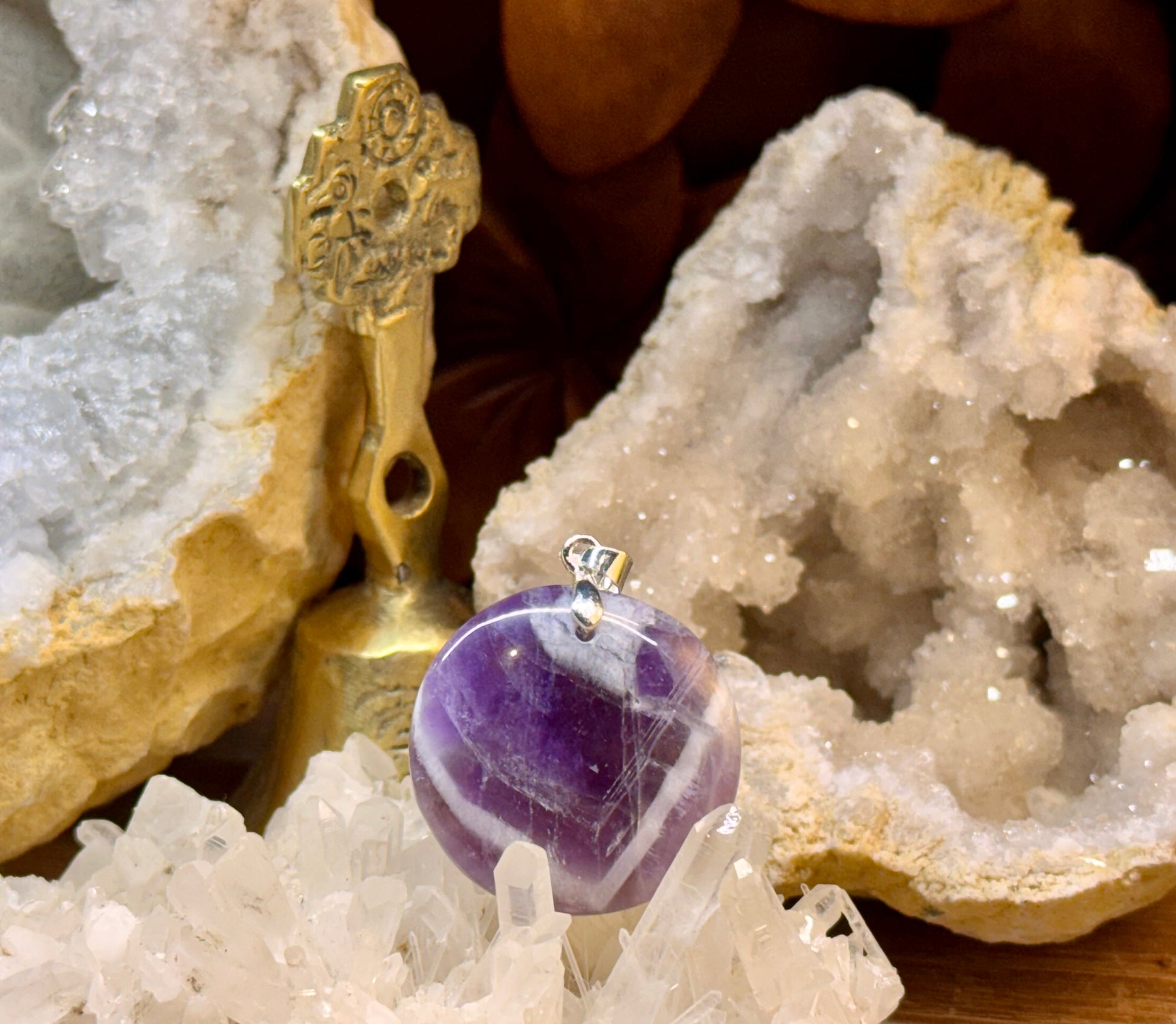 Plan spirituel : L’améthyste chevron apporte paix et sérénité et sera donc recommandée lors de l’apprentissage de la méditation. Véritable guide spirituel, elle incarne et transmet sagesse et humilité. Elle est excellente pour travailler le 3ème Œil. En effet elle améliore la vision physique et intuitive, permettant un accès aux multi-dimensions de la conscience. Elle aide à développer sa clairvoyance ainsi que son intuition.