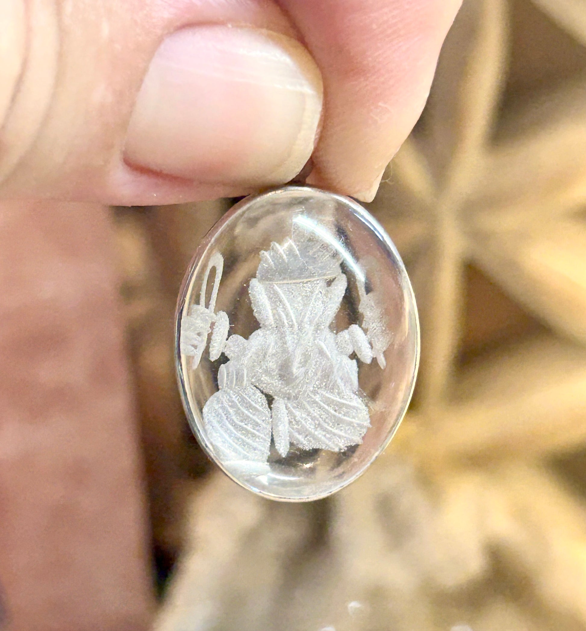 Ganesh ou Ganesha, le dieu à tête d'éléphant, est le fils de Shiva et de Parvati. C'est sans doute la divinité la plus populaire de l'Inde; il C'est le dieu du Savoir et de la Vertu. Porteur de chance, on ne manque pas de l'invoquer avant d'entreprendre une action importante. On peut faire appel à lui dans une situation difficile pour nous aider à lever les obstacles.