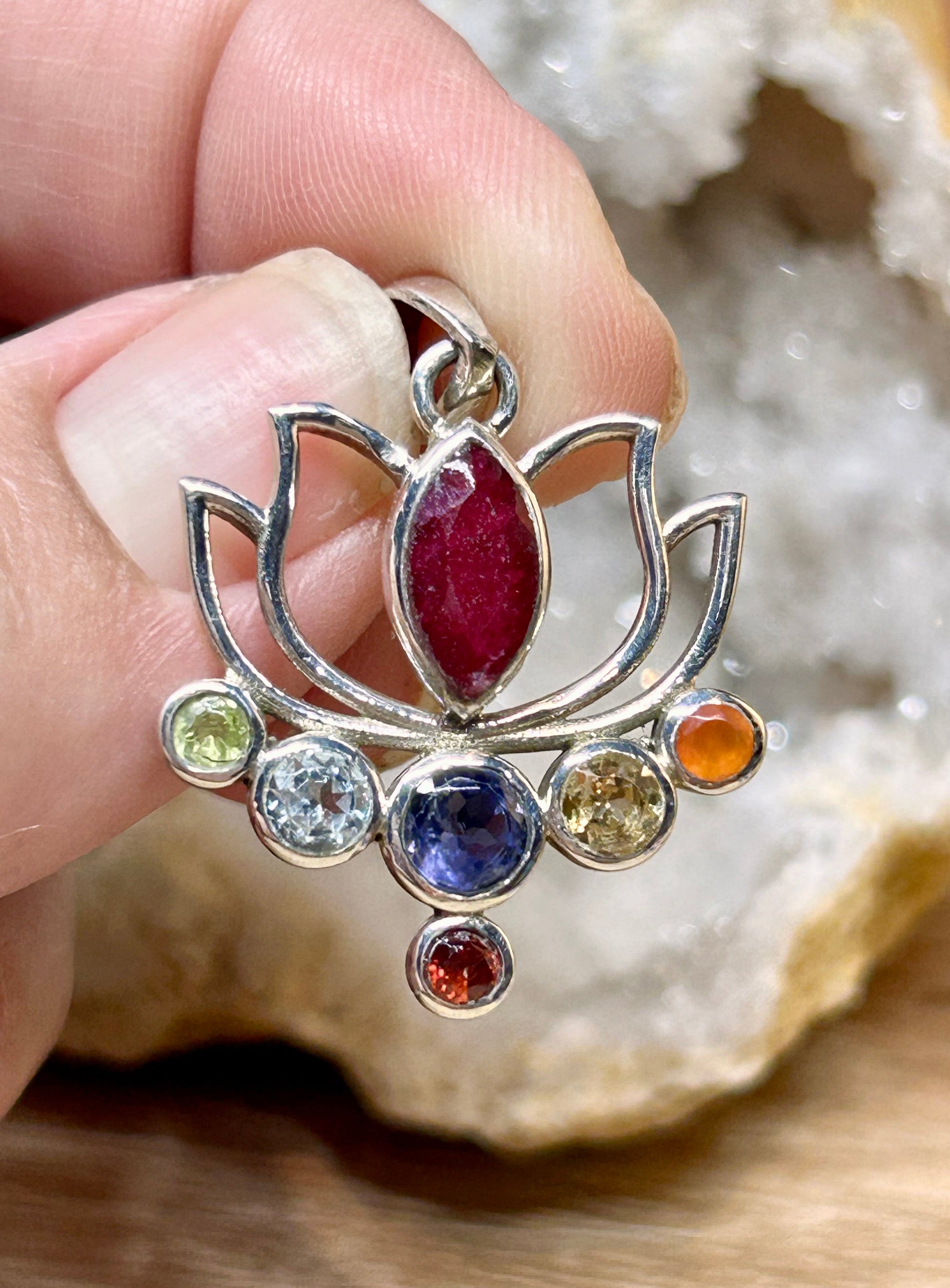 Gemmes : grenat, cornaline, citrine, péridot, topaze, iolite, rubis