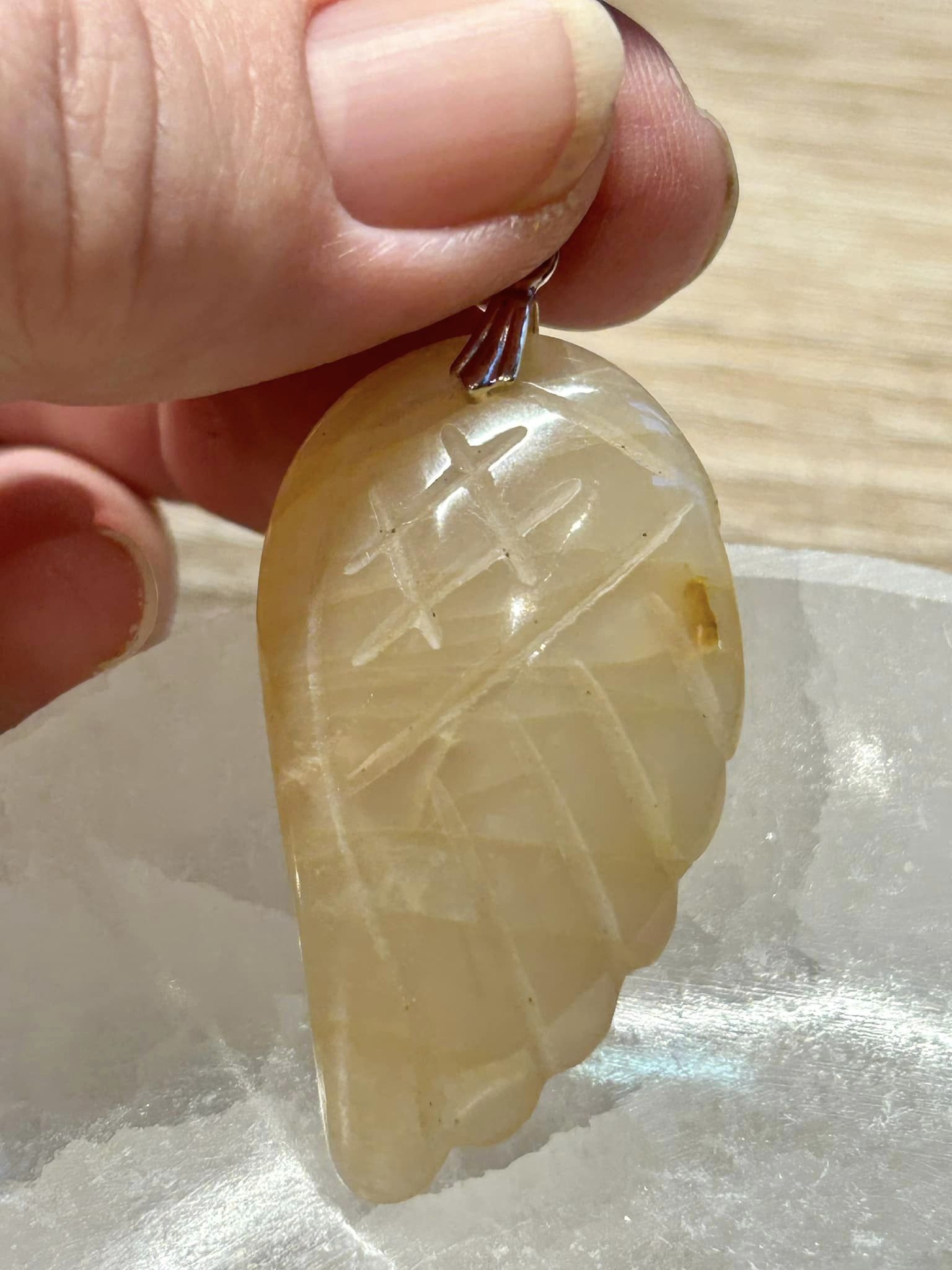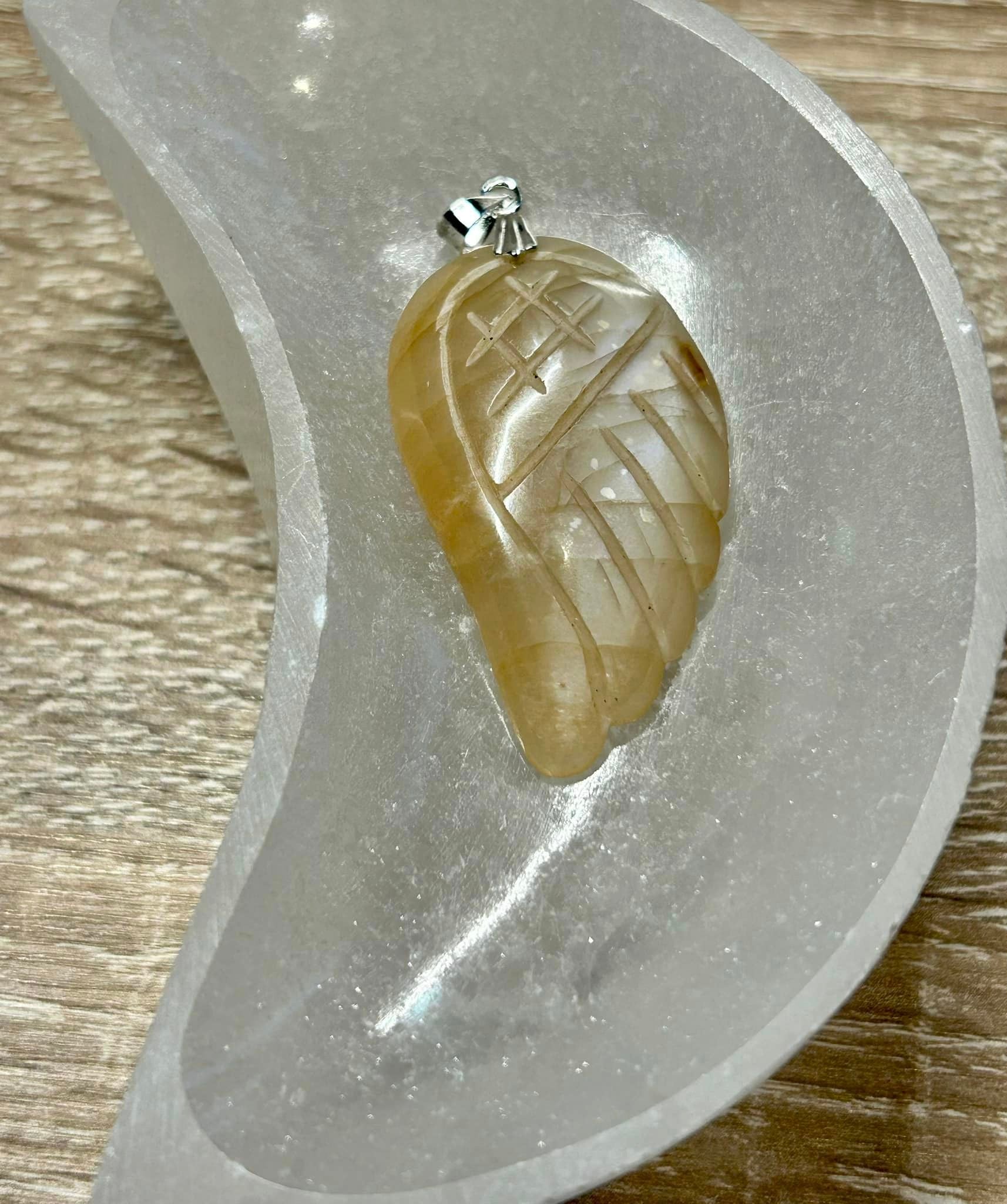 Pendentif en pierre de lune pêche forme d’aile - bélière en argent 925
