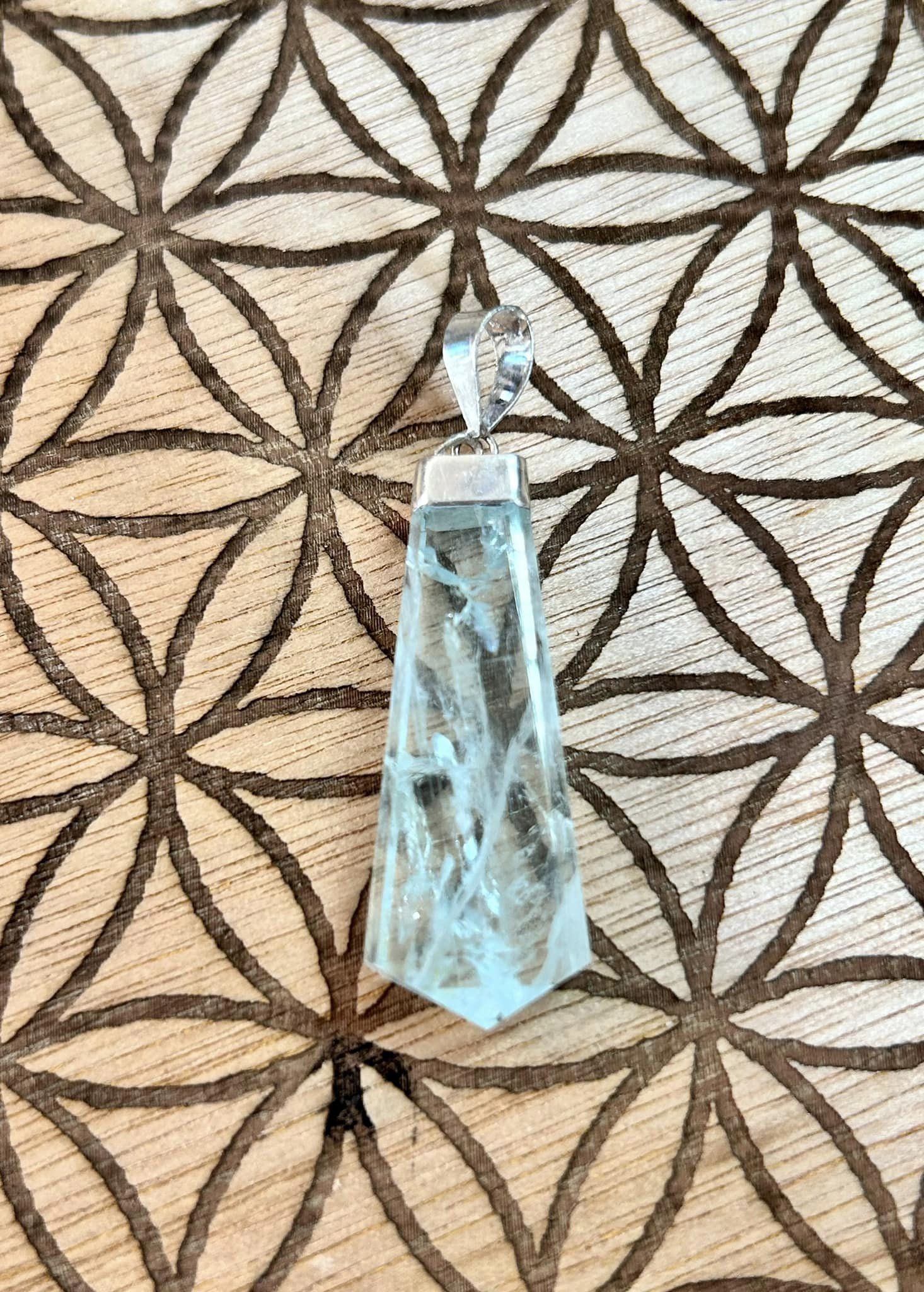 Pendentif gemme d’aigue marine - montage argent 925 - n°1