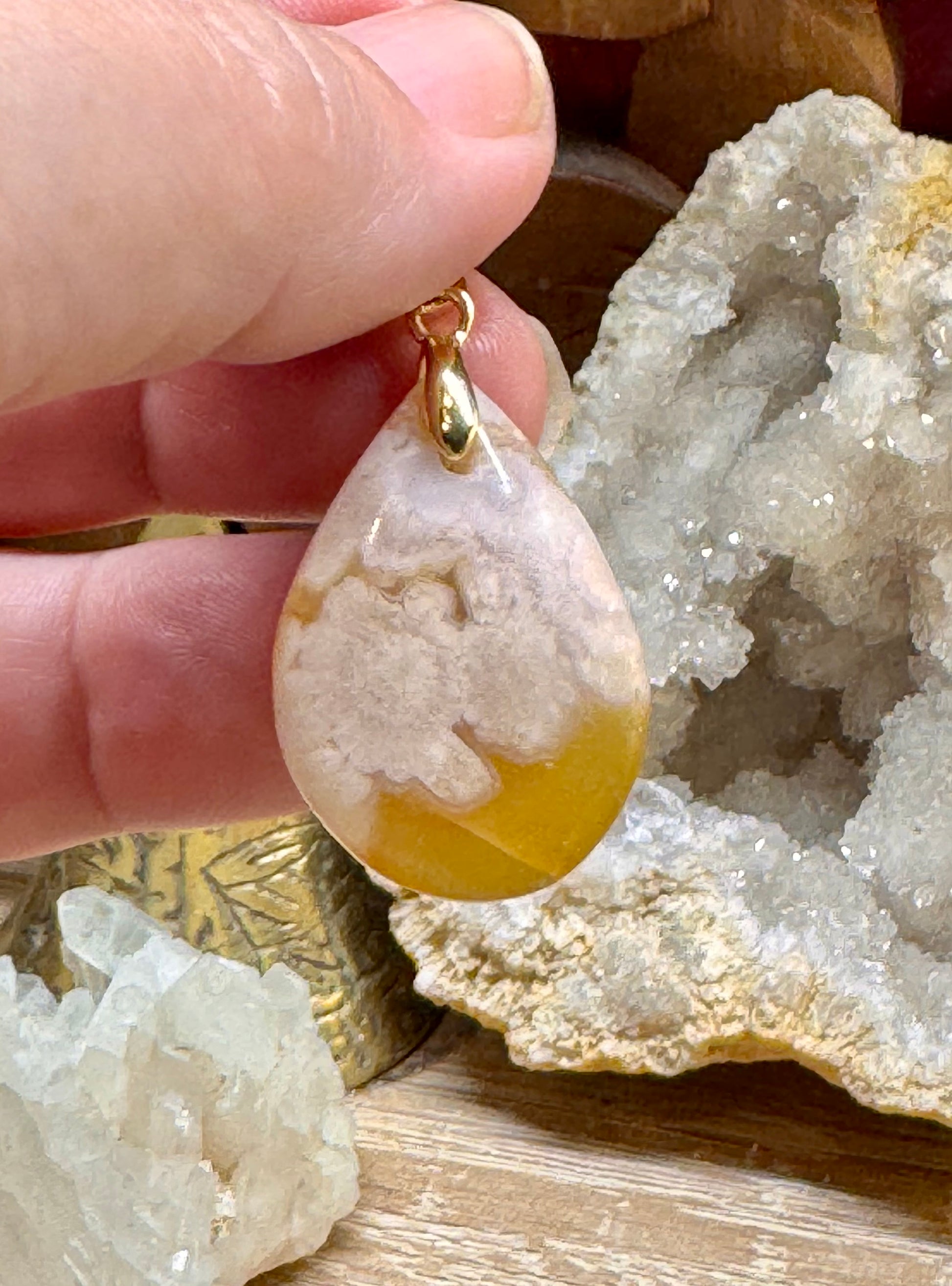L’agate fleur de cerisier aussi appelé : agate Sakura, aide à atteindre plus facilement la paix intérieure, elle pousse à vivre l’instant présent, tout en restaurant l’équilibre des émotions. Elle insuffle l’inspiration, apporte la relaxation et soulage les traumatismes émotionnels. Elle attire également l’abondance, aide à éprouver plus d’empathie et renforce l’ancrage.