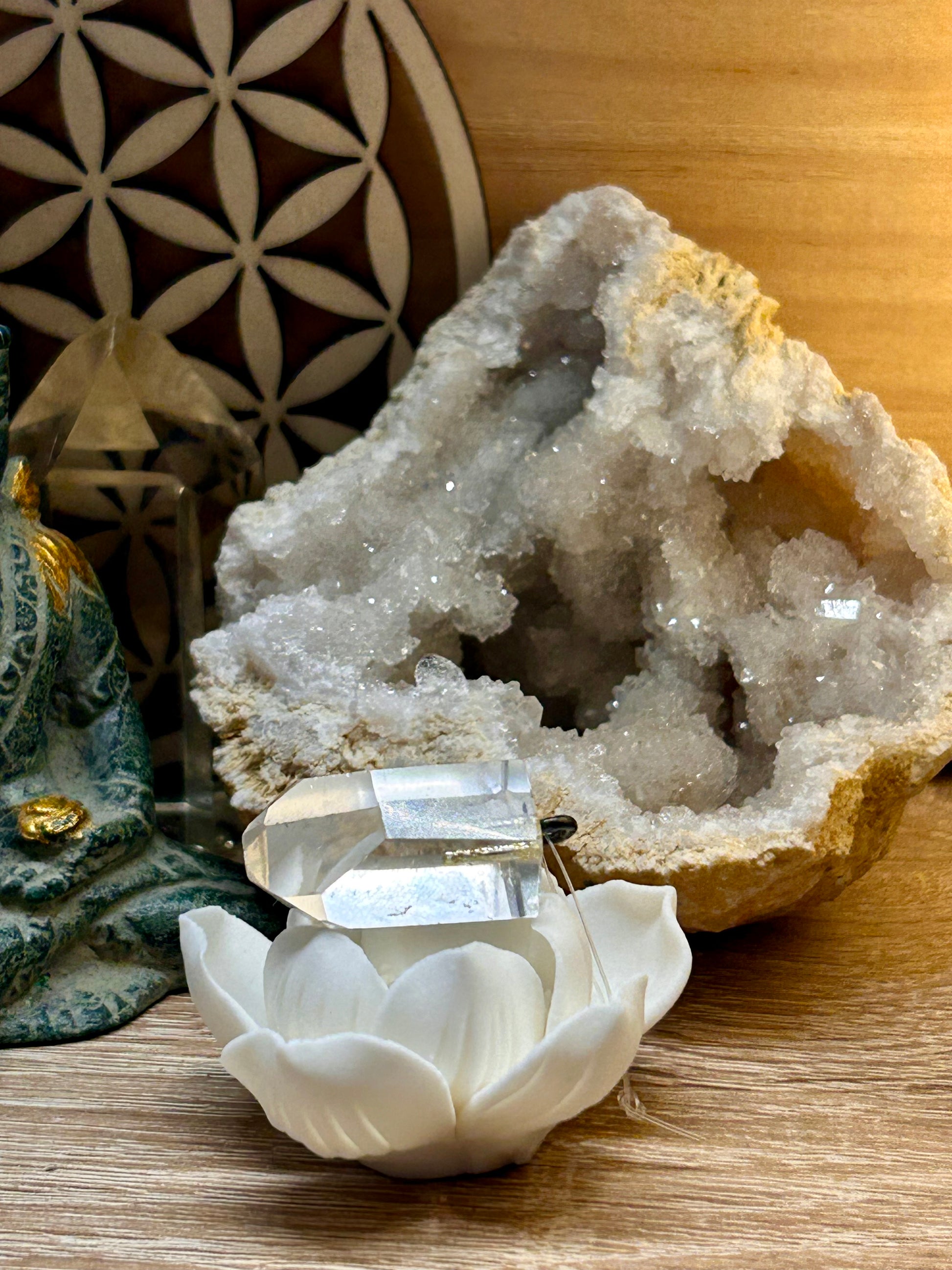 Pierre maîtresse en lithothérapie, le cristal de roche a une propriété symbolique et est reconnue comme telle. Cette pierre est réceptrice, émettrice et amplificatrice. Elle permet de travailler sur l’énergie qui est à l’intérieur de lui-même, il peut amplifier cette énergie, la transformer, l’emmagasiner et la retransmettre. C’est le Maître guérisseur, il permet d’amplifier et de dynamiser les pierres qui l’entourent.