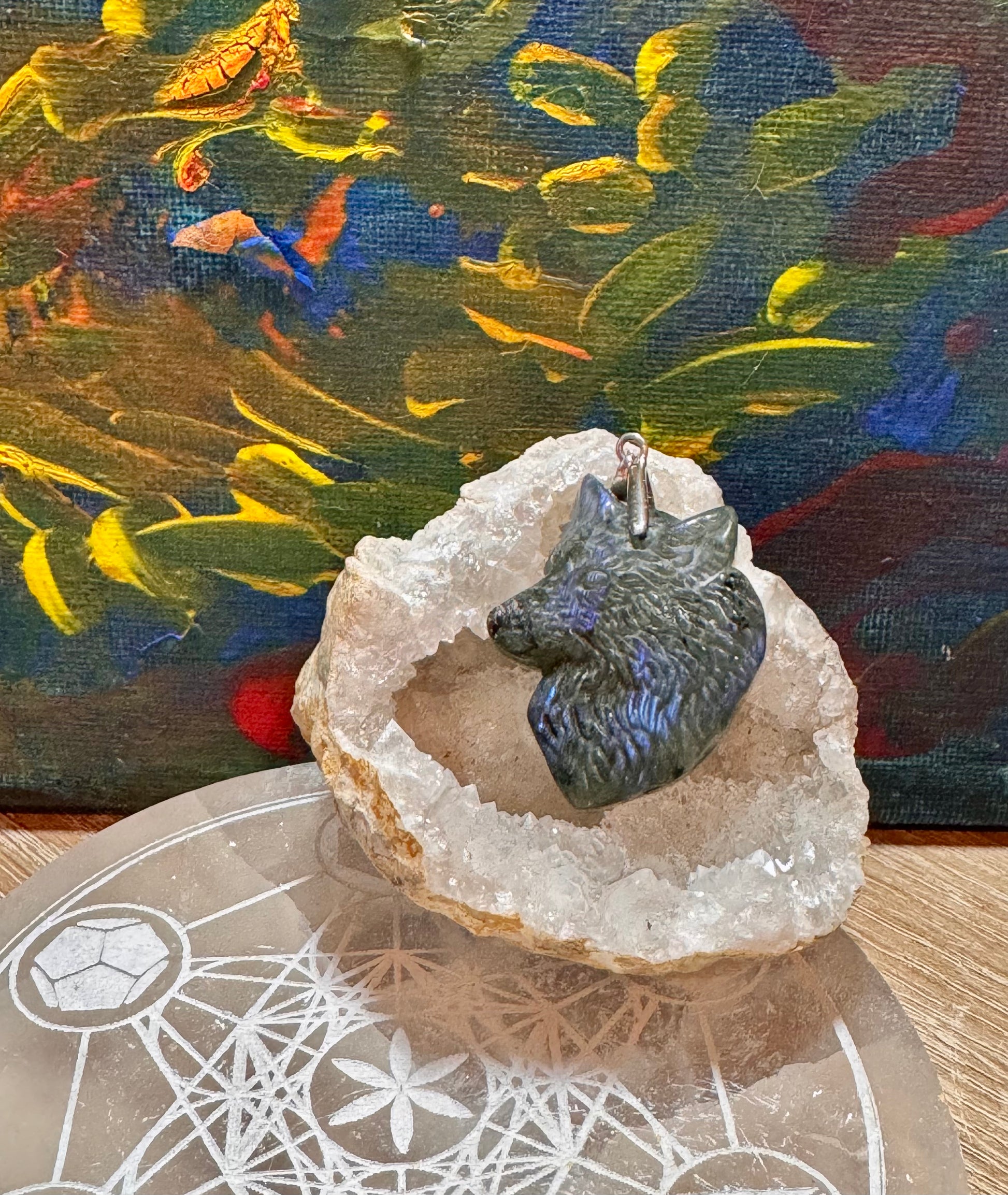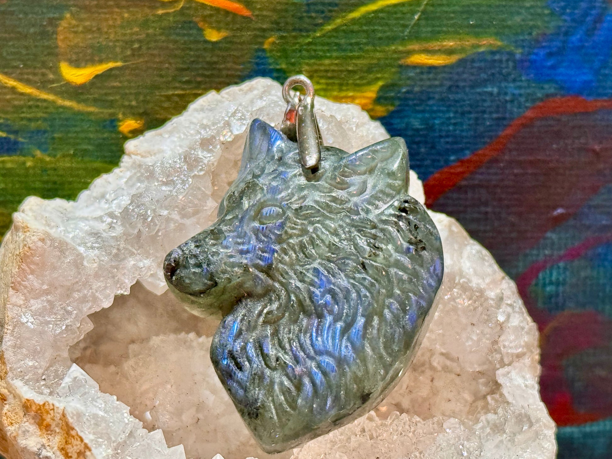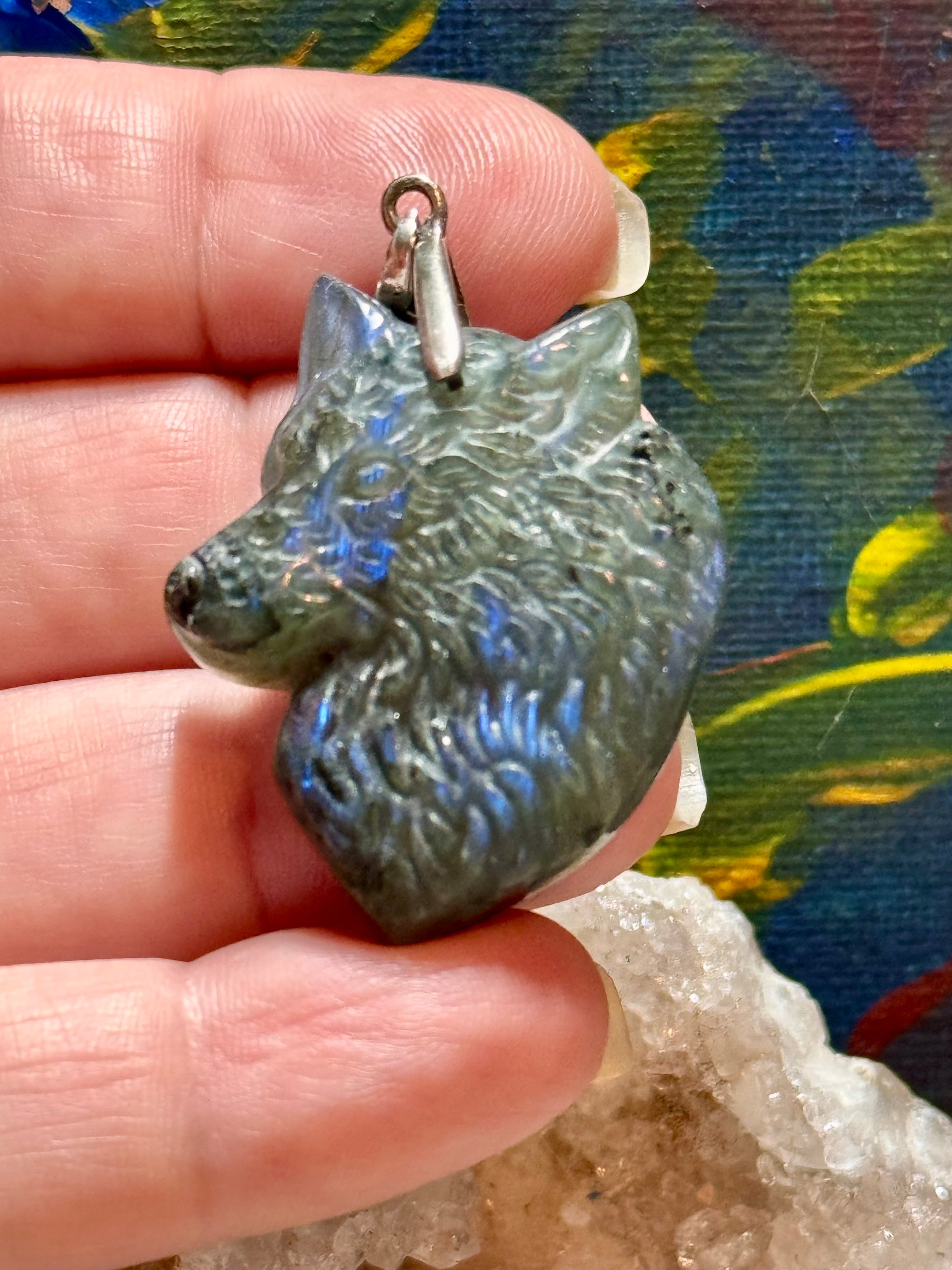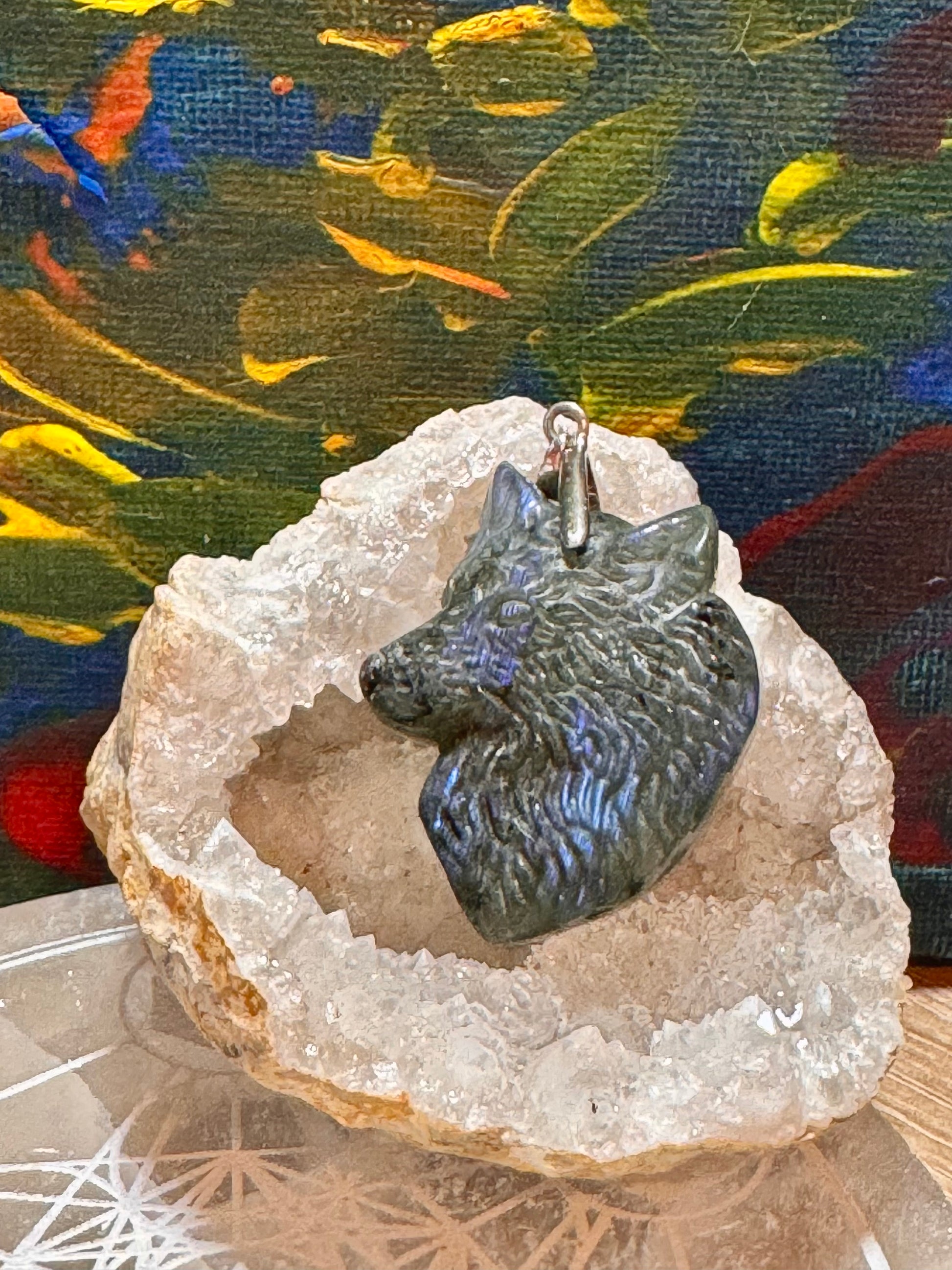 Pendentif tête de loup en labradorite