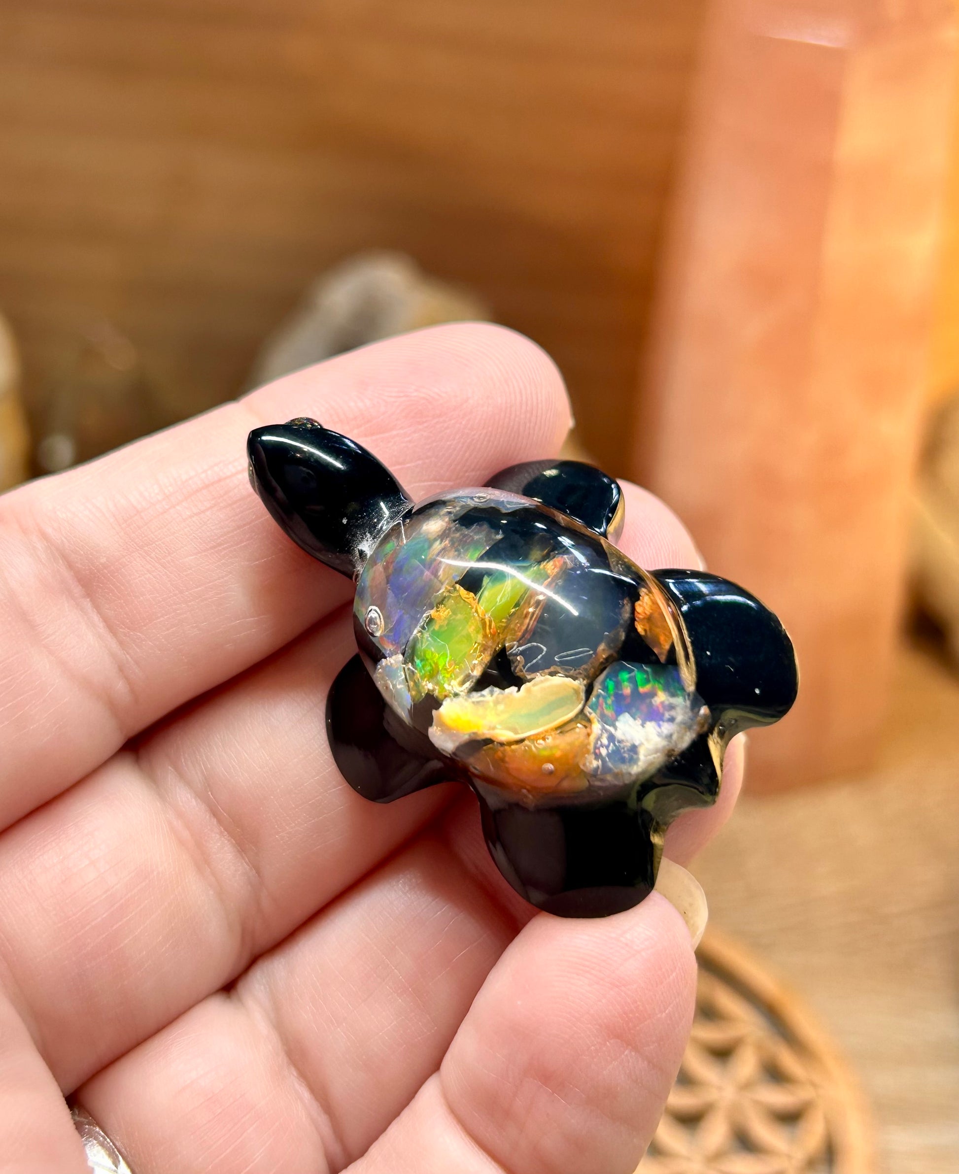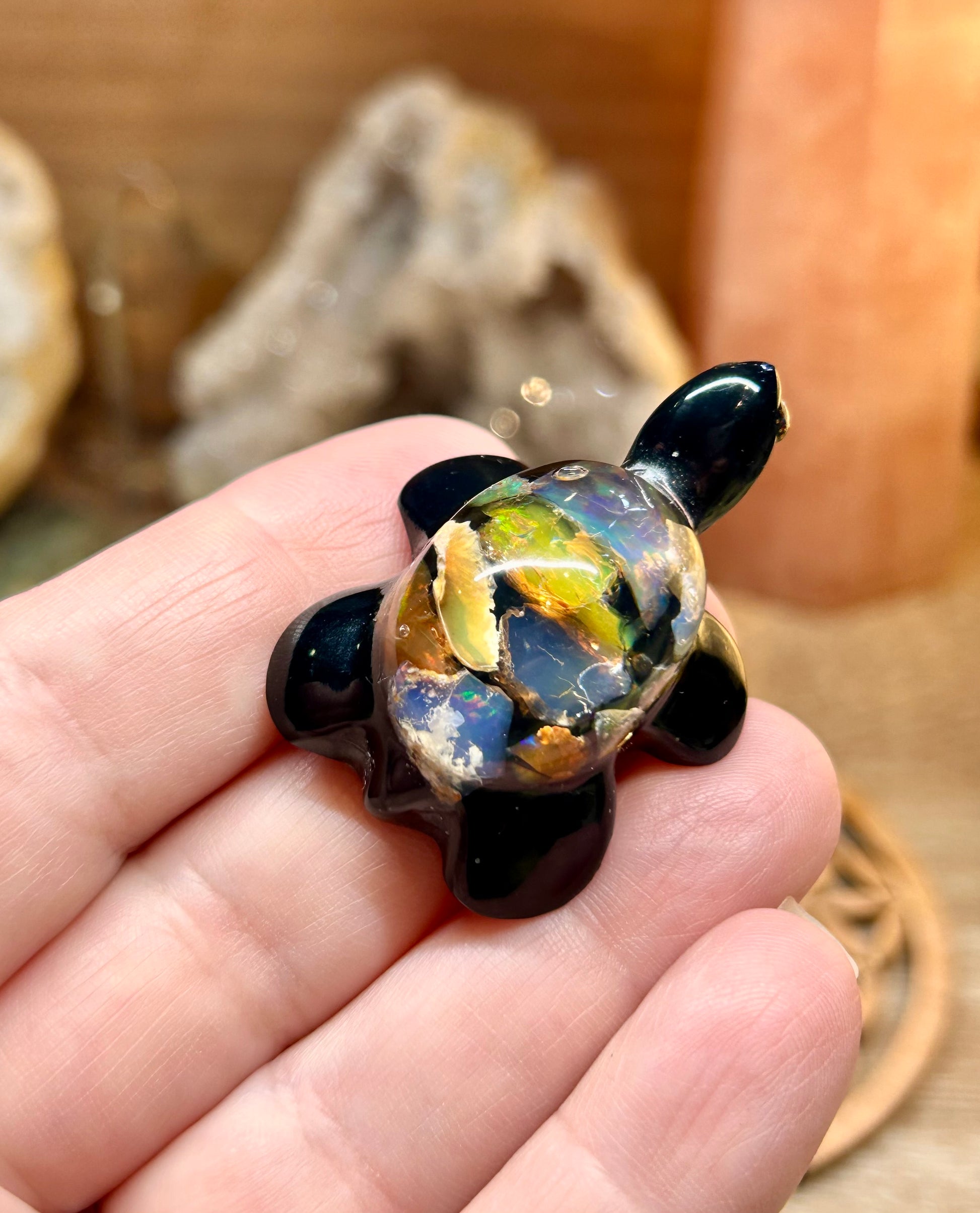 Pendentif tortue en résine et opale wello - n•3