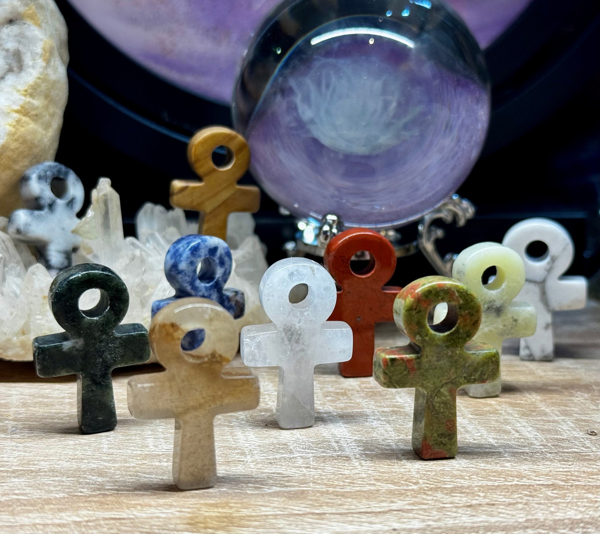 Agate, Jaspe vert, Cristal de Roche, Unakite, Phrénite, Sodalite, Jaspe rouge, Howlite, Jaspe Bois, Jaspe