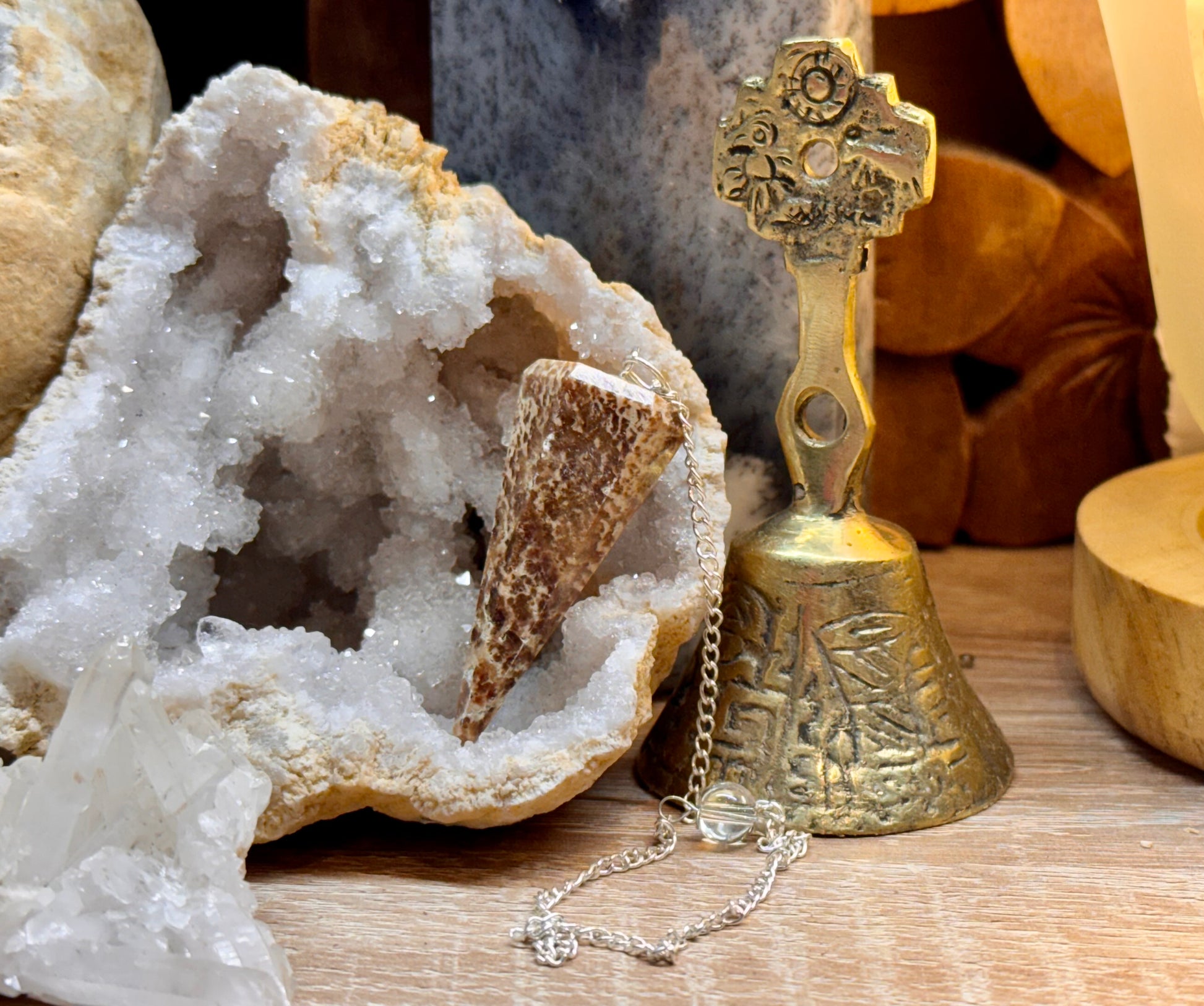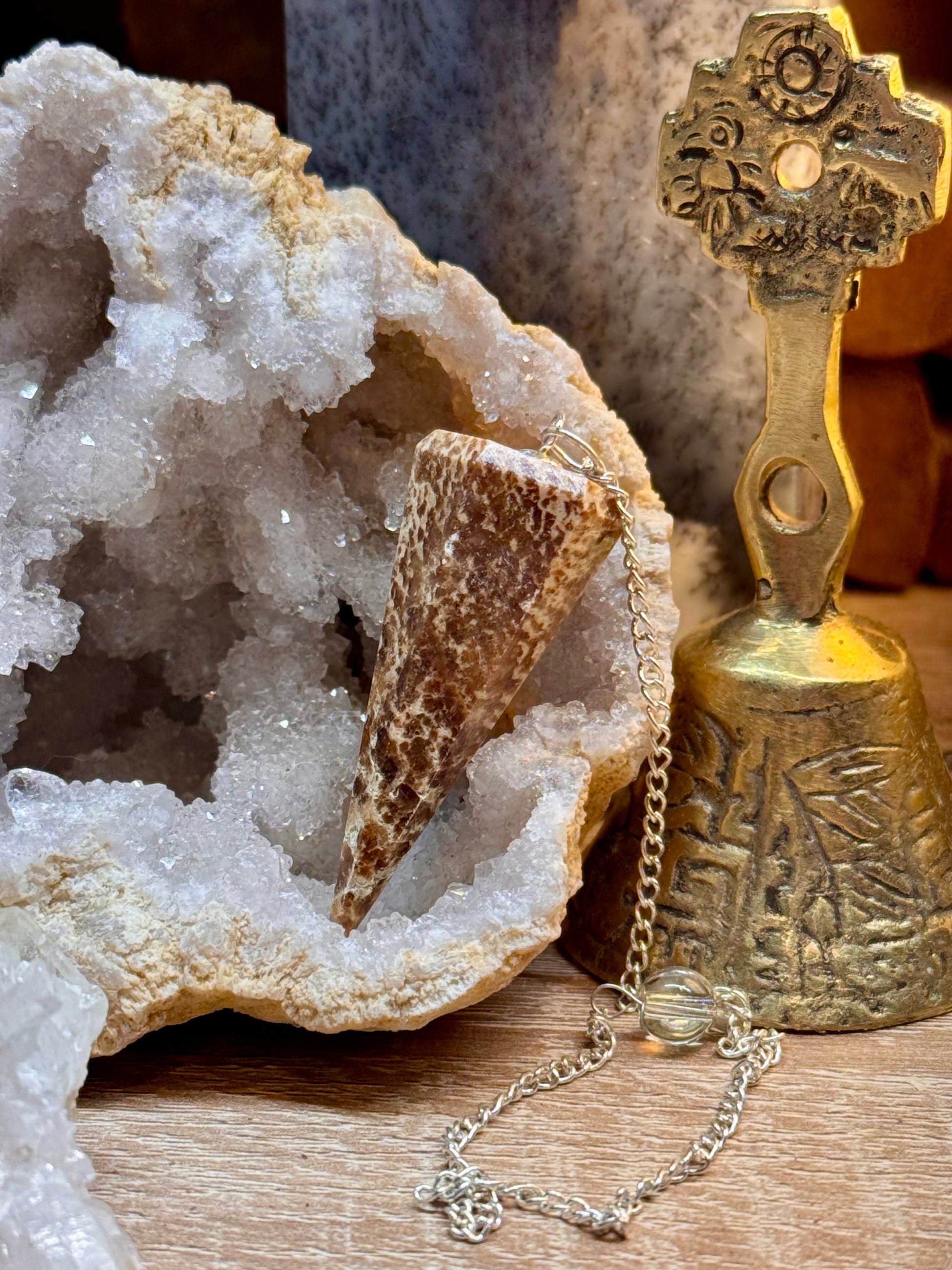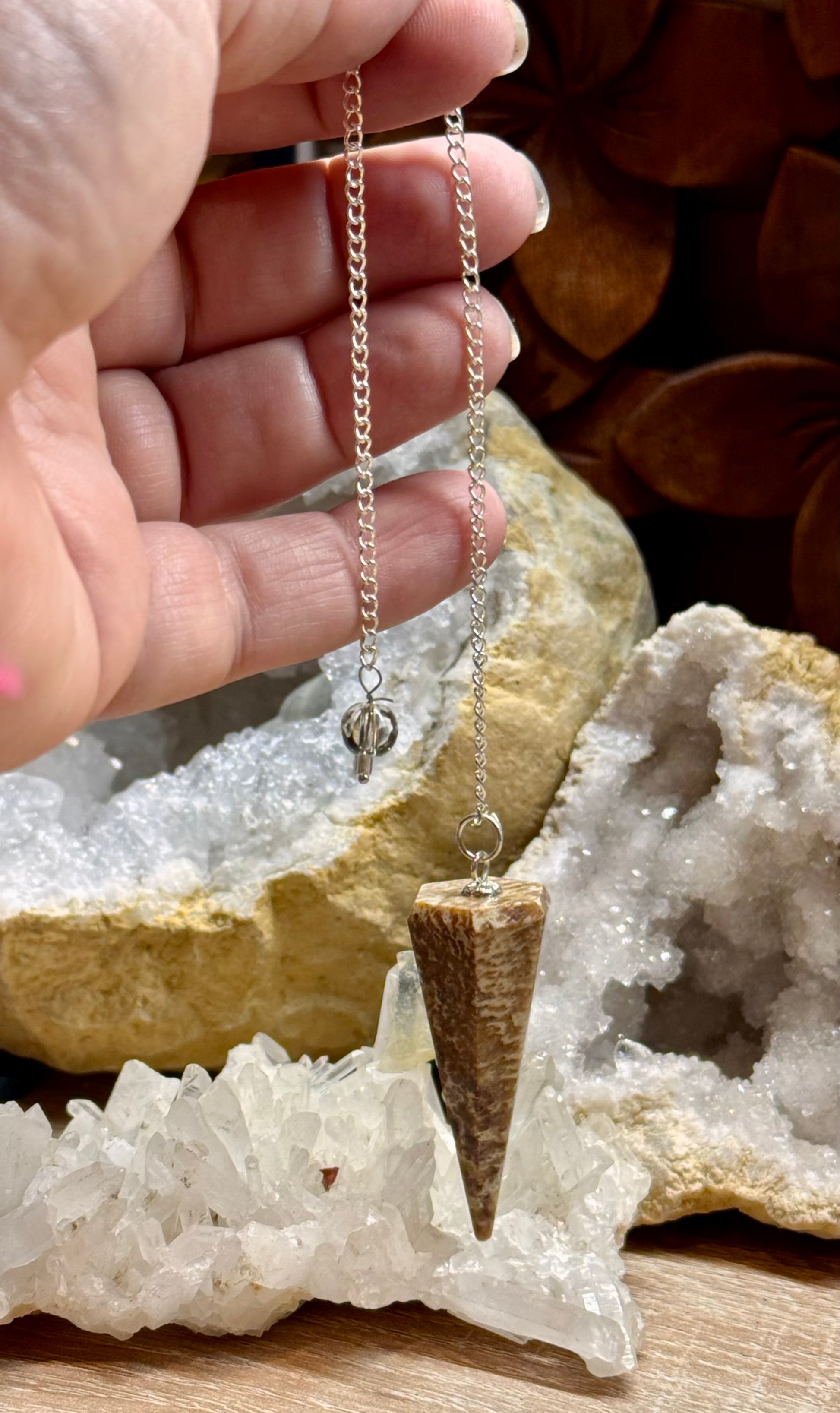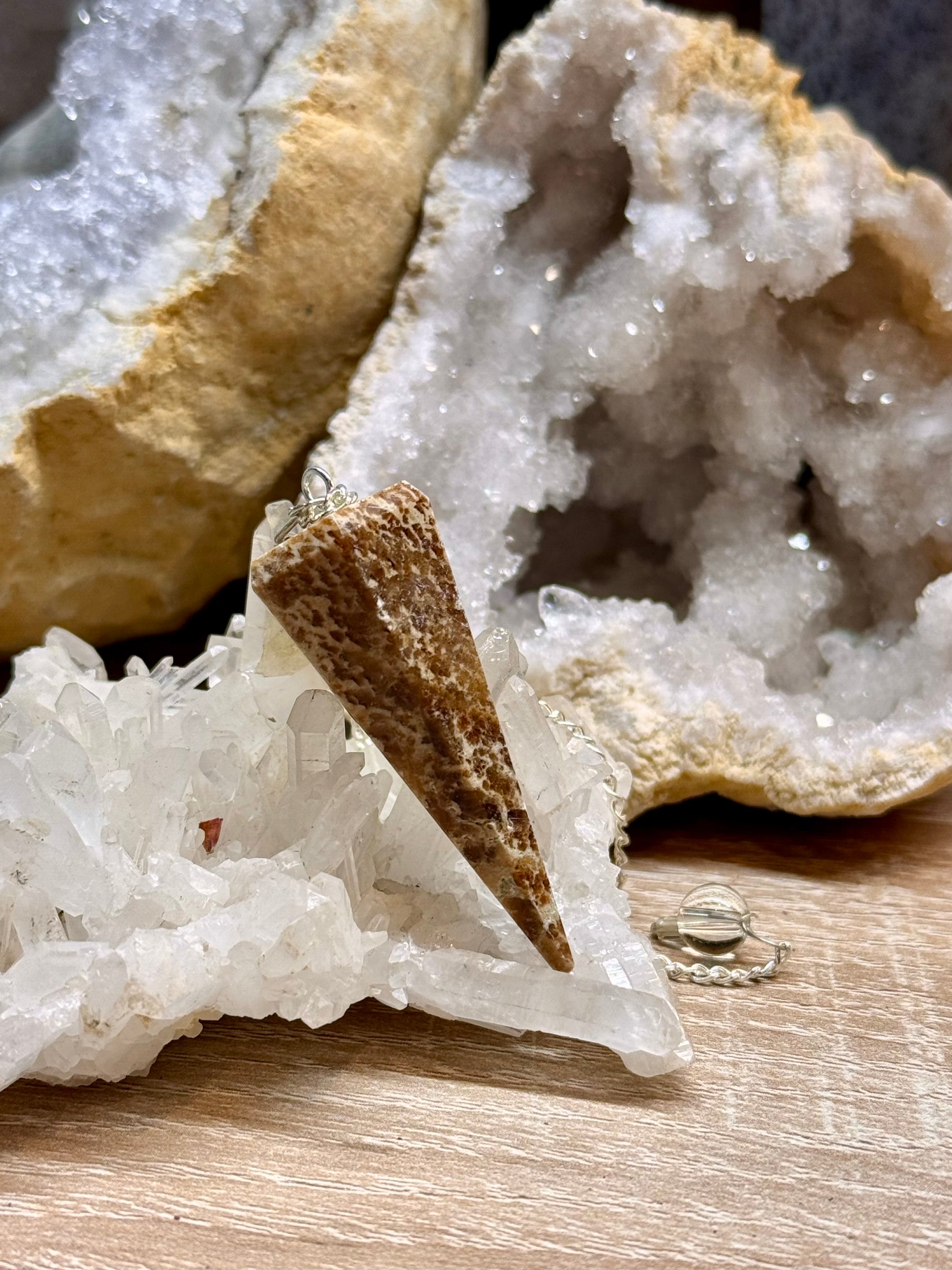 Pendule conique faceté en aragonite