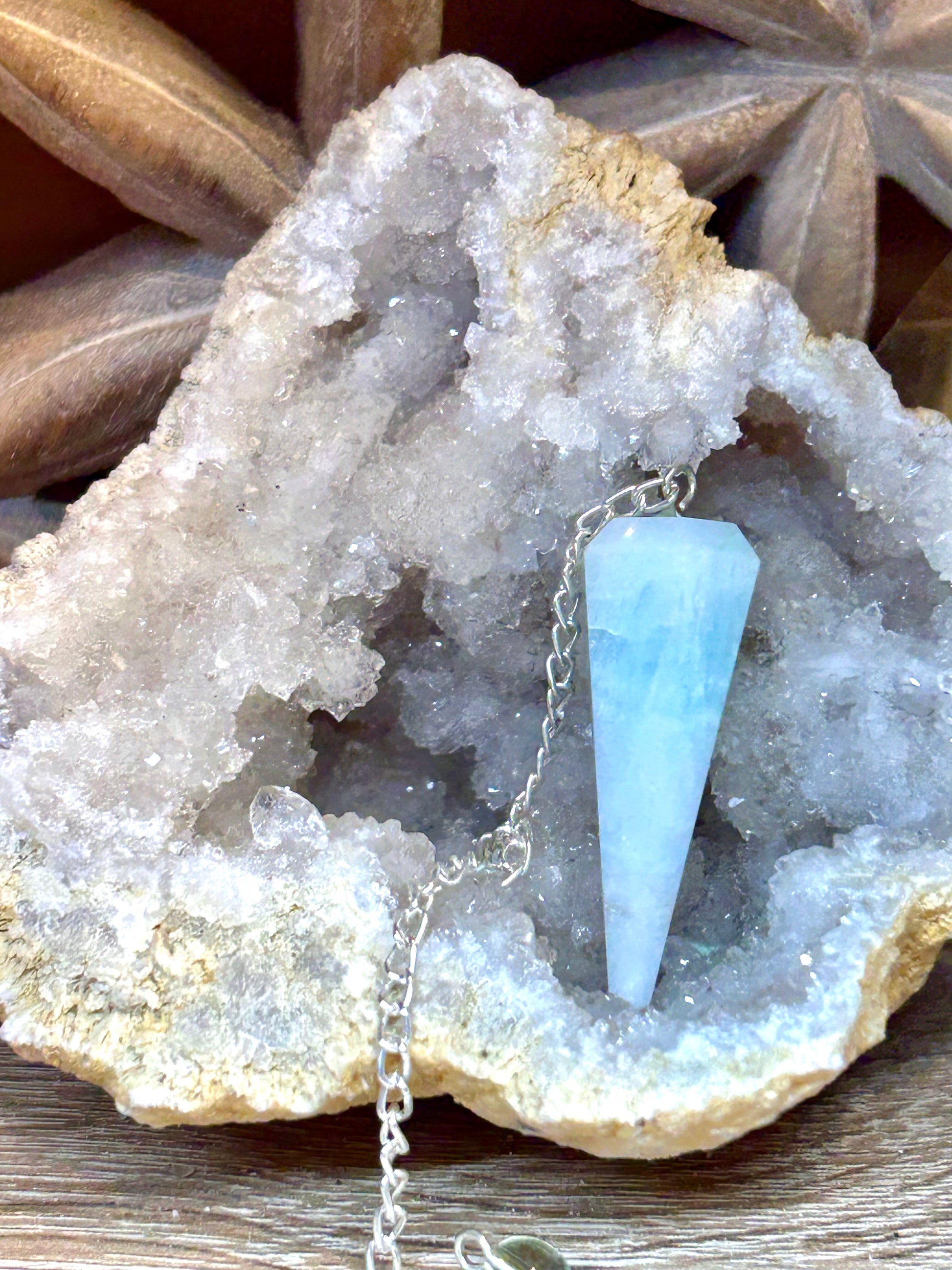Pendule aragonite bleue à facettes