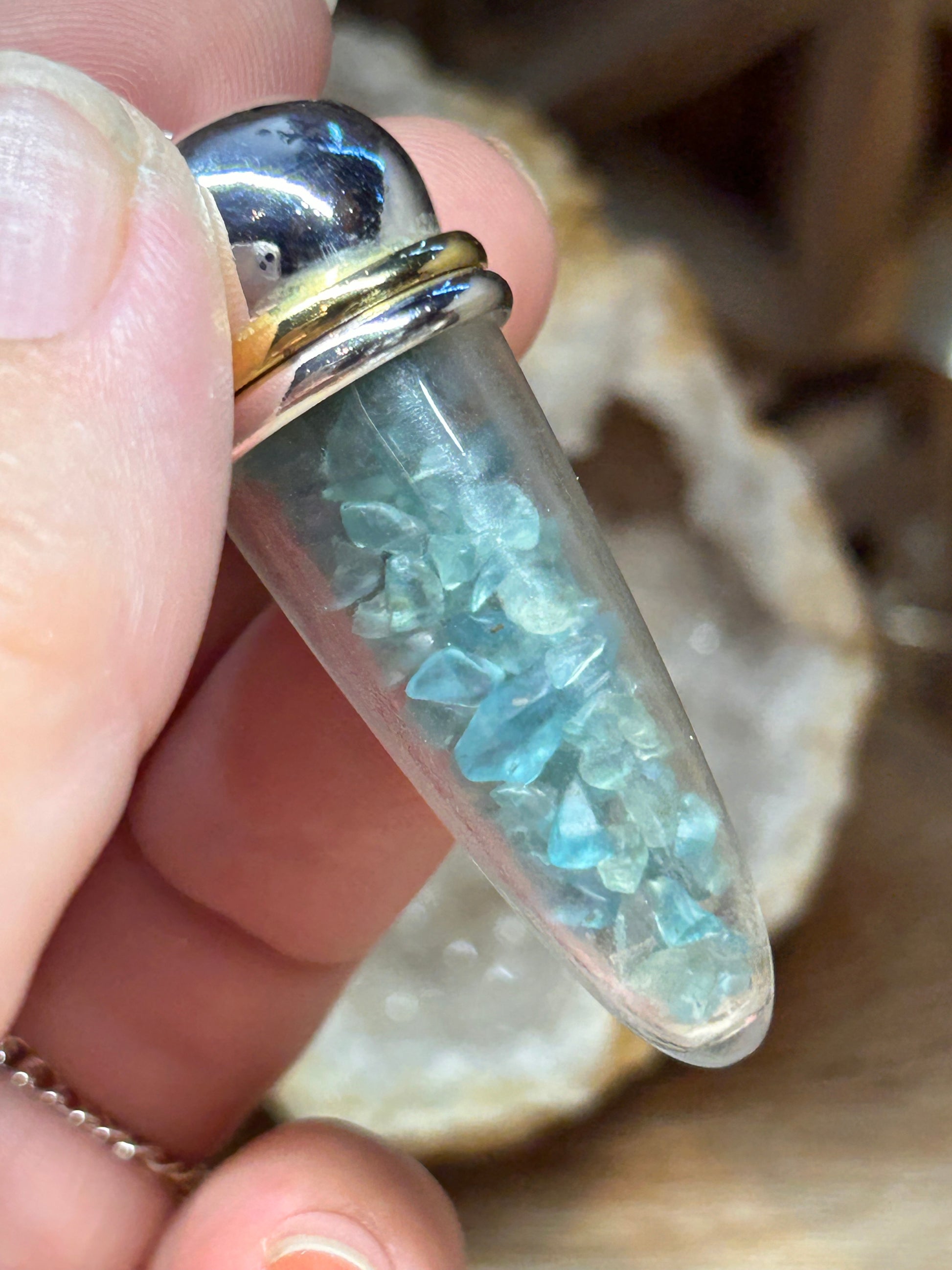 Plan spirituel : L’Apatite bleue est excellente pour mettre en harmonie le yin et le yang. Elle développe l’accord spirituel. Cette pierre évite l’isolement, la séparation, tout en accroissant la motivation et la créativité. Elle développe aussi l’intellect.