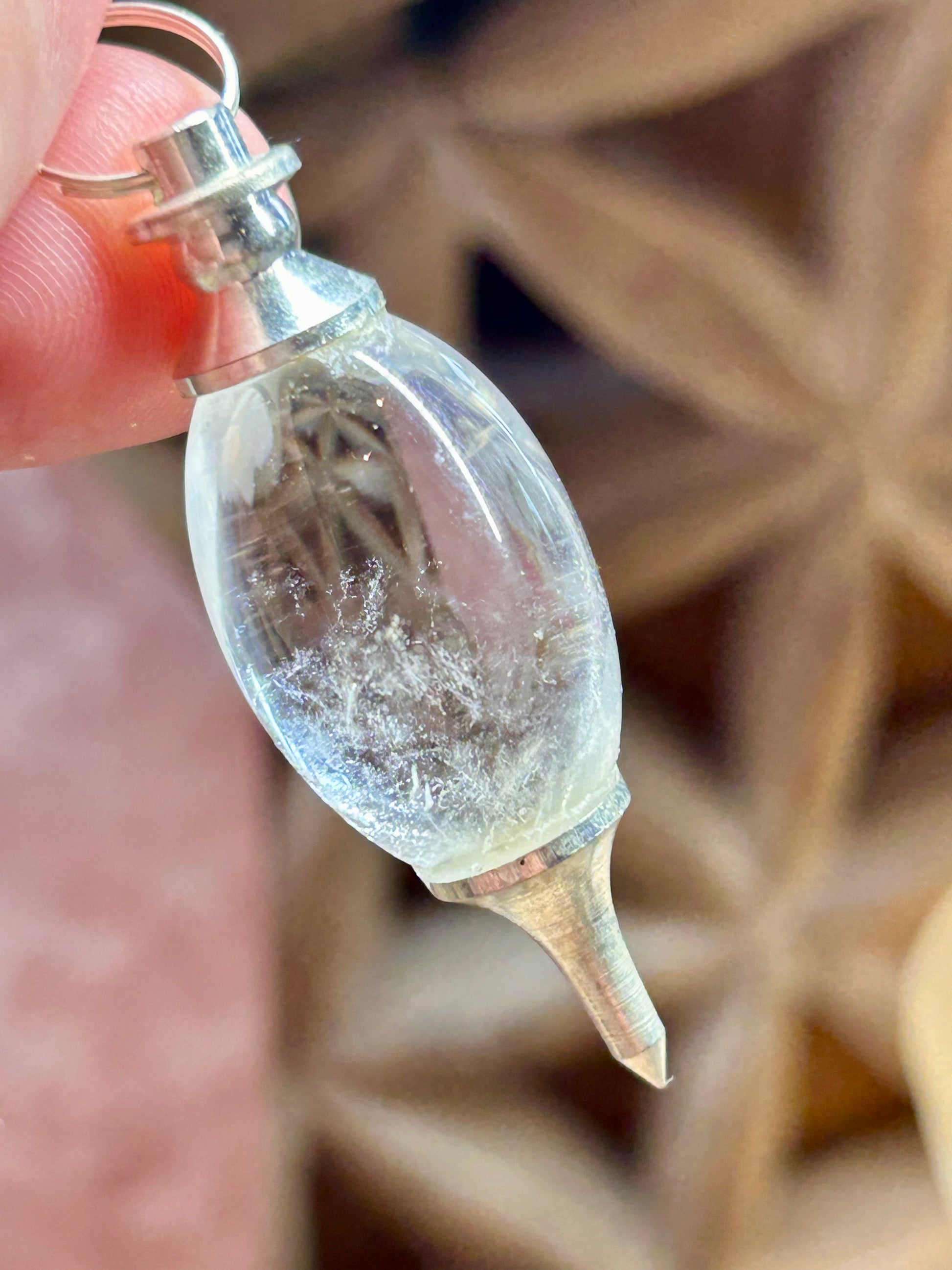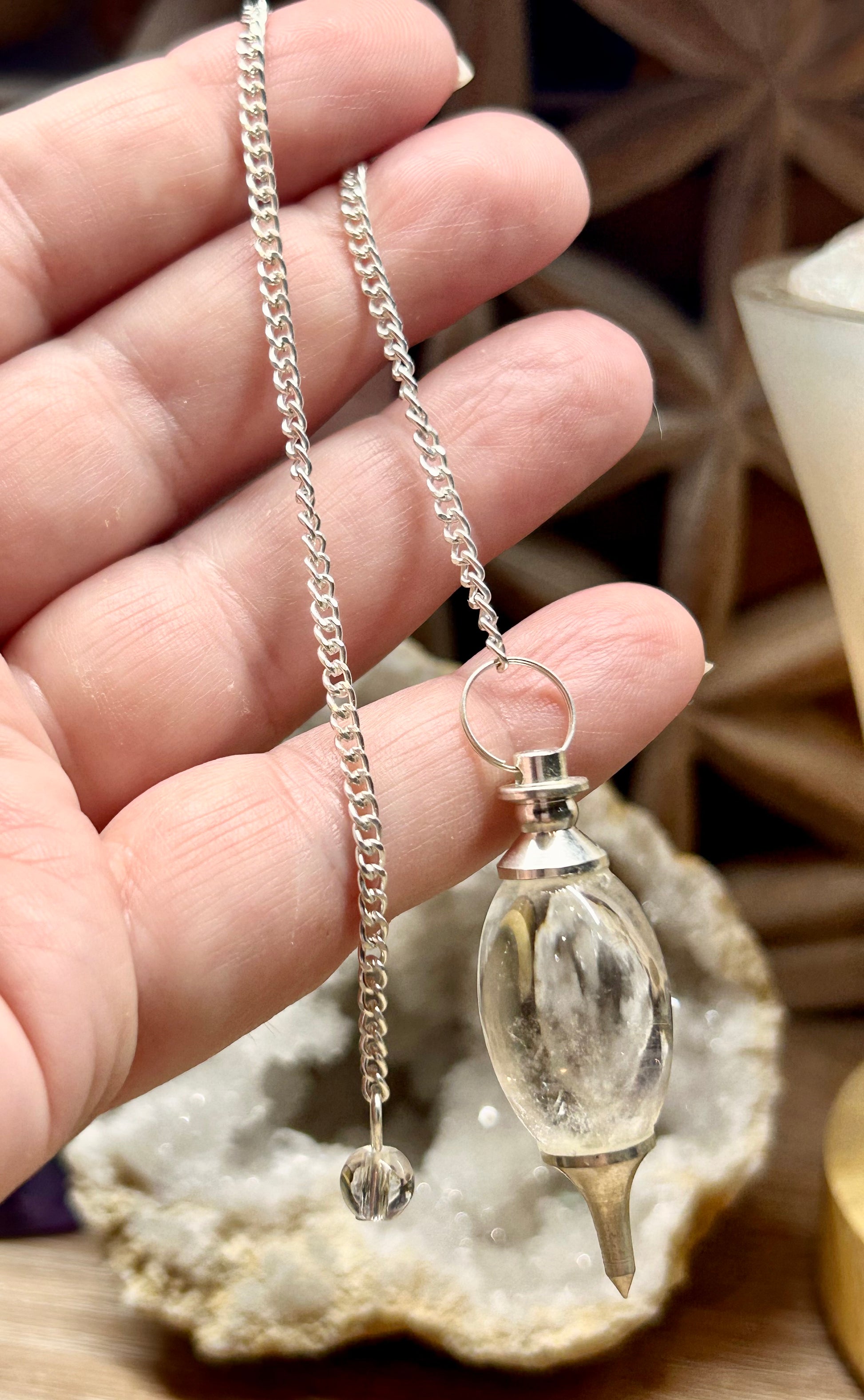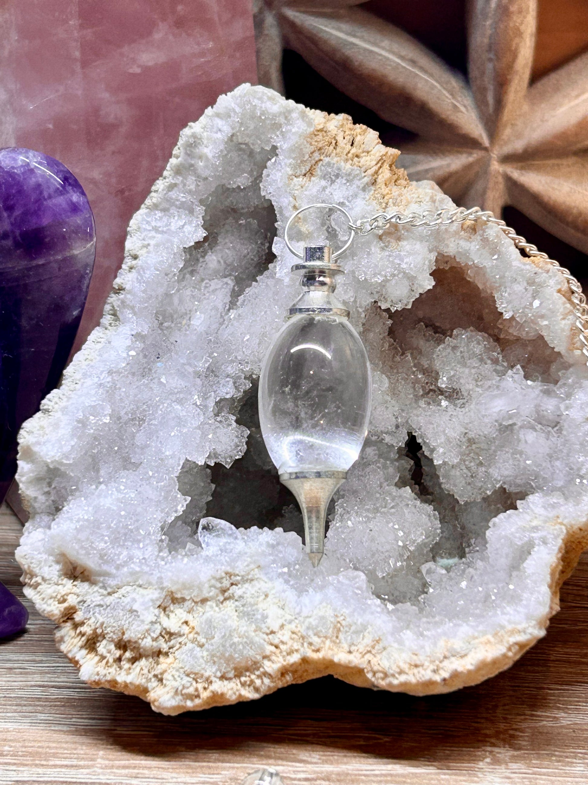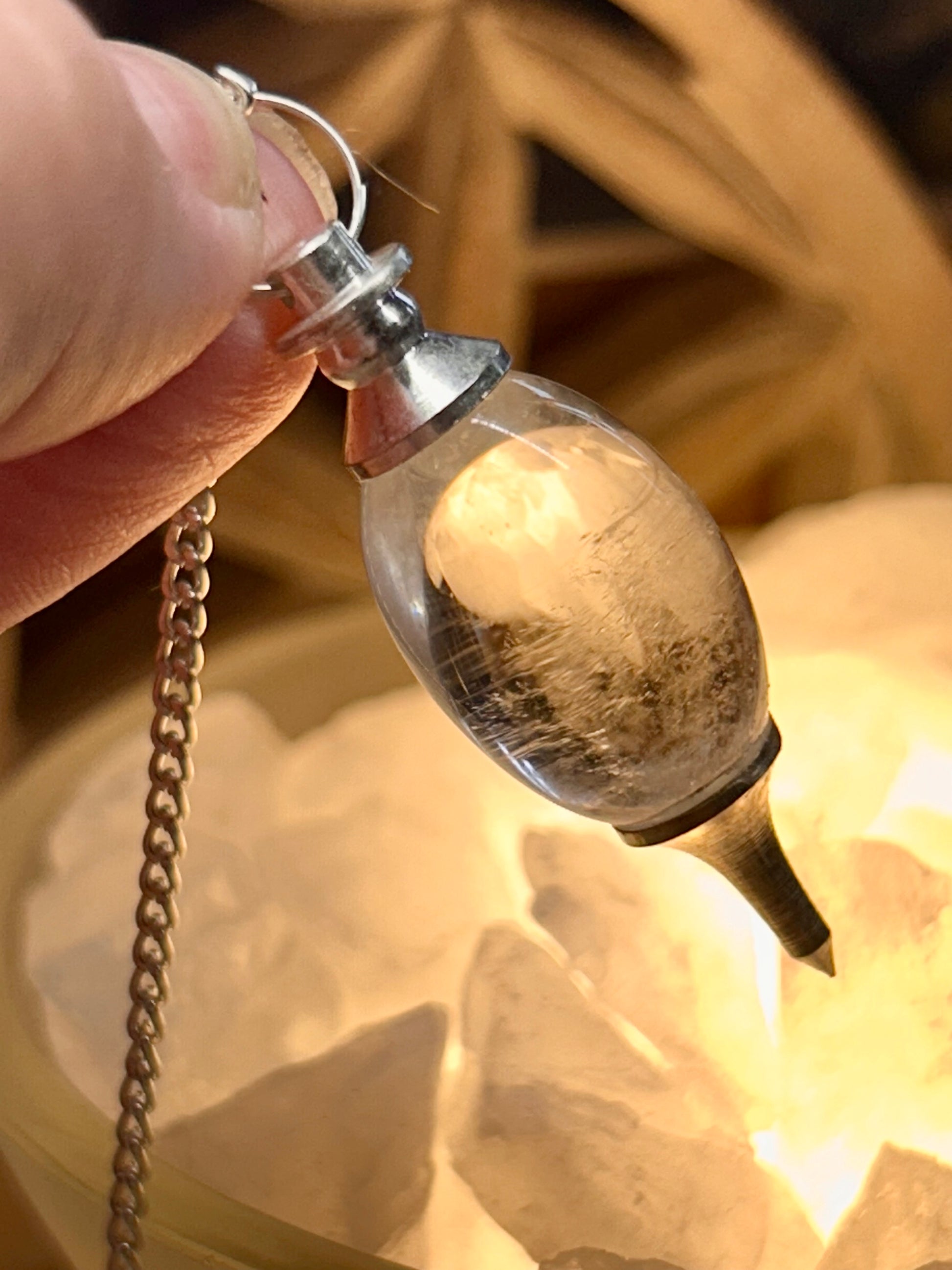 Pendule en cristal de roche, en forme de Shiva Lingam