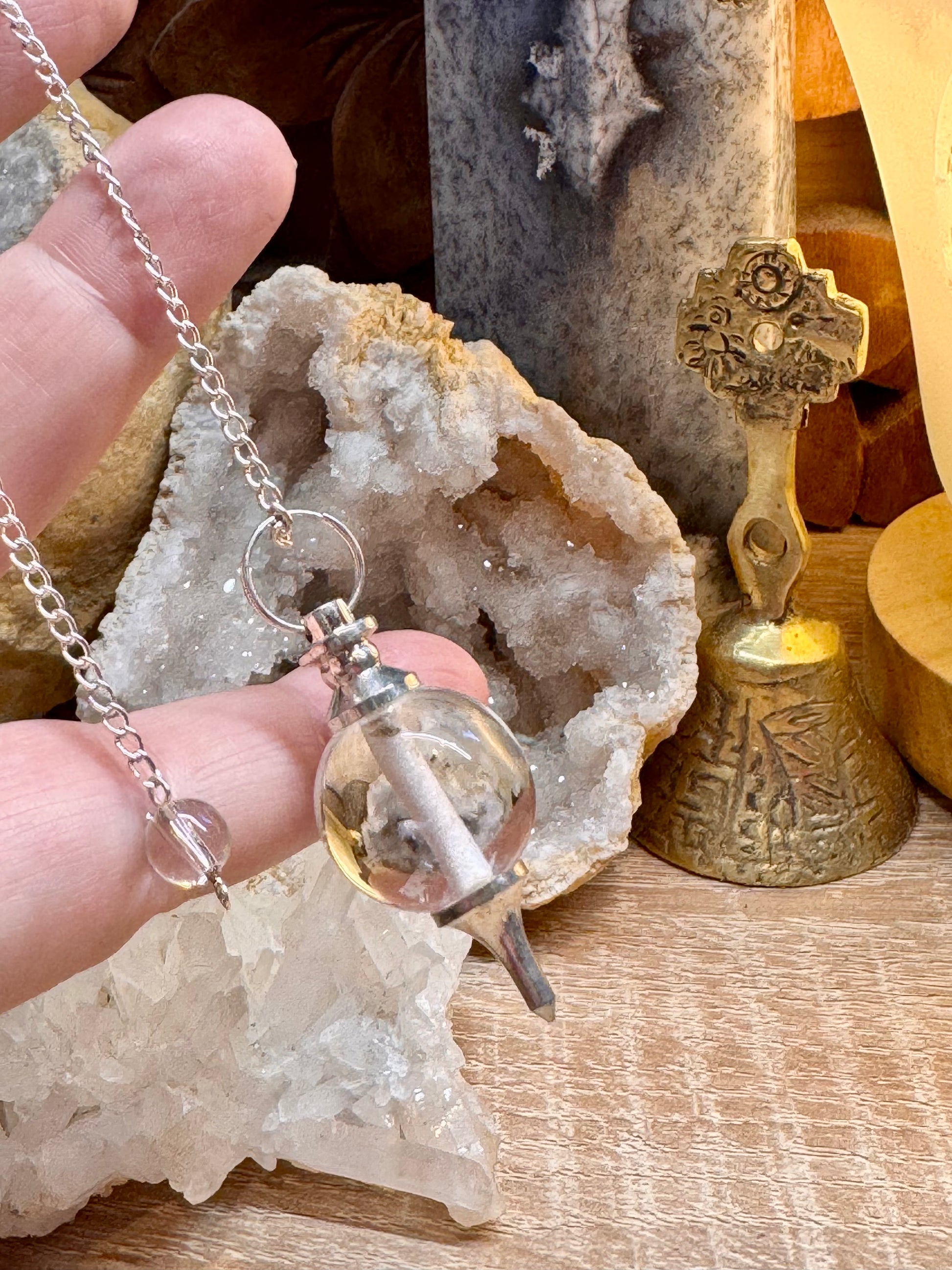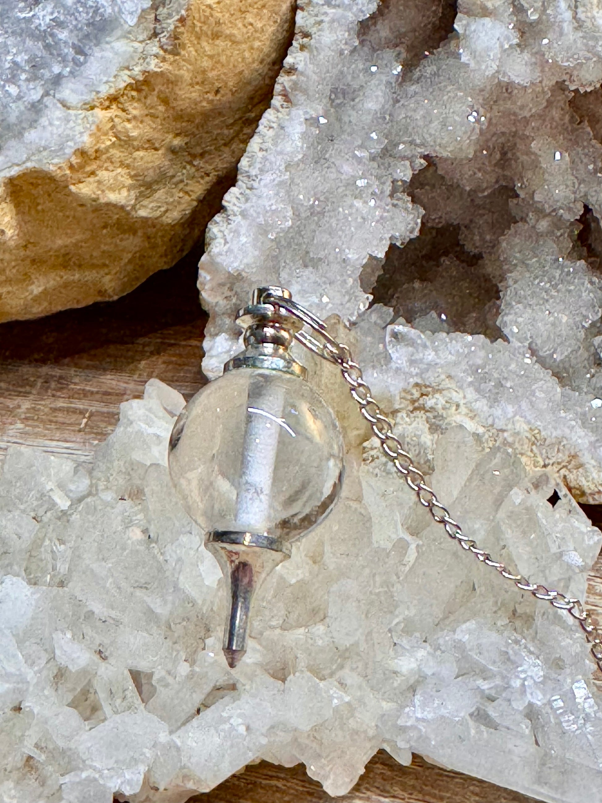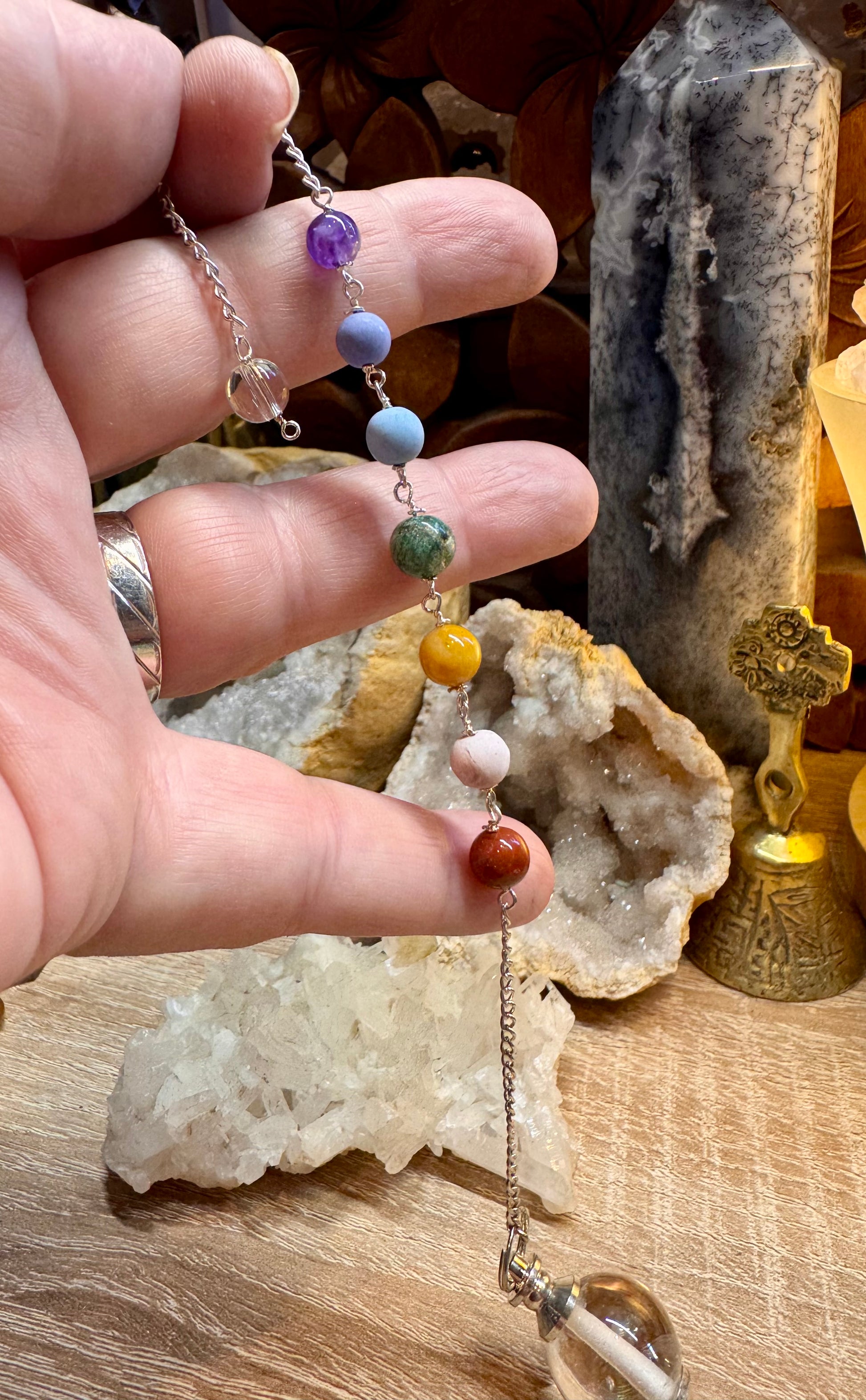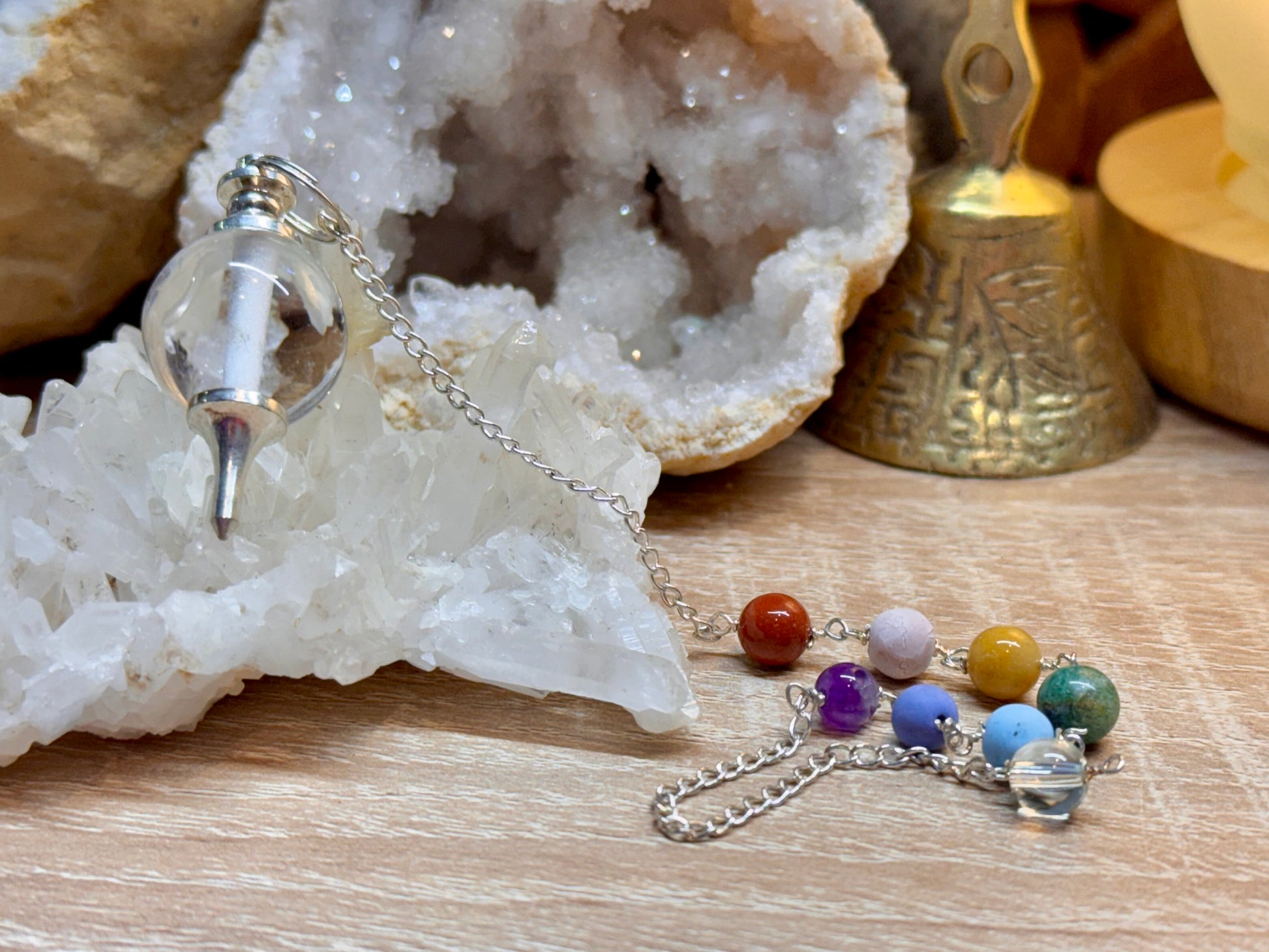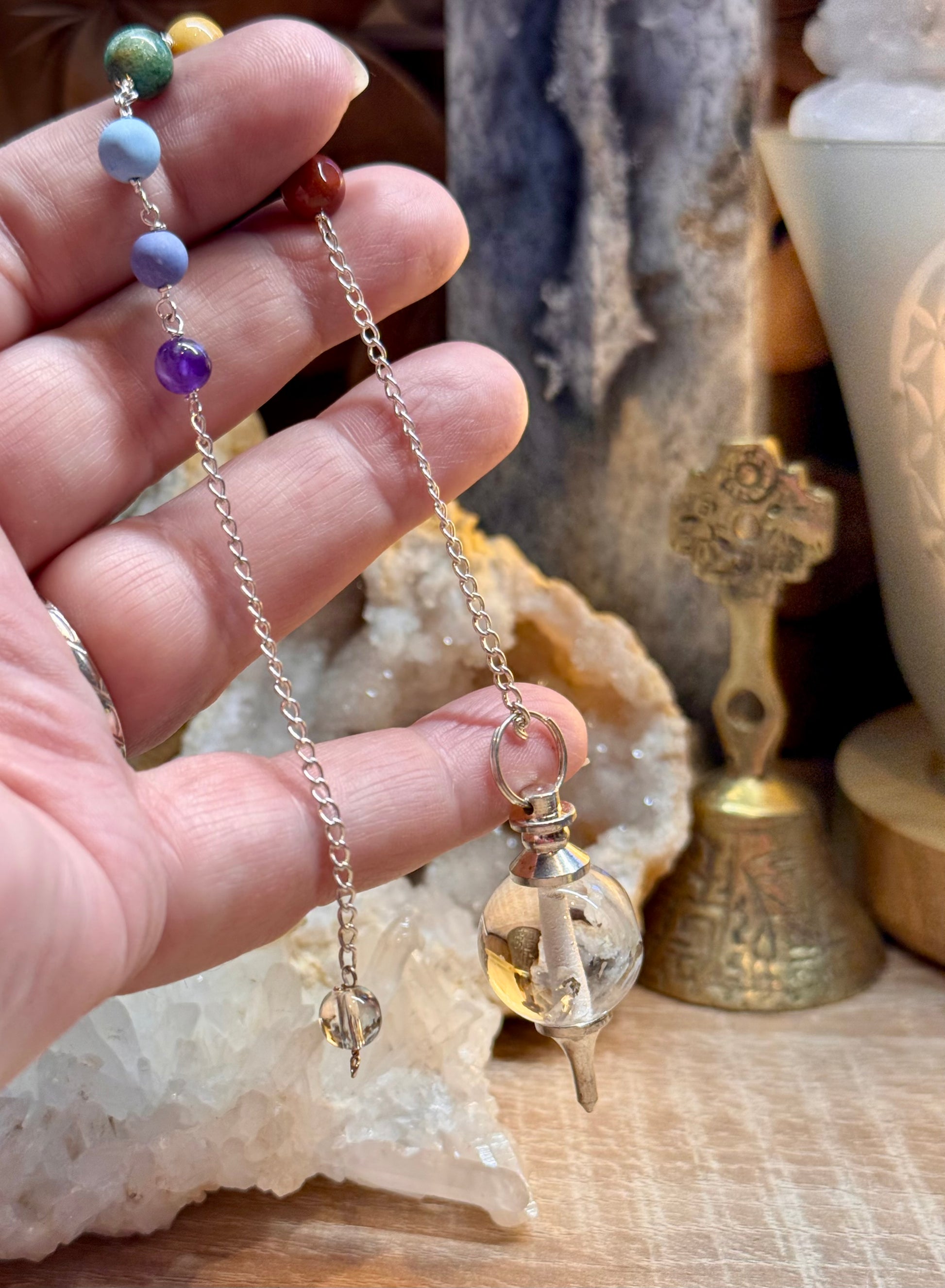 Pendule Mermet avec quartz blanc et chakras en plaqué argent