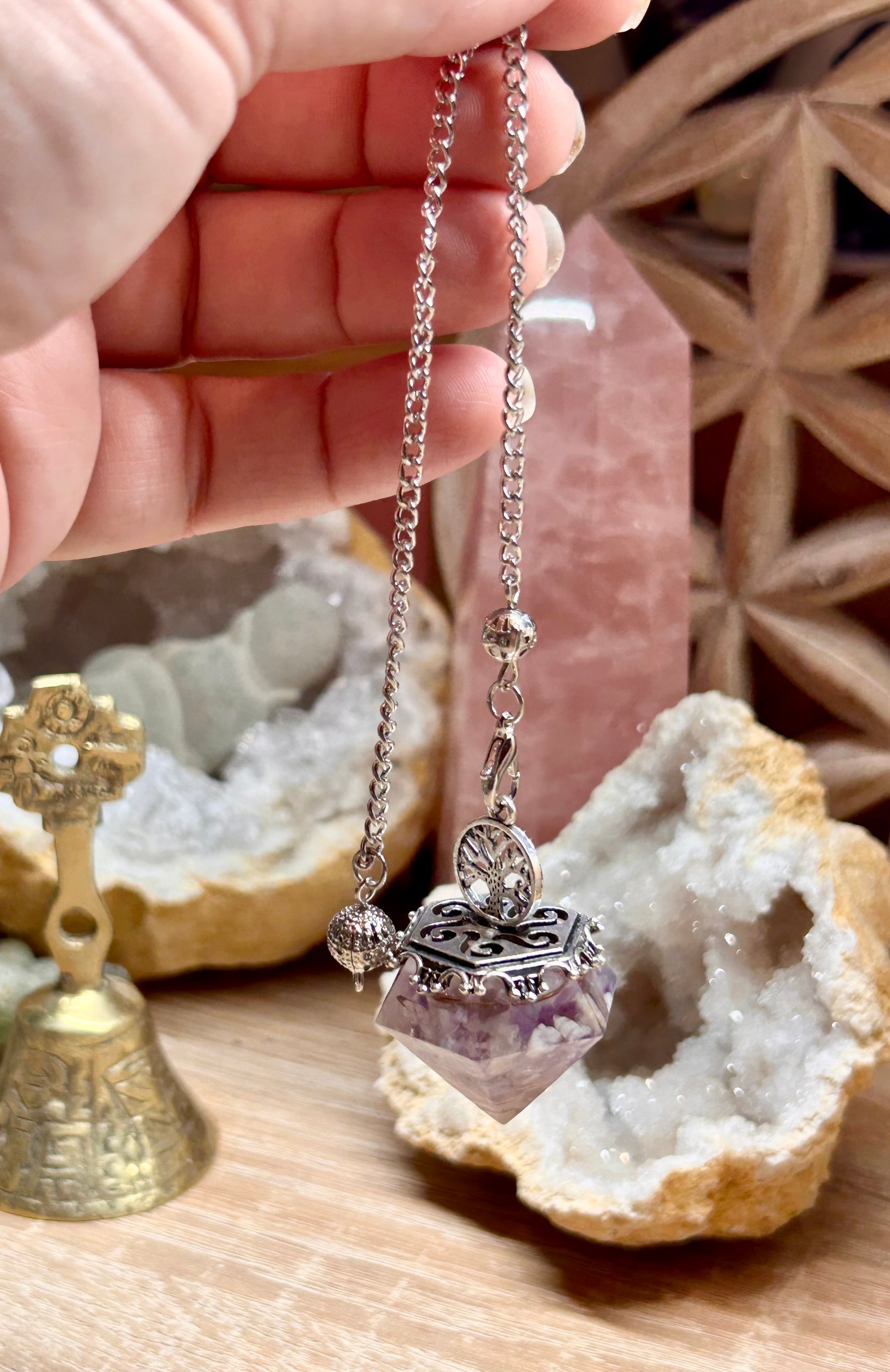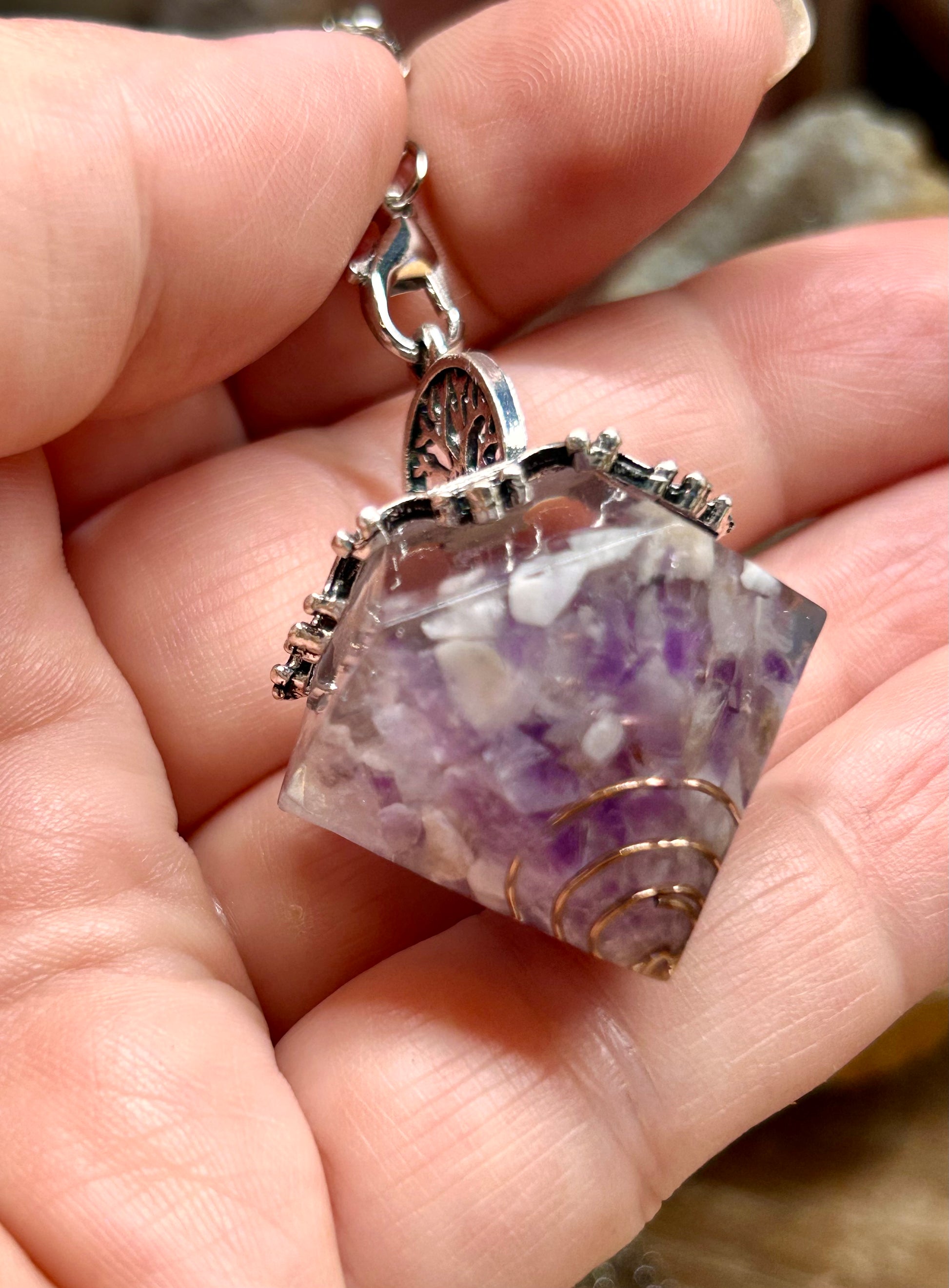 Plan spirituel : L’améthyste contribue au développement de la spiritualité, principalement utilisée pour la méditation, la clairvoyance, les voyages extra-corporels et pour équilibrer les chakras. L’améthyste purifie l’environnement, et est également d’une grande efficacité pour purifier l’âme. Elle diminue les blocages énergétiques et purifie l’aura, ce qui favorise les rêves et l’intuition.