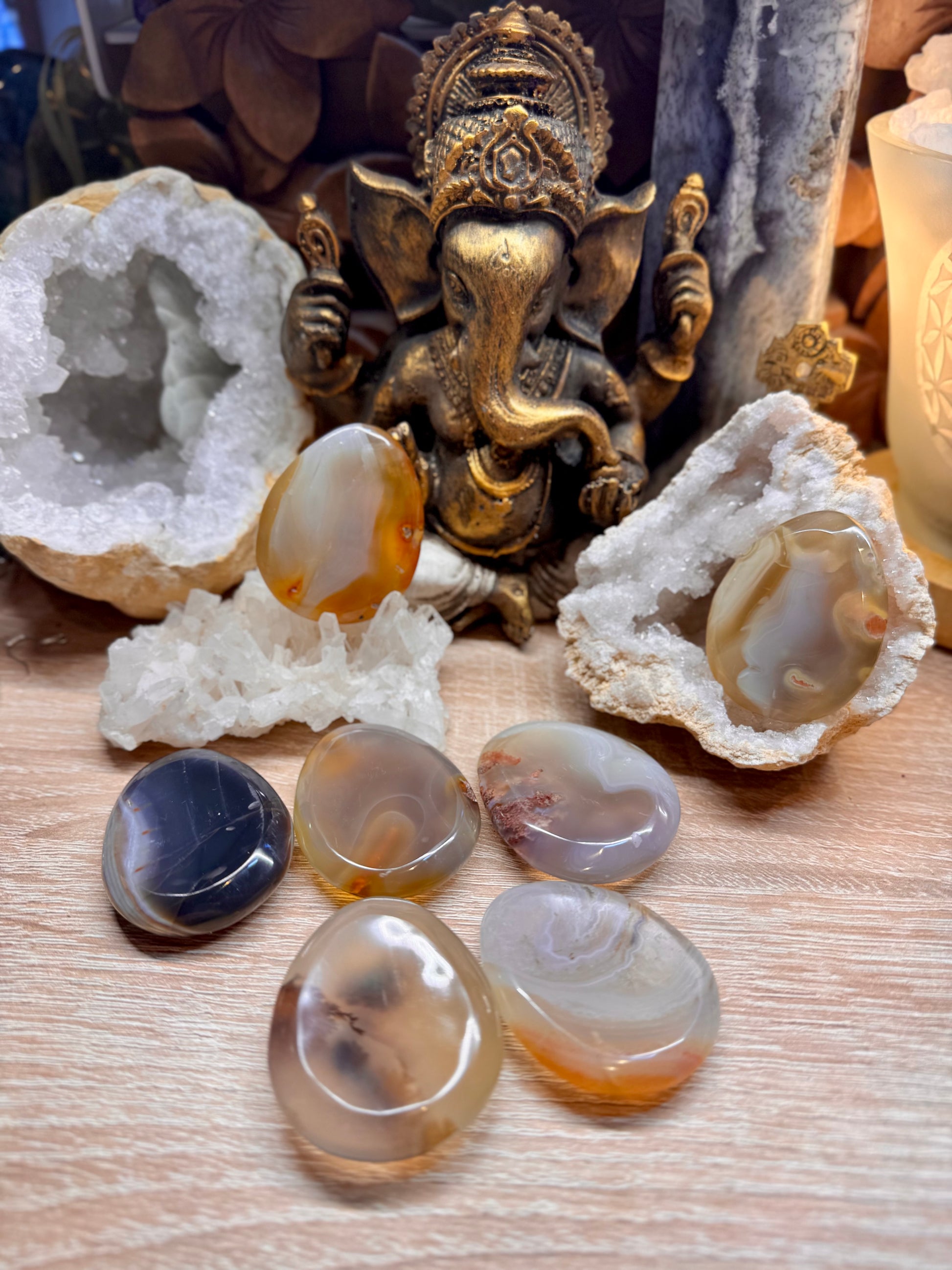 Plan spirituel : Pierre d’ancrage, elle est parfaite pour centrer l’énergie. L’Agate fait le pont entre le ciel et la terre, c’est la pierre de la clairvoyance et de la contemplation. Elle stimule le développement spirituel. Durant une méditation, elle agit à l’image de ses couches : elle vous dirige vers une connexion profonde, dans vos expériences de vie pour y rechercher le meilleur, laissant les difficultés derrière.