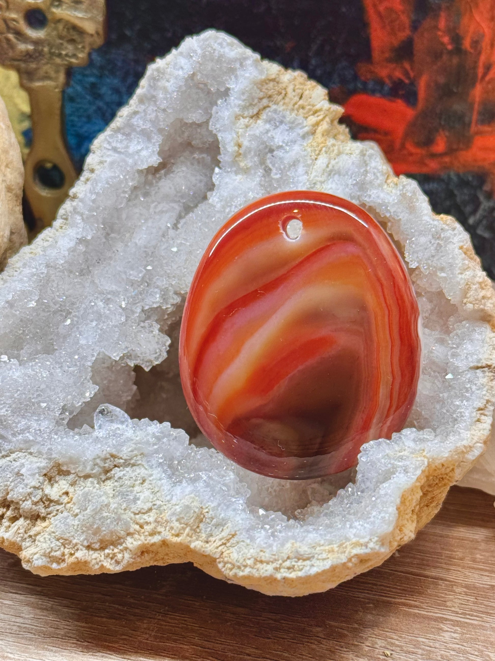 Plan spirituel : Pour se retrancher et méditer, la cornaline peut être un allié incontournable. La Cornaline vous aide à affiner vos perceptions, et à catalyser et renforcer l’évolution de votre conscience. Pont entre les deux mondes, la cornaline sera une aide précieuse pour vous connecter à l’au-delà. En méditation elle peut vous révéler les expériences des vies antérieures, dans le but de vous aider sur votre chemin de vie spirituel de cette vie.
