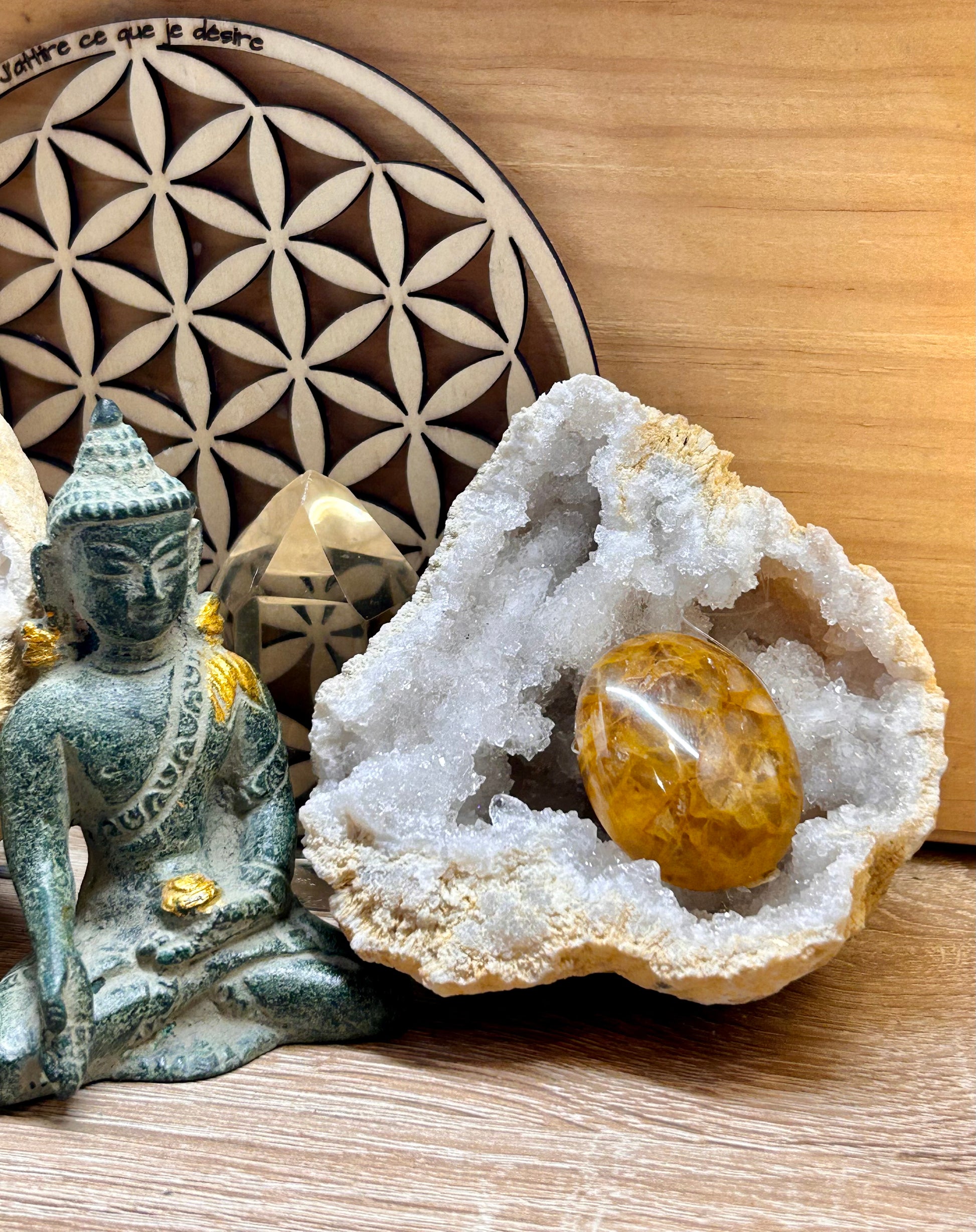 Plan spirituel : Pierre de compréhension des fonctionnements de l’énergie, il facilite le contact avec les énergies de la Terre. Le quartz hématoïde a pour effet de recentrer, canaliser et renforcer l’énergie vitale.