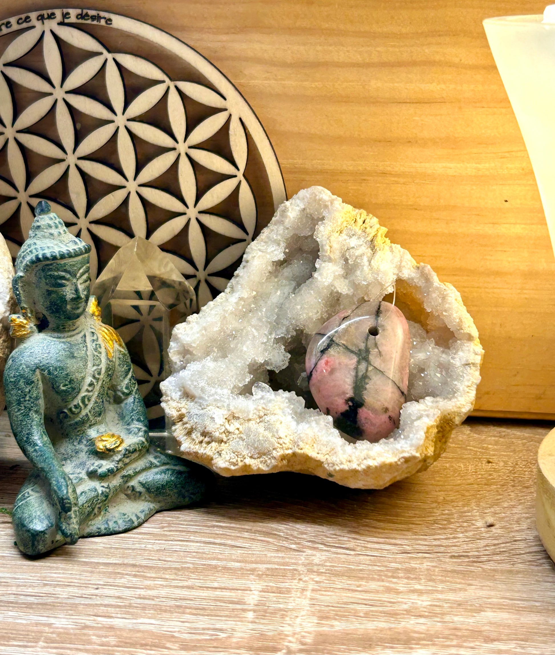 Plan émotionnel : La rhodonite a un effet tonique, sans énerver. Elle adoucit le caractère, la nervosité et l’intolérance, tout en nous enseignant l’écoute. Elle renforce les liens affectifs. Pierre des blessures de l’âme et du corps. Permet de pardonner et de se libérer des rancunes et colères intériorisées suite à des peines de cœur, des vexations ou provocations. Calme la jalousie, les angoisses et le stress. Aide à résoudre les conflits, à communiquer de manière constructive pour sortir de l’impasse relationnelle. Elle soulage les blessures émotionnelles, la peur, le souci de préoccupation incessant et les angoisses.