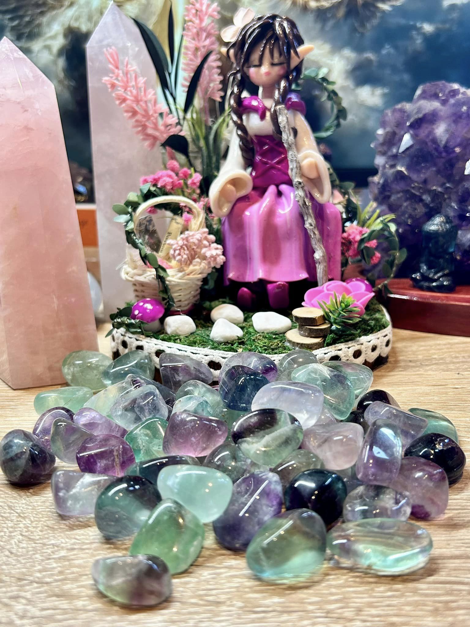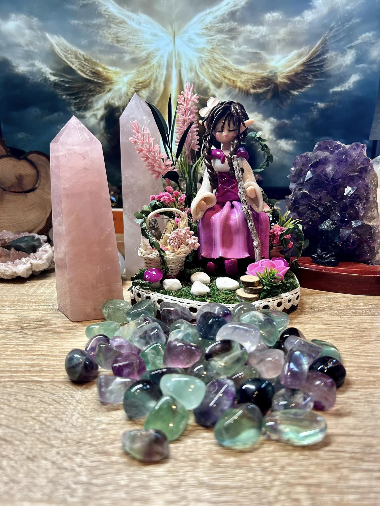Fluorine ou fluorite favorise l’équilibre et la coordination. Elle allége l’arthrite, soulage la douleur, plus particulièrement celle des affections liées aux nerfs.