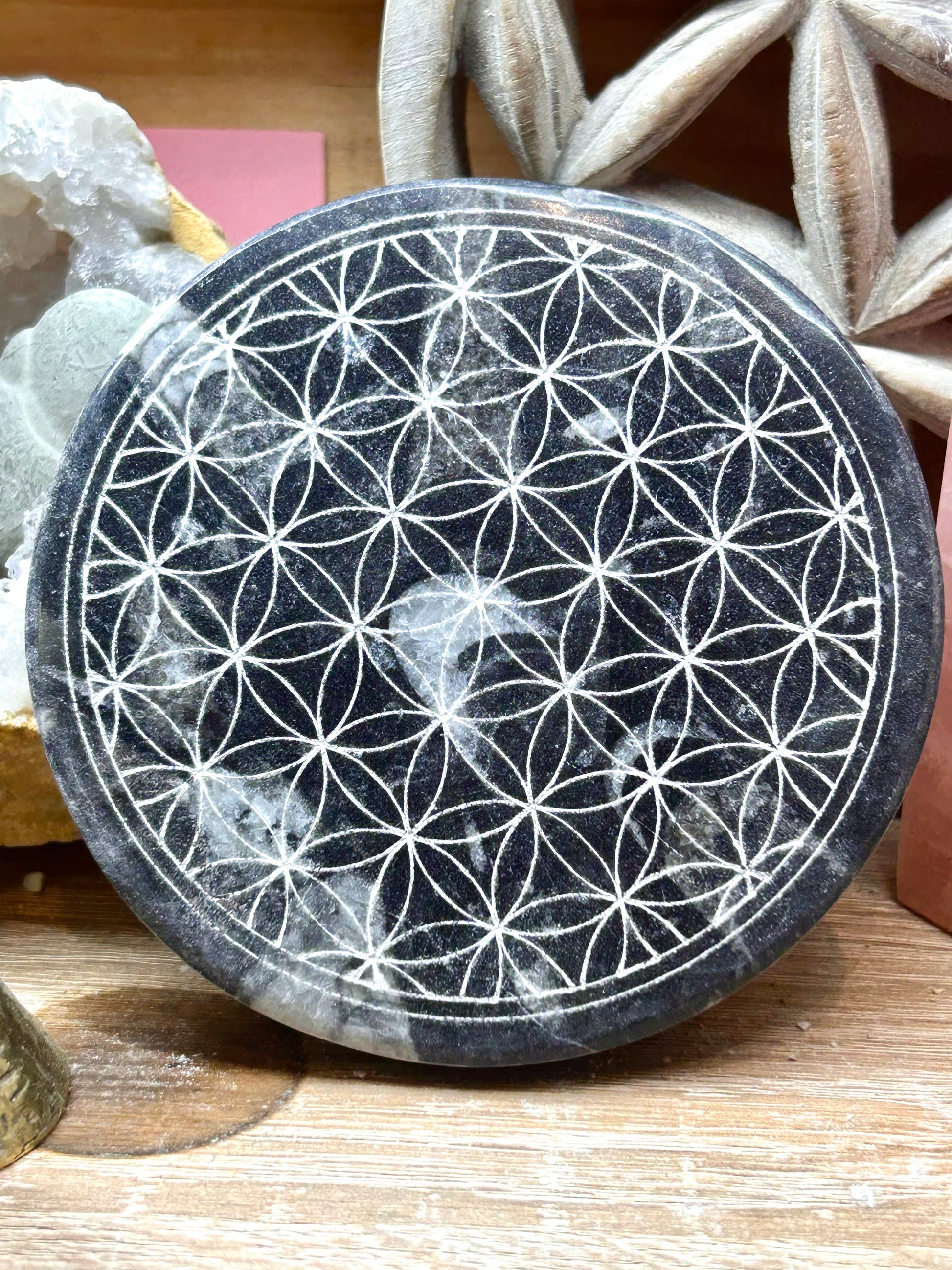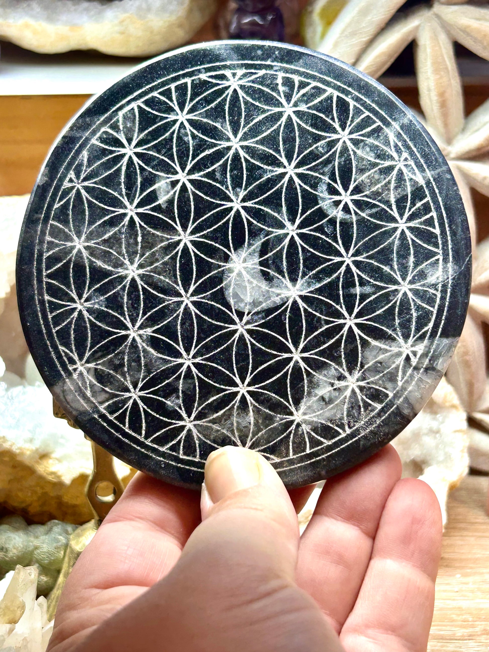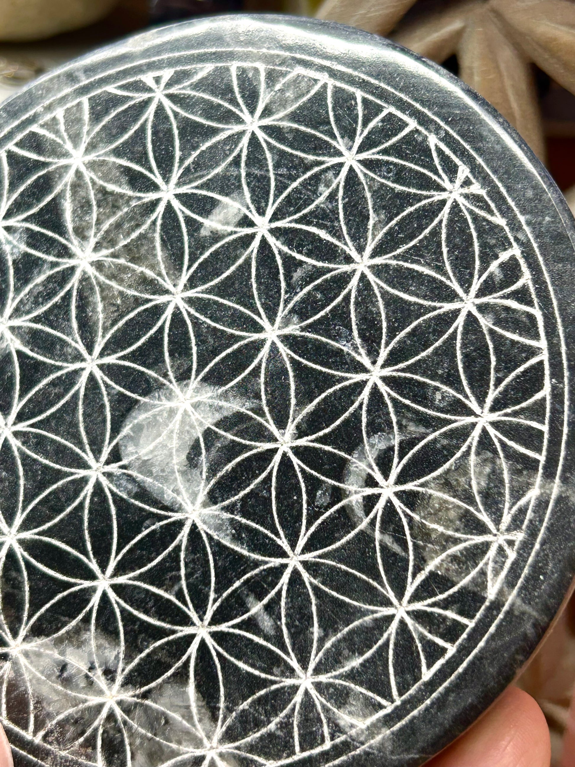 Utiliser une fleur de vie vous permettra de redynamiser vos pierres, d’harmoniser les énergies, de purifier une pièce, voire même d’aider à conserver vos aliments, l’eau, etc…