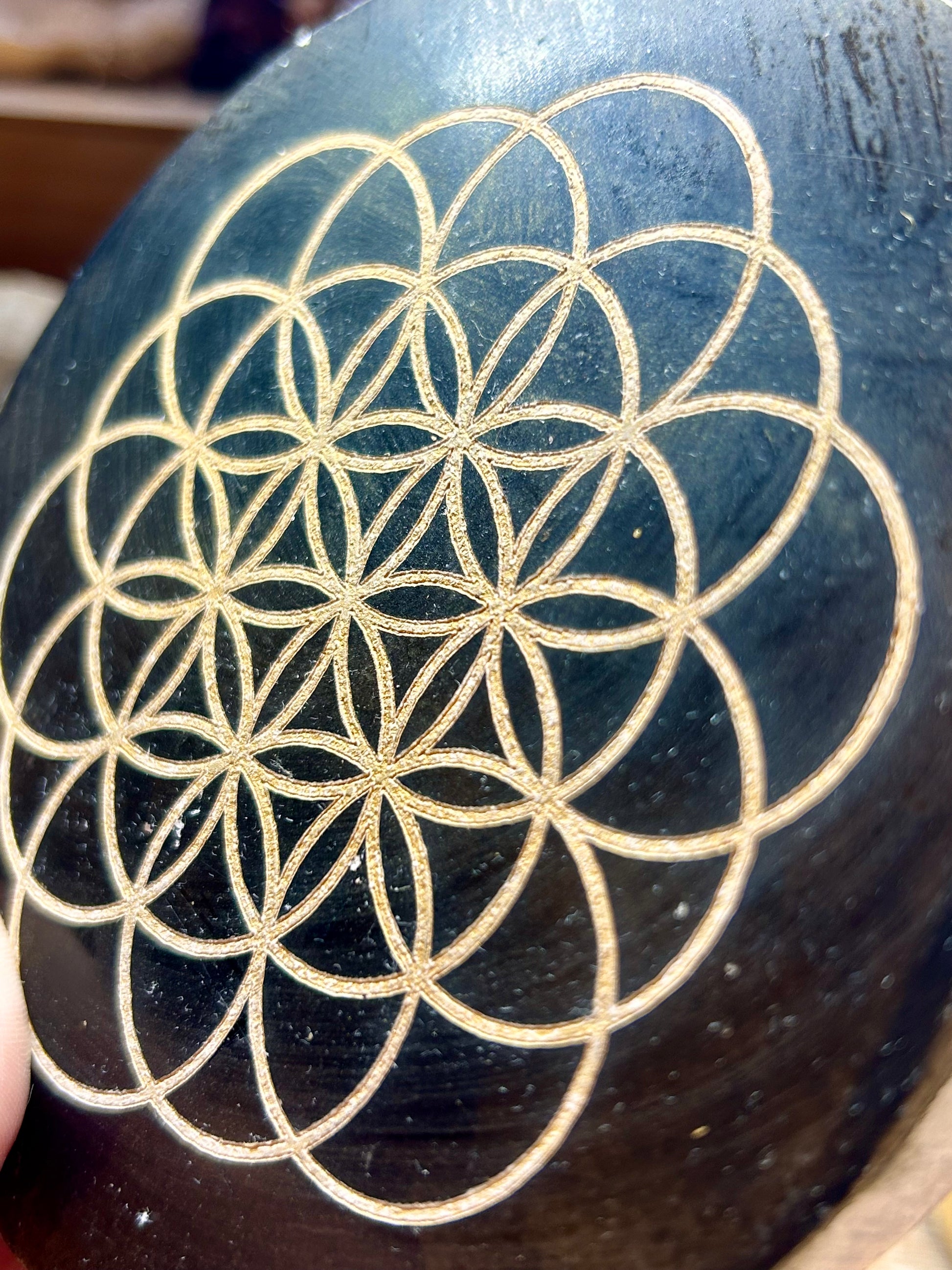 Plaque de sélénite avec peinture et graine de vie gravée
