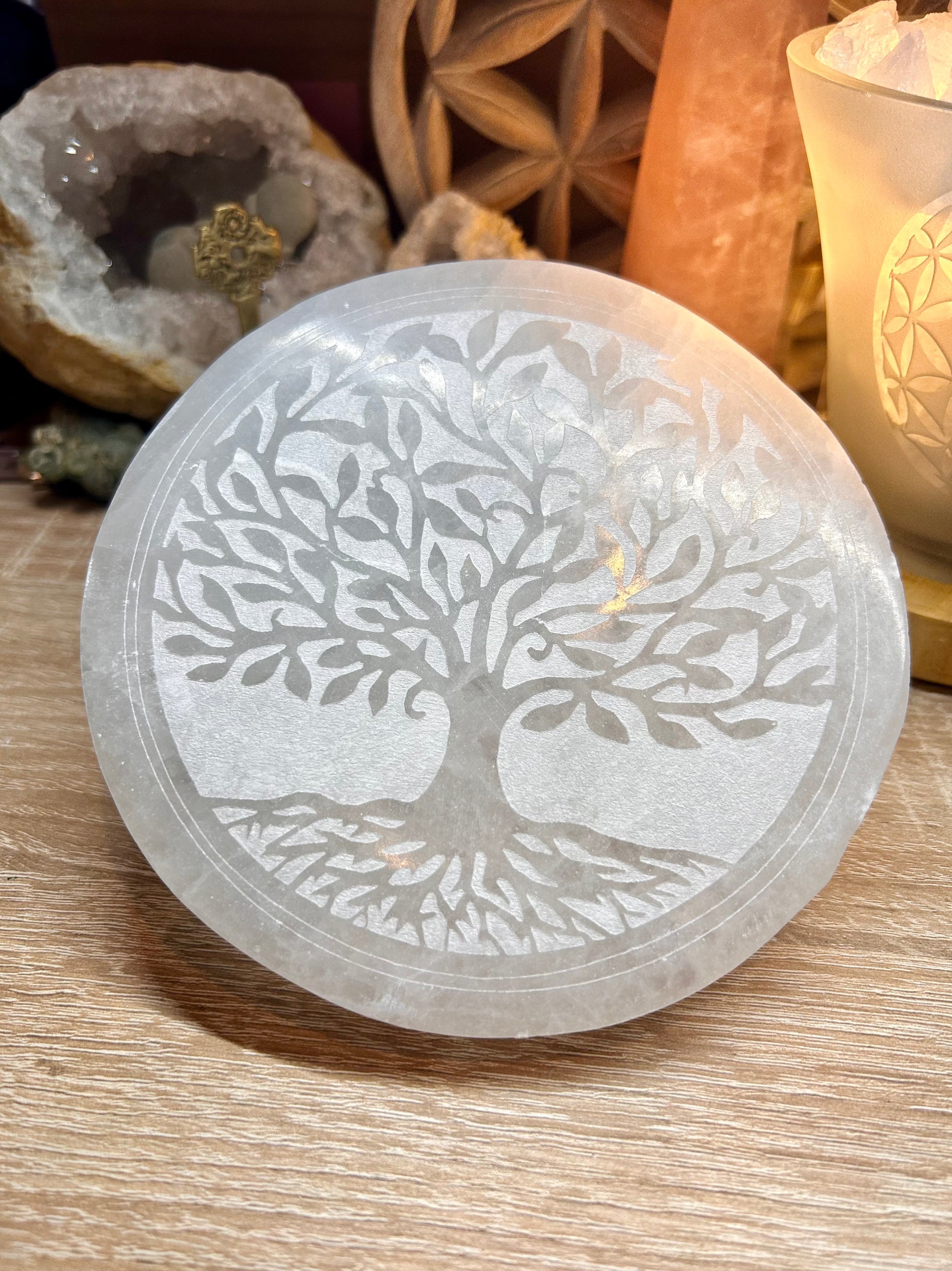 Plan émotionnel : Douce et féminine, la sélénite est une pierre Yin qui facilite le recentrage des chakras. Elle éclaircit les idées. Ce cristal aide à se détendre avant de dormir. Elle est très utile pour les femmes enceintes et les accompagne durant tout le processus en leur apportant bien-être et quiétude grâce à l’irradiation qu’elle émet. Elle est aussi bénéfique pour l’allaitement et pour calmer la fébrilité des enfants en jeune âge.