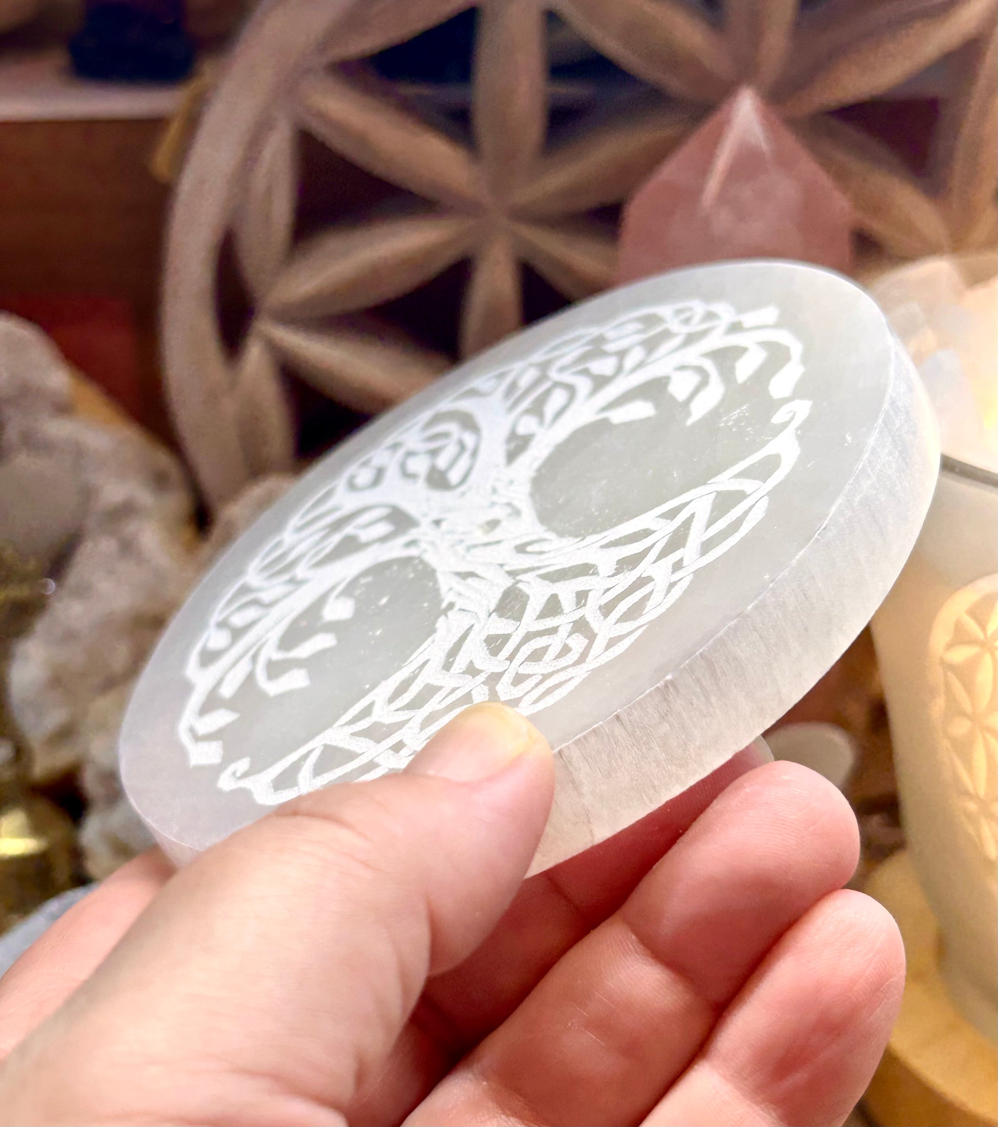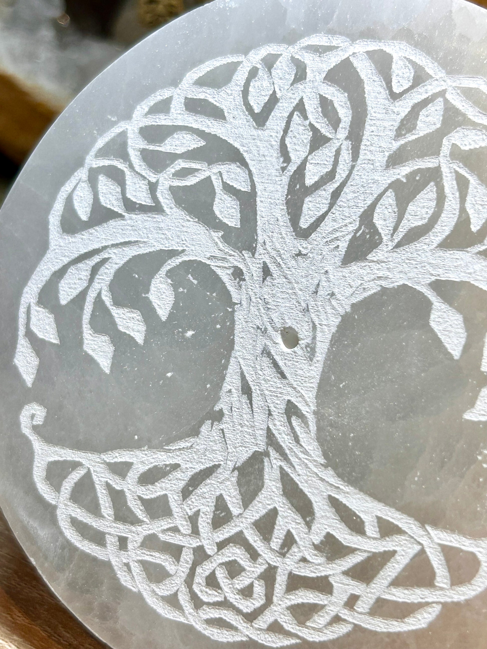 Plaque de sélénite gravée arbre de vie celtique