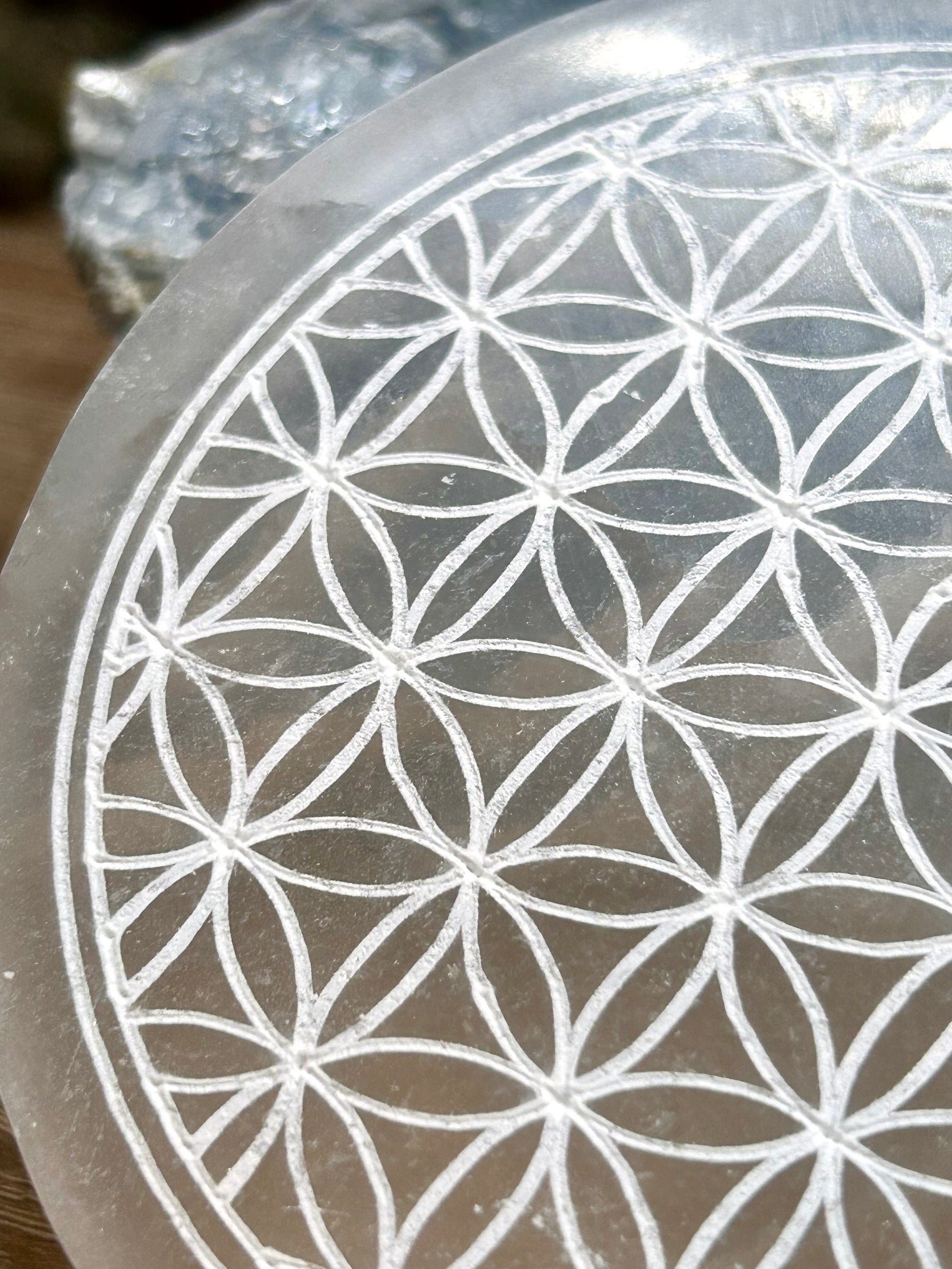 Utiliser une fleur de vie vous permettra de redynamiser vos pierres, d’harmoniser les énergies, de purifier une pièce, voire même d’aider à conserver vos aliments, l’eau, etc…