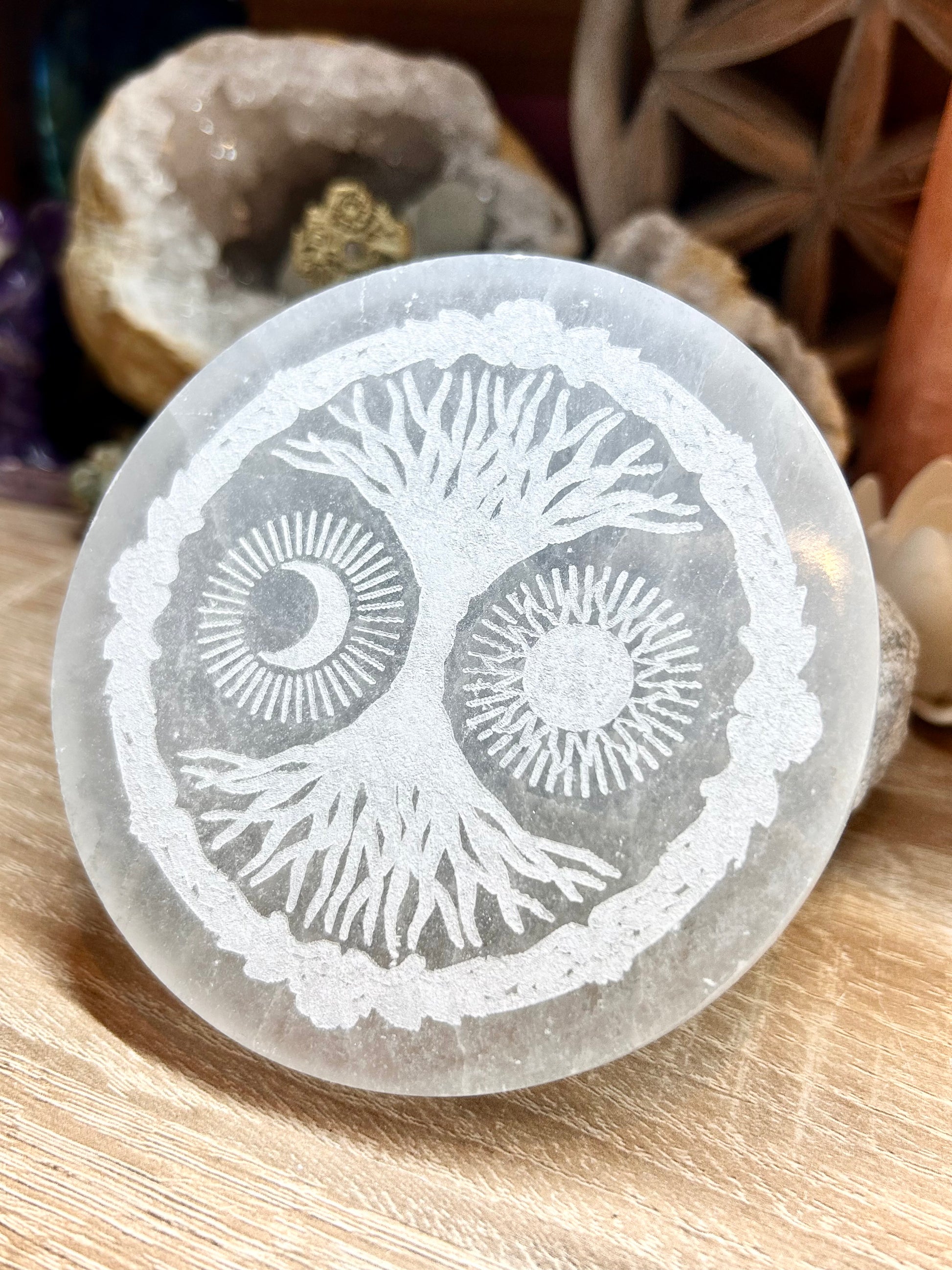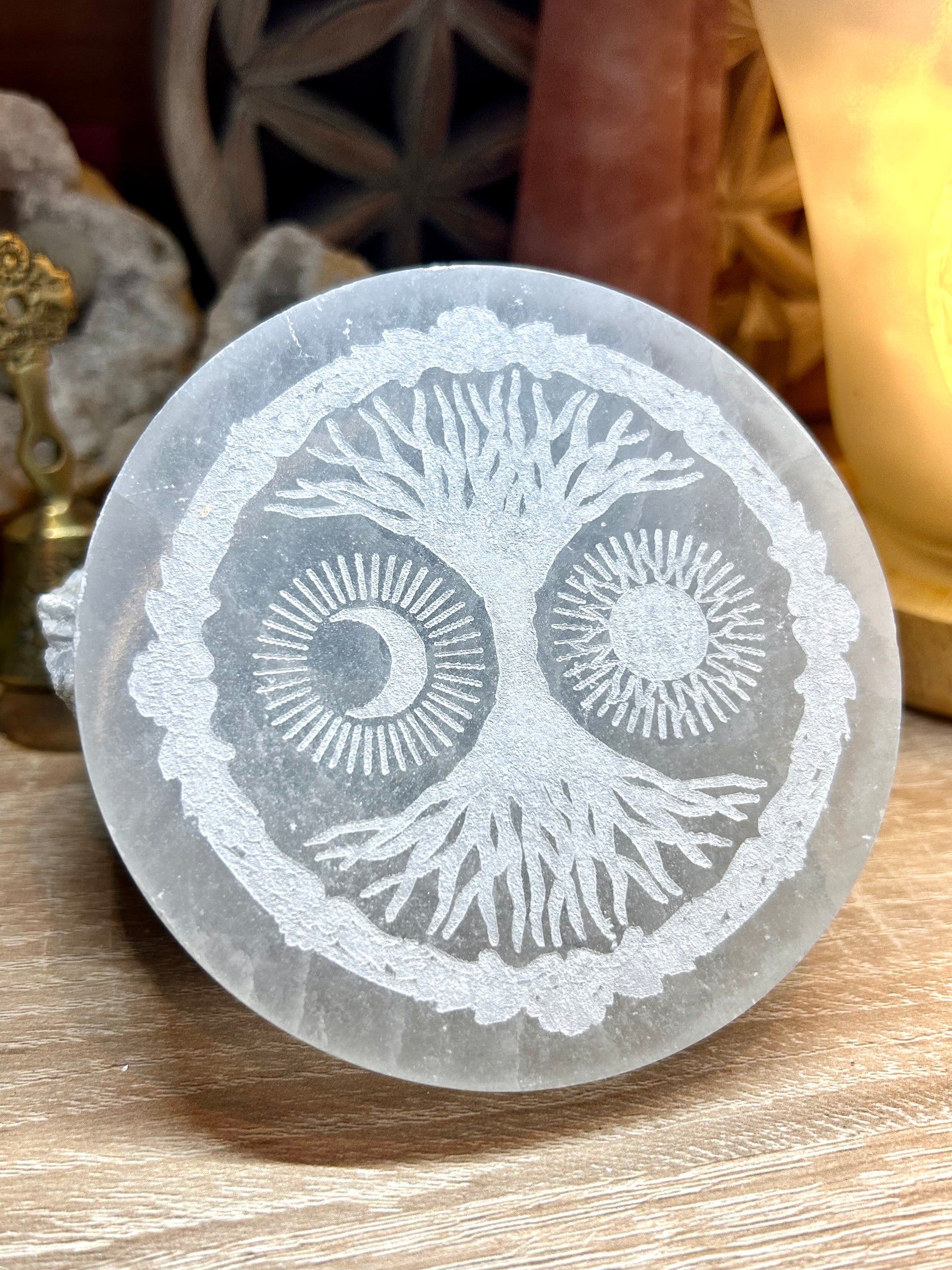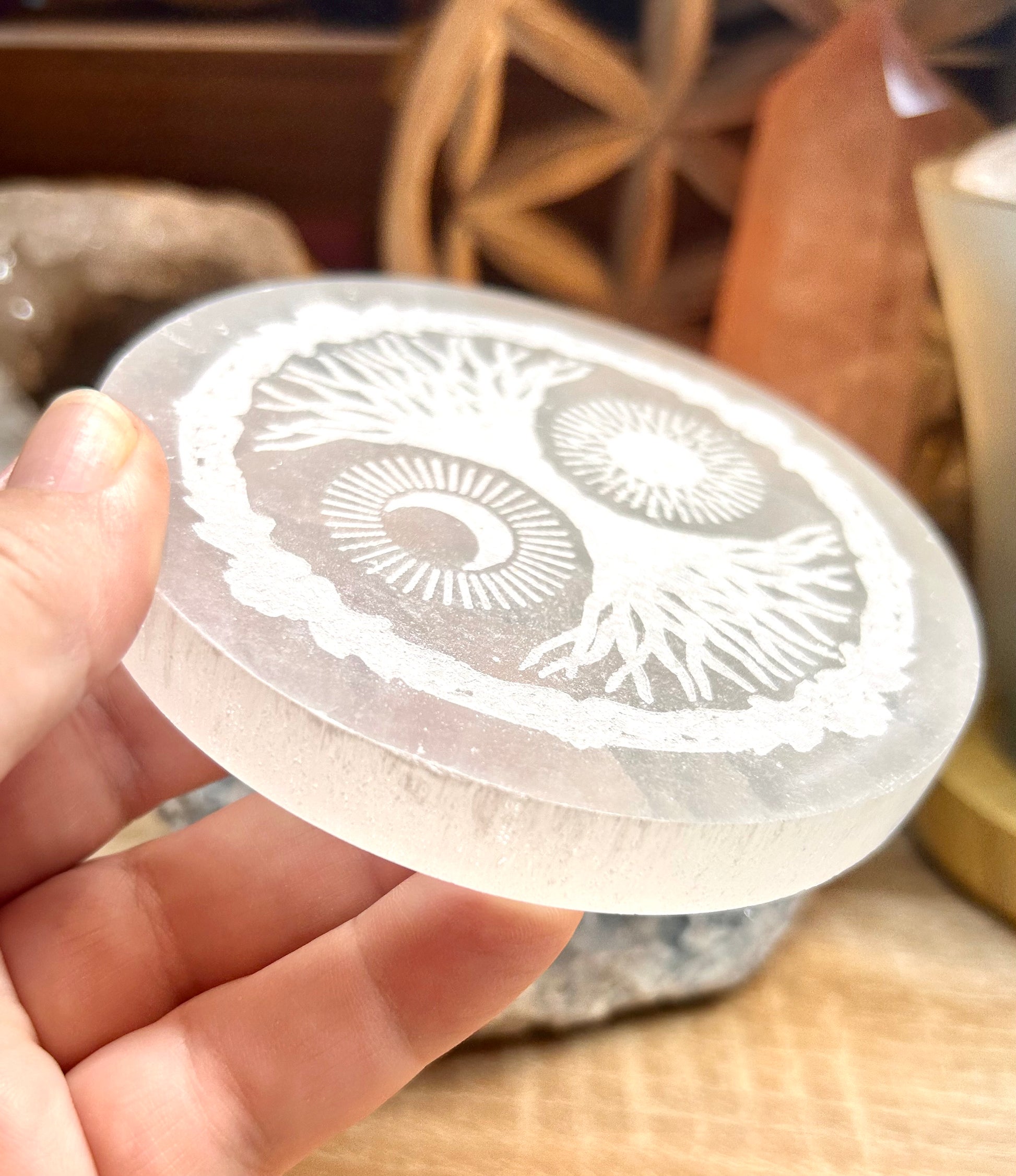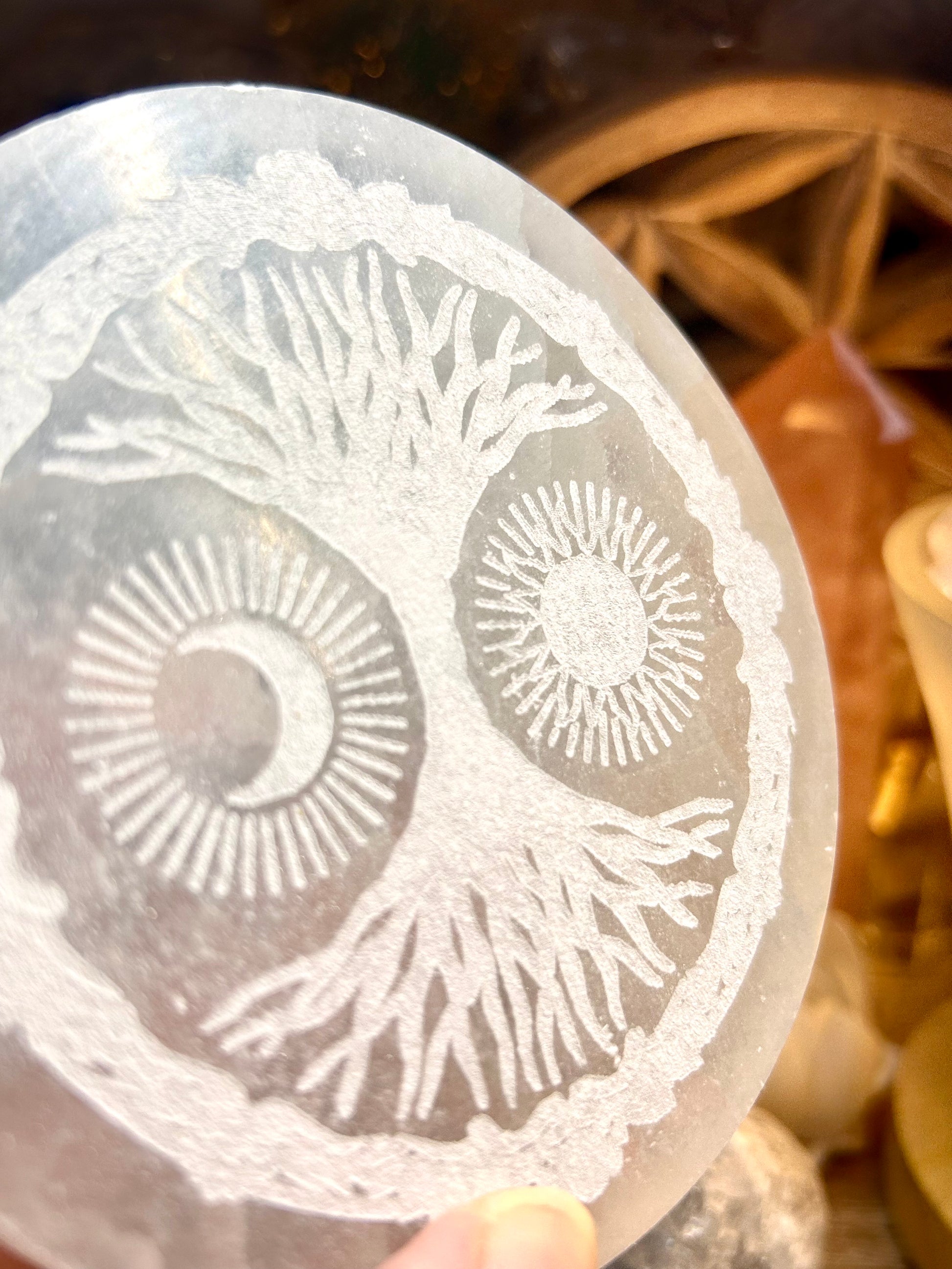 Plaque de sélénite lune 🌙 et soleil 🌞