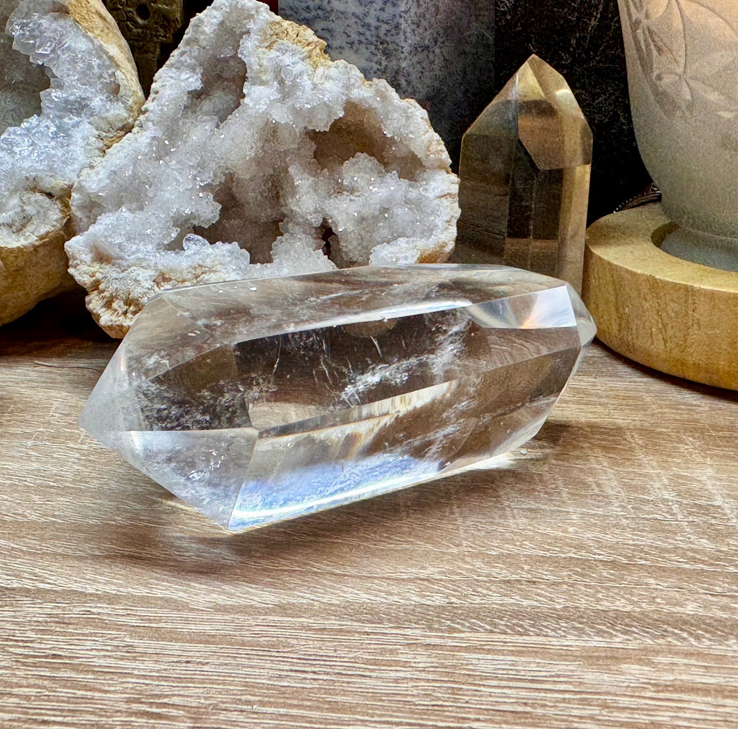 Le quartz biterminé peut être utilisé pour purifier l’énergie environnante, que ce soit un espace physique ou l’aura d’une personne. Il aide à éliminer les blocages énergétiques et à maintenir un champ énergétique clair et propre.