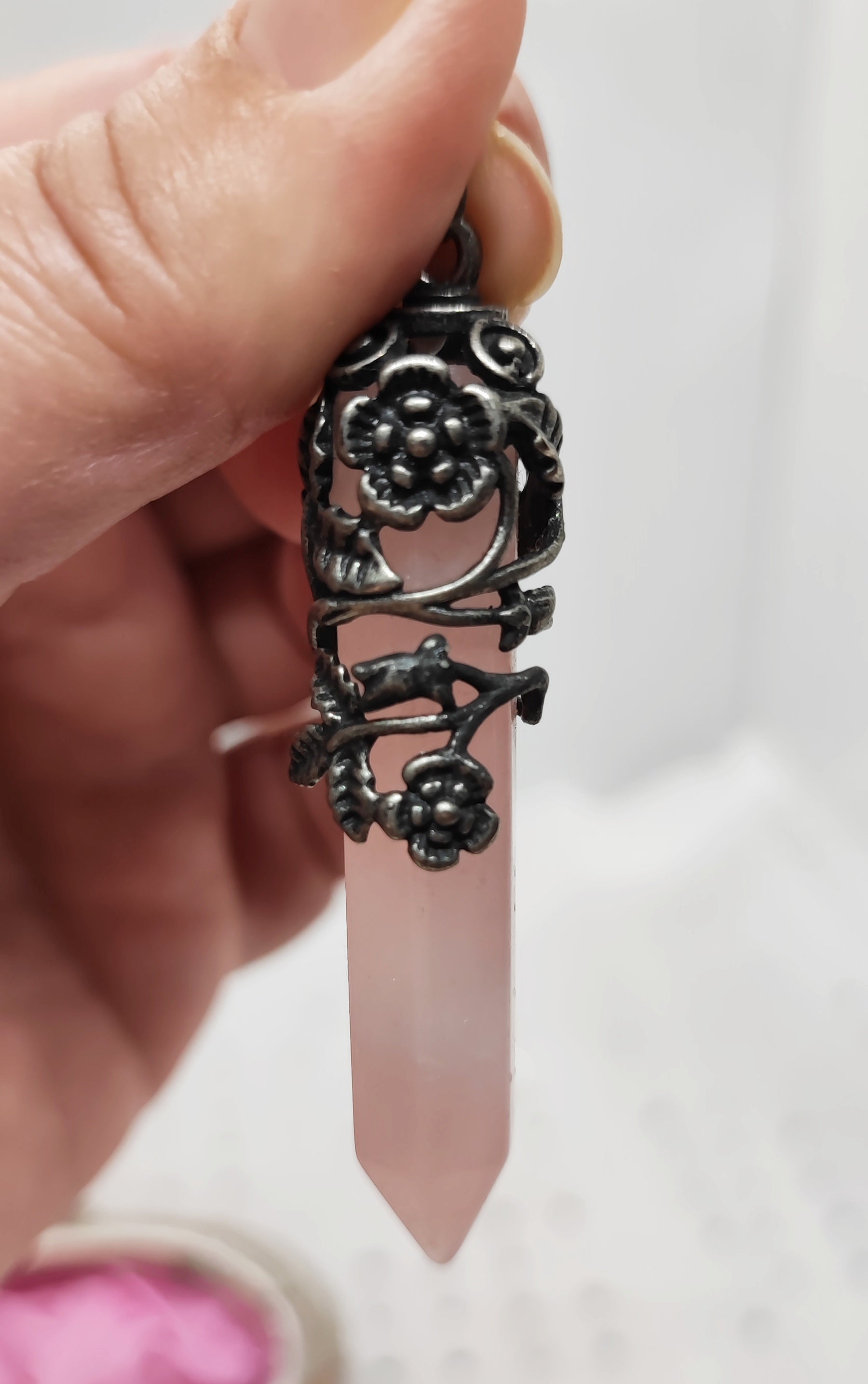 Pendentif en pointe de quartz rose