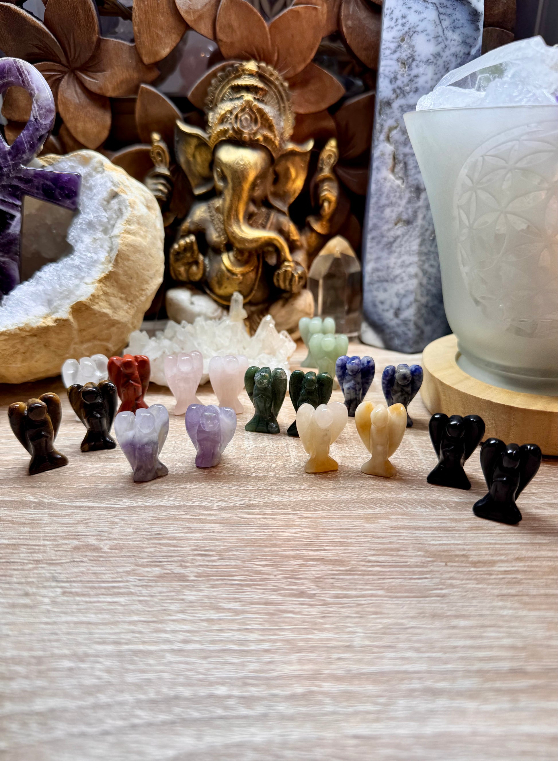 Jaspe Rouge, Cristal de roche, Quartz Rose, Aventurine Verte, Aventurine Jaune, Jaspe Vert, Oeil de Tigre, Sodalite, Améthyste et Onyx