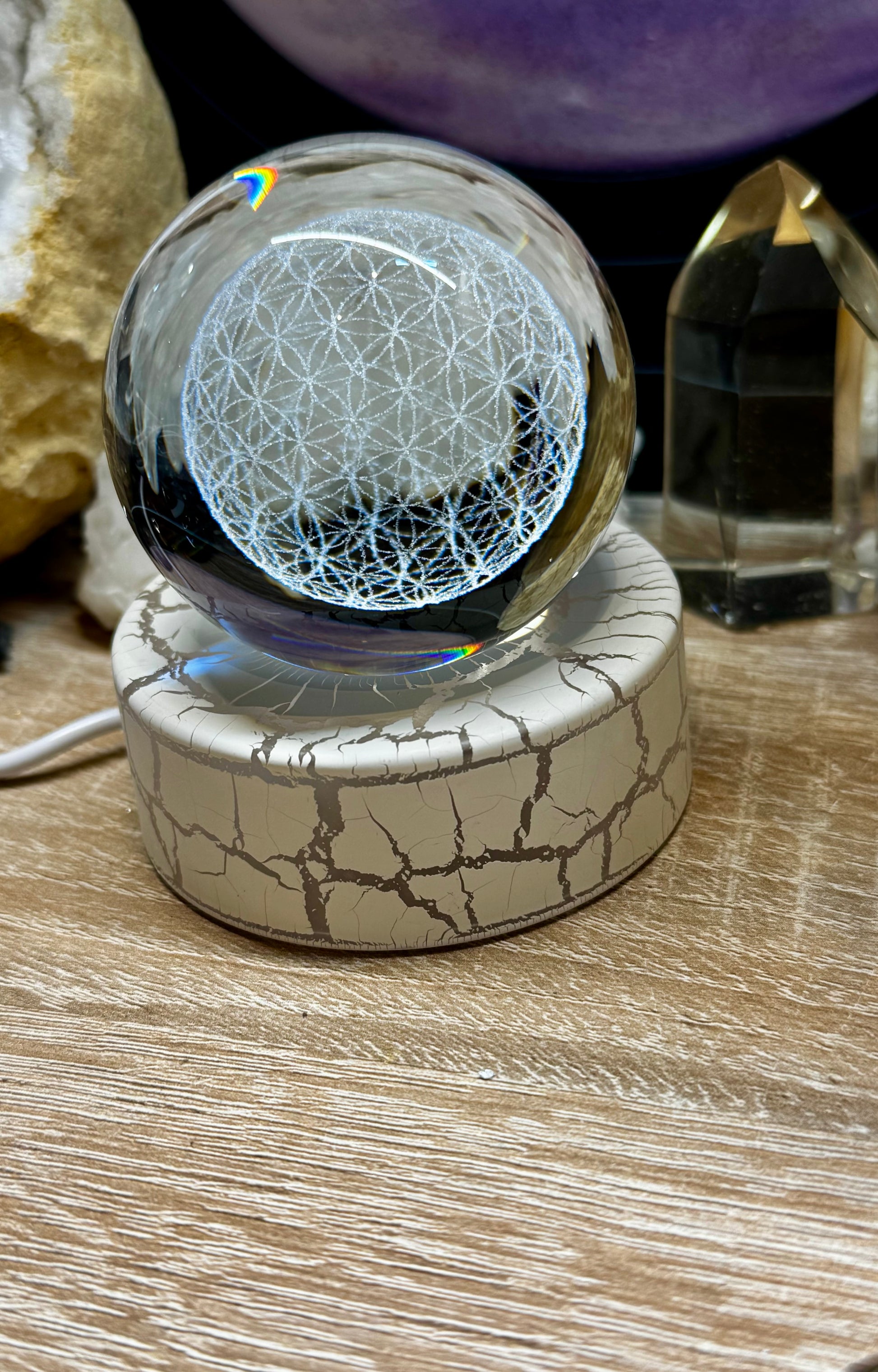 Sphère en verre K9 - Fleur de vie
